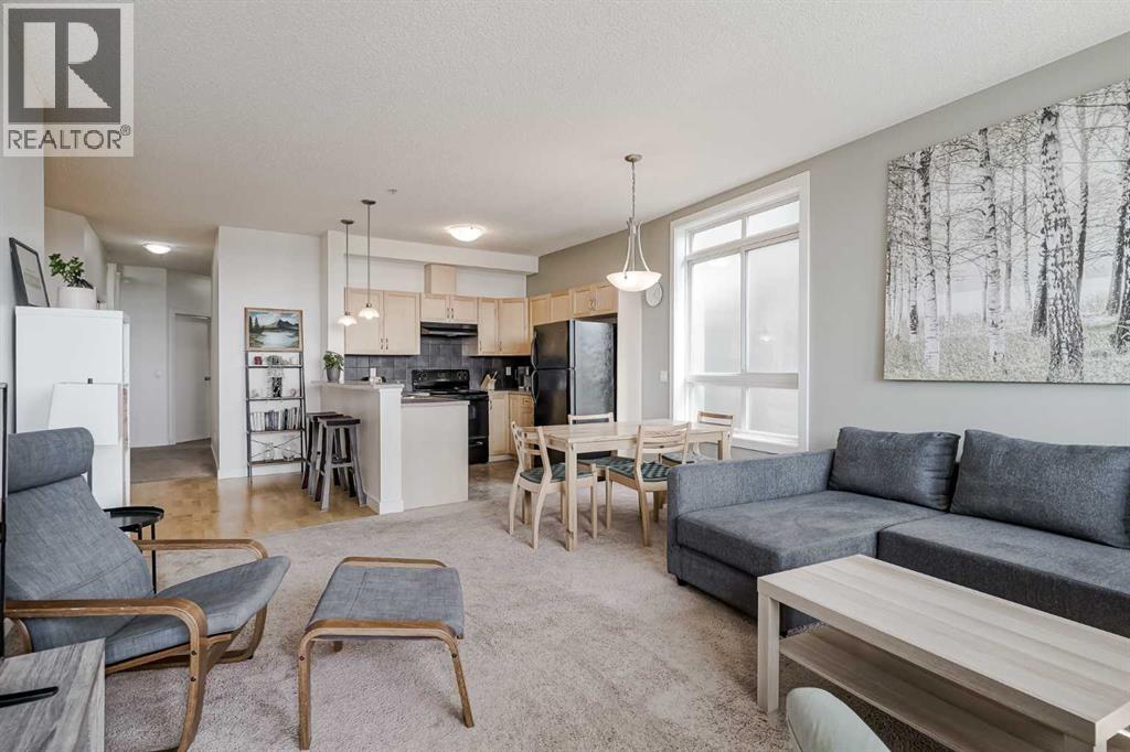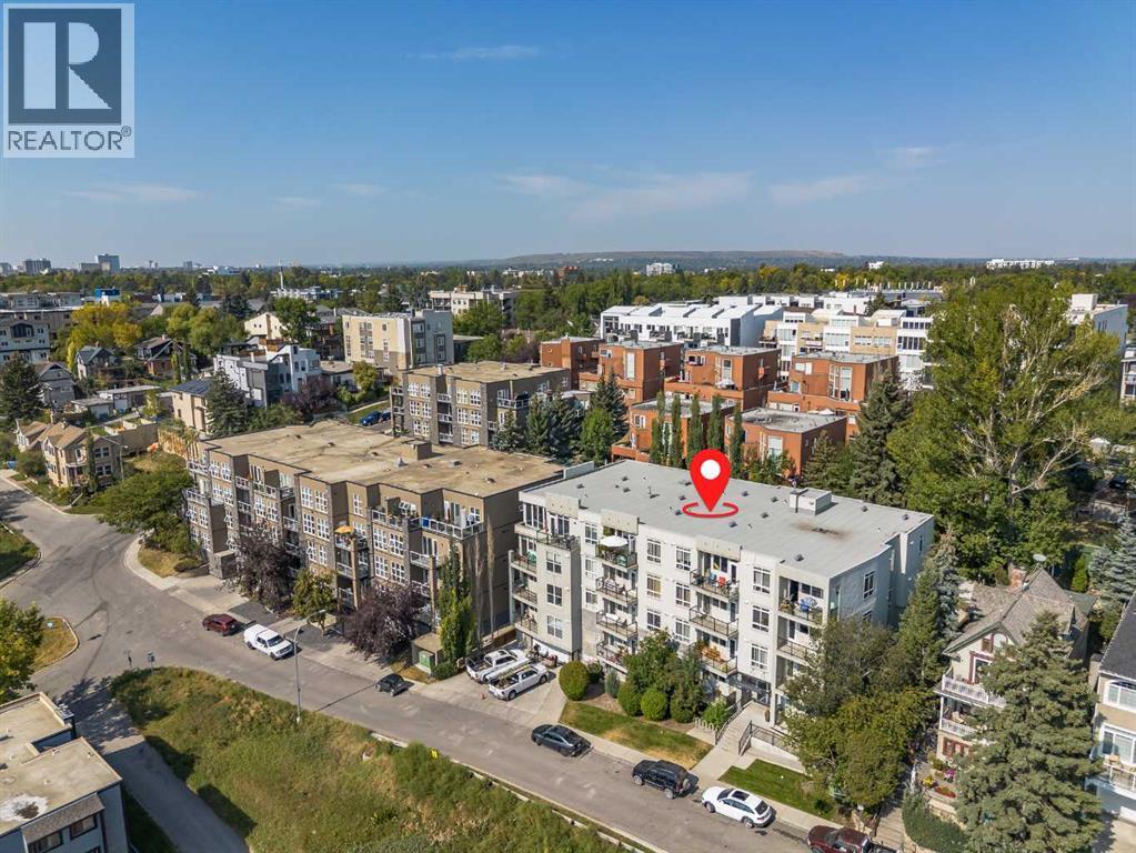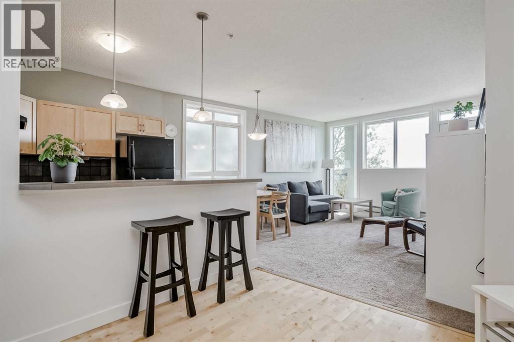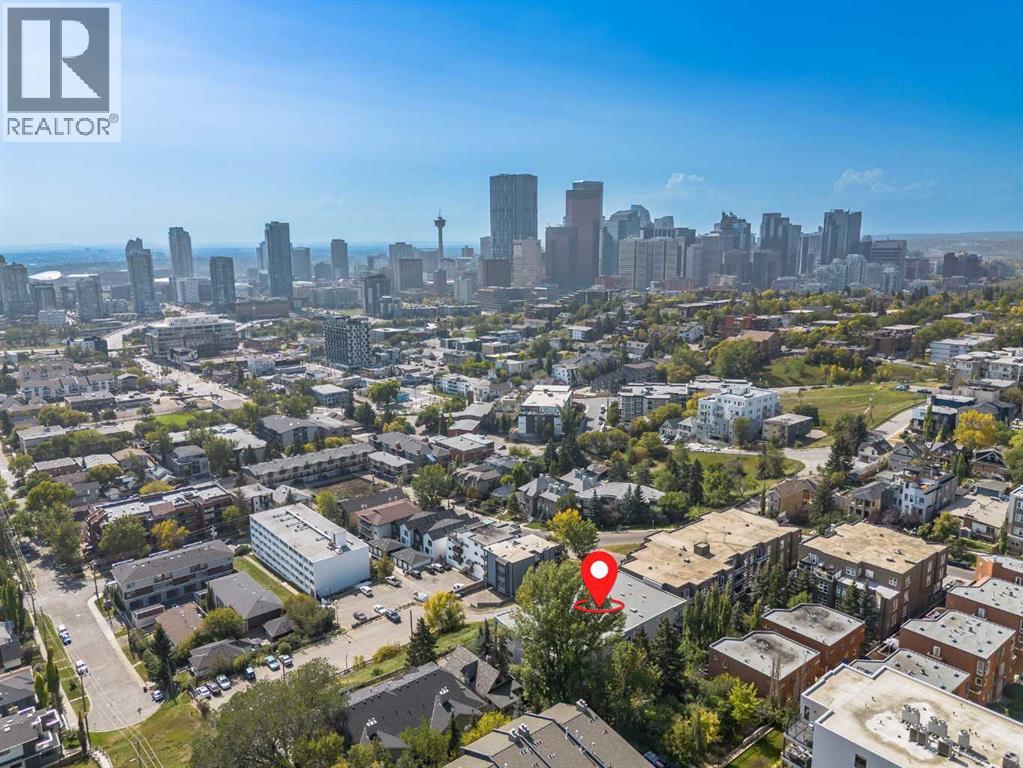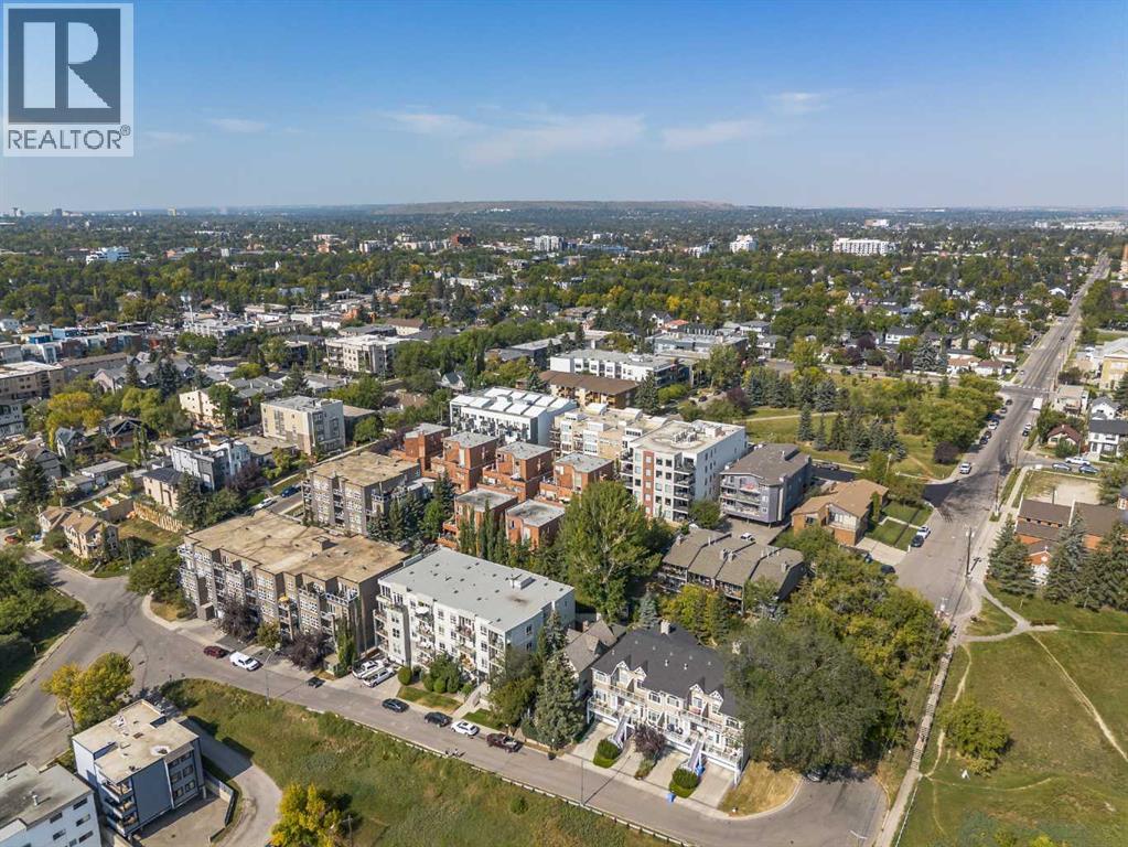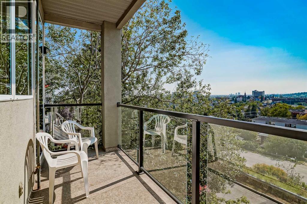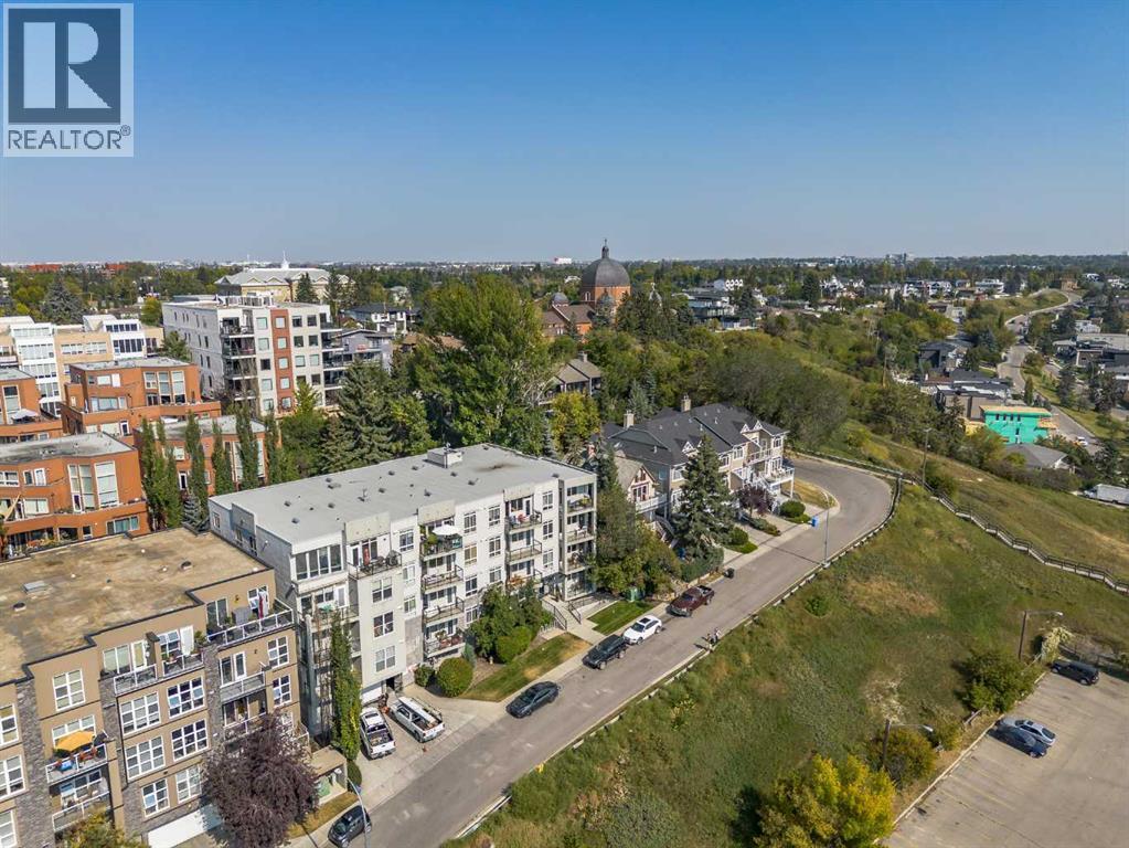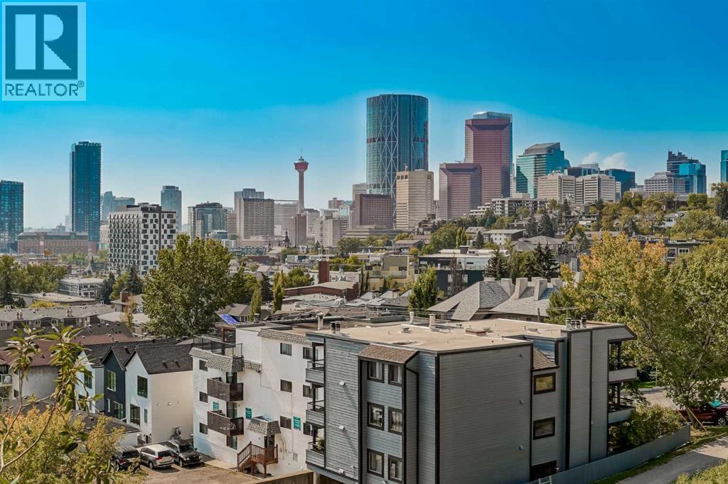 From the balcony, the city lays itself out like a story told in glass and steel. The Calgary Tower, the tall blue panes, the red blocks of downtown — they rise from the streets and catch the morning sun, while evenings bring the quiet glow of lights against the prairie sky. It is a view that holds you, both grand and near, changing with each hour, always alive.Inside, 948 square feet welcome you with two bedrooms and two full baths. The windows stretch wide, pulling the daylight in, making each room bright and open. The living room waits for company and quiet nights alike. The kitchen is built for work and gathering — counters broad, cupboards plenty, a bar for quick meals, and a place for a table where stories are told.The primary bedroom wakes you gently, hillside green and birdsong just outside, with a walk-through closet leading to its private bath. The second bedroom stands ready, for guests, work, or rest, with another full bath beside it. Laundry lives within the suite. The car rests below, in its own titled underground stall. The street is a cul-de-sac, still and hushed, with almost no traffic. Yet Bridgeland’s restaurants, shops, and markets are steps away.The Bow River pathways and LRT lie close at hand. The Renfrew Community Centre offers a pool, steam room, rink, and gym, while the Renfrew Community Association hosts pub nights, trivia, and children’s programs — a gathering place for all ages. Here is a home balanced between hillside calm and city spark. A place where the view is more than a backdrop — it is part of the life lived here. (id:53676)