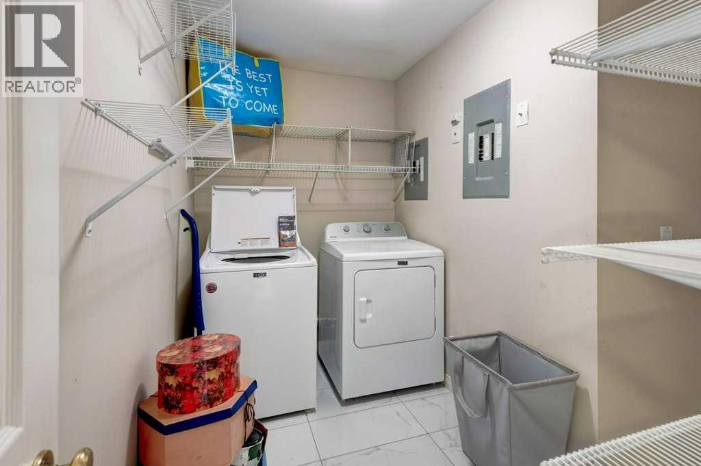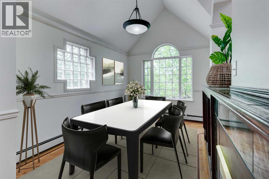 Welcome to a truly one-of-a-kind, New York-style walk-up penthouse located in the highly desirable inner-city community of Windsor Park—just steps from Chinook Mall, transit, and minutes from downtown Calgary. Boasting over 2,000 sq ft of luxurious living space across two stunning levels, this updated home combines architectural elegance, thoughtful design, and unmatched outdoor space. Inside, you're greeted by soaring vaulted ceilings, expansive windows, and an open-concept layout drenched in natural light. The gourmet kitchen is a chef’s dream, featuring custom oak cabinetry, newer stainless steel appliances, a built-in gas range, and an eat-up breakfast bar—perfect for casual dining or entertaining. Rich hardwood floors with intricate Purple Heart inlay add a sophisticated touch. The spacious living room includes a built-in entertainment unit and a three-sided gas fireplace that seamlessly connects to the formal dining area. Your primary retreat offers custom built-ins, a large walk-in closet connected to the laundry room, and a spa-inspired 5-piece ensuite with a jetted tub and oversized shower. From both the living room and primary suite, step out onto a private, north-facing balcony tucked into the treetops—your own peaceful, treehouse-like escapeUpstairs, an elegant staircase leads to a bright lofted family room overlooking the main floor, a spacious second bedroom, a modern 3-piece bathroom with in-floor heating and a massive steam shower, a den, and a bonus room—ideal for a home office or creative studio. And here's the showstopper: a private 1,500 sq ft rooftop terrace, unlike anything else in the area. Whether you're hosting summer soirées or enjoying peaceful evenings under the stars, this rooftop is pure magic. Additional features include: heated underground parking, oversized storage locker, quiet, professionally managed building with strong financials. Perfect for professionals, creatives, or investors seeking luxury and lifestyle in a premier locati on. (id:53676)