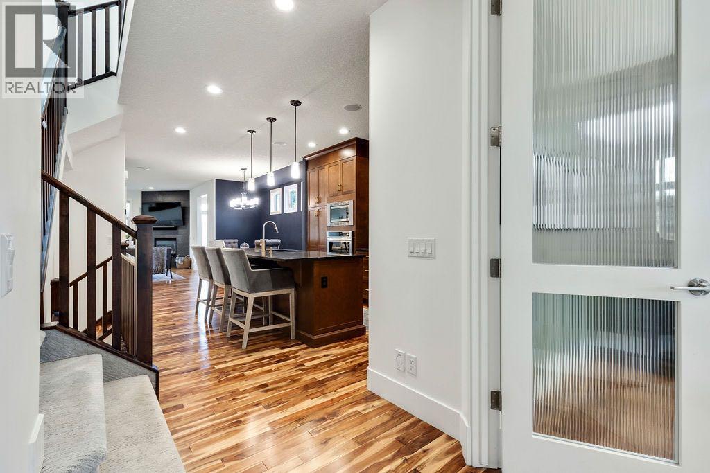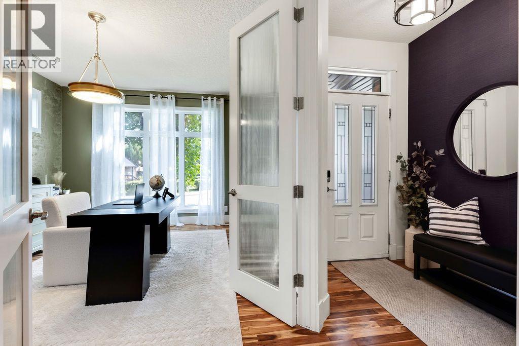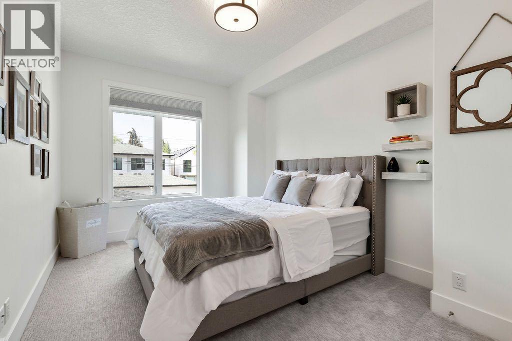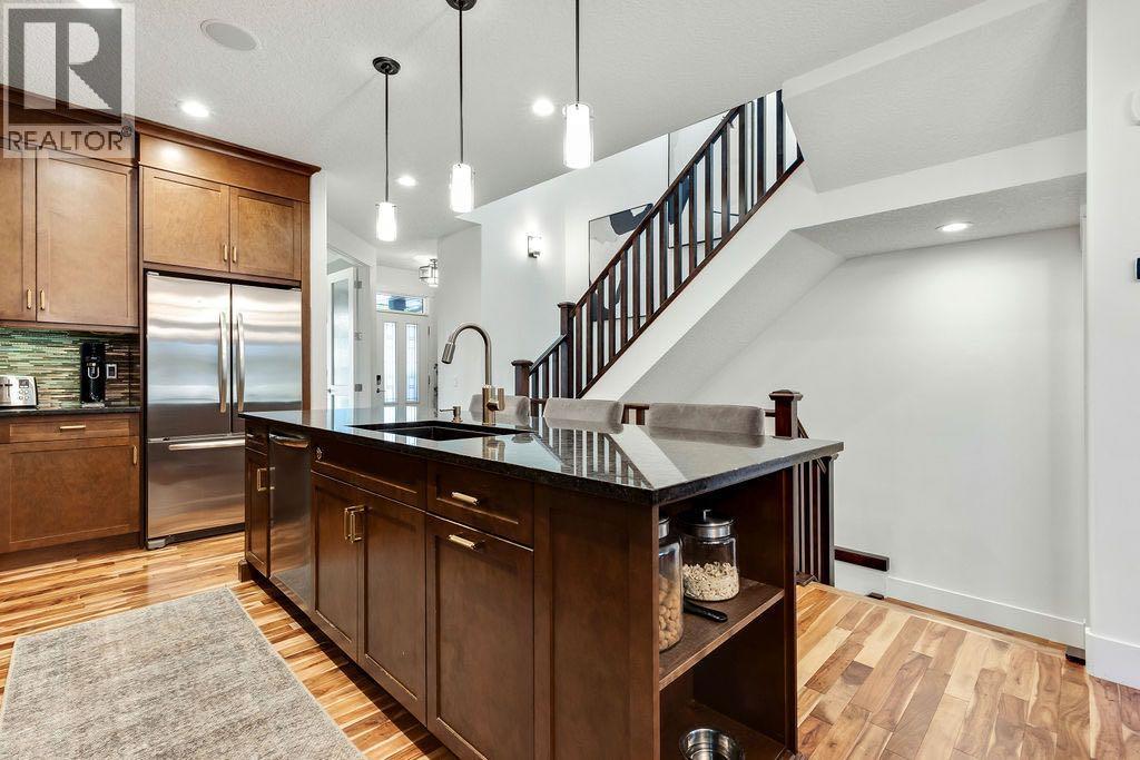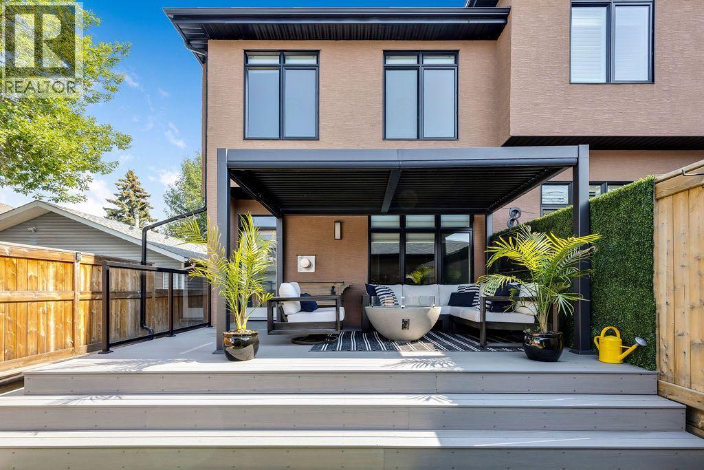 Welcome to this stylish inner city home in the highly desirable community of Killarney! Offering 3,182 sqft of developed living space, this custom build spared no expense. From the lower level to the top floor, enjoy 9 ft ceilings, dual climate controls with in-floor heating, and a smart home system featuring MYQ, SENSI, and in ceiling speakers for SONOS automation on every level.Off the front entry sits a custom built office designed by the Koehn Design Team, complete with French doors for privacy and shaded by the beautiful mature oak tree out front. The modern chef’s kitchen boasts custom cabinetry, quartz countertops, a large island with seating, and stainless steel appliances, opening onto a spacious dining area and a cozy living room with a gas fireplace and updated tile surround.Step outside to one of the finest outdoor living spaces you’ll find. Trex decking, a sun soaked west facing backyard, and lush gardens enhanced by underground sprinklers. Featuring a gravelled dog and double garage with dual EV chargers on a paved back lane.Upstairs, you’ll find 3 spacious bedrooms including a primary retreat with spa-inspired ensuite and walk-in closet, plus upper-level laundry and skylights that flood the home with natural light. The fully finished basement includes a large rec room, wet bar, full bath, and a flex/guest room currently set up as a home gym.Additional highlights include - Open to below staircase, Hot Water on Demand, Acacia Hardwood floors, new paint and carpets (2021), Air conditioning - perfect for Calgary summers, and incredible curb appeal on a quiet tree lined street. All this just minutes from downtown, Marda Loop, schools, parks, and transit.A must-see home in one of Calgary’s most sought after neighbourhoods! (id:53676)