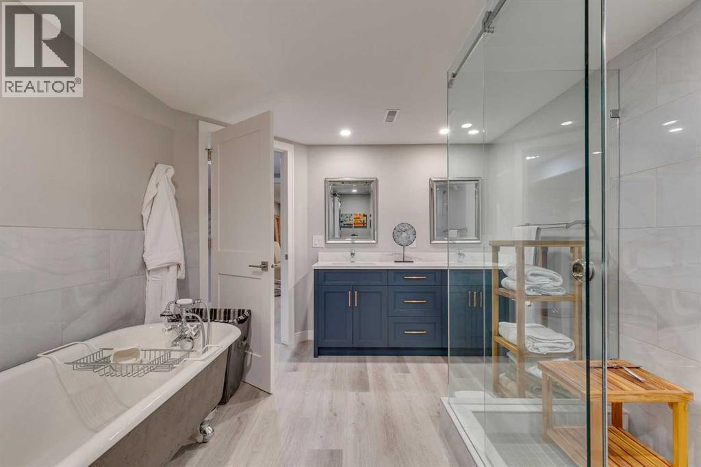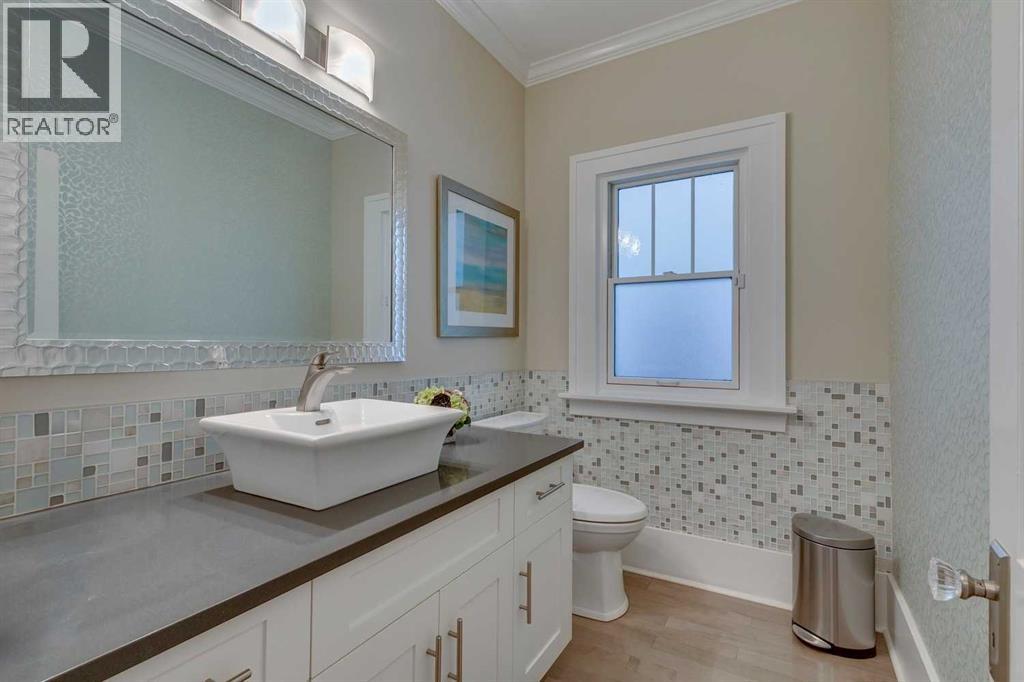 Absolutely immaculate, beautifully updated, 3 bedroom 2127 sqft bungalow. Loaded with charm & character & situated on an approximately 37 ft x 130 ft corner lot in the heart of Mission. The main floor is a class 1 office that could easily be converted to a private living space. The lower level was totally renovated in 2019 & is currently a self-contained luxurious 1 bedroom suite (illegal) with a separate street level entrance. The main level features a cozy heated sunroom & a good sized foyer . The elegant & spacious living room contains a wall of custom built-in cabinets & an electric fireplace & is bathed in natural light with 2 walls of windows. The formal dining room easily accommodates a family & also includes a wall of custom cabinets. The updated sleek white kitchen features extended height cabinets, an island, stainless steel appliances, quartz countertops & roughed-in space for a stove. The main floor includes 2 bedrooms, one with French door access to the yard plus an oversized 2 pc bath. The self-contained lower level is very open & bright with a beautiful modern kitchen with stainless appliances, full height cabinetry, quartz countertops & is open to the large family room. The bedroom has legal egress windows & a huge walk-in closet & is situated next to a spa-like bath with an oversized glass shower, a free standing tub, double sinks & a separate fully equipped laundry area. In the last 10 years the following upgrades were made - installed insulation was upgraded, new shingles, furnace, hot water tank, floors, new eaves, stamped concrete sidewalk plus patio, new landscaping, fence plus painted in & out. Featuring a large private yard with an oversized detached garage surrounded by convenient street parking for guests. This amazing location is within walking distance to the 4 Street amenities (shopping + restaurants), river path systems, The Repsol Centre & transit. An easy commute to downtown & good access to major roads, This is a wonderful opportun ity to own a lovingly maintained, historic single family home. Please note this home was not affected by the 2013 flood. (id:53676)