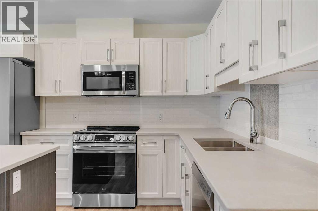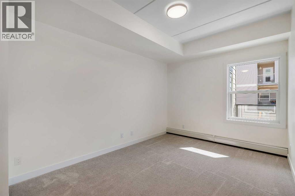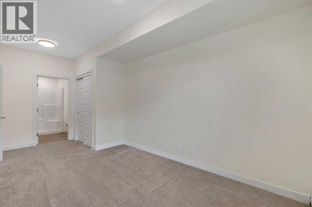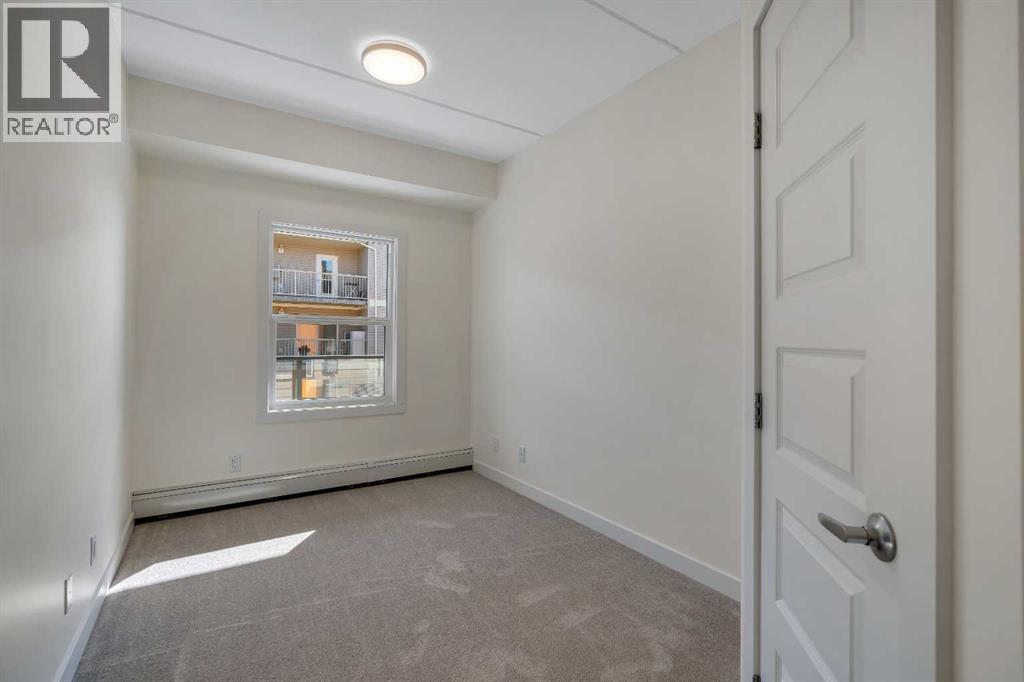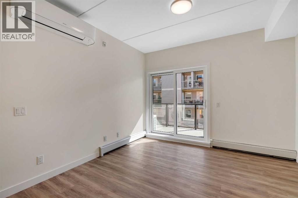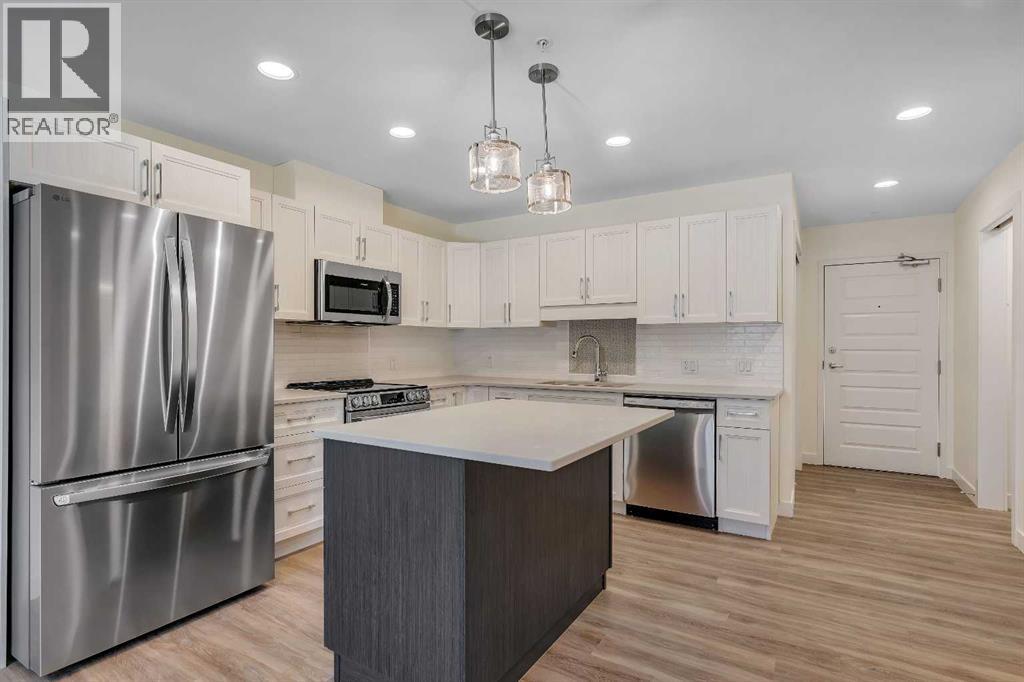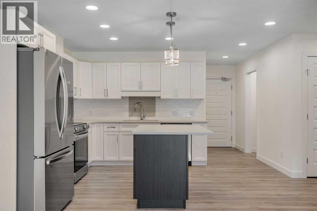 Welcome to 302, 404 1 Avenue SE – a stunning brand new, never-lived-in, south-facing condo that combines modern finishes, comfort, and convenience in one of the area’s most desirable buildings. Step inside this bright 2-bedroom, 2-bathroom home and be greeted by luxury vinyl plank flooring, quartz countertops, 9 ft flat-finish ceilings, and recessed kitchen lighting. The open-concept design makes the living space perfect for entertaining or relaxing, while the thoughtfully designed layout ensures both bedrooms are generously sized. From your 6' x 22' covered deck, you’ll enjoy breathtaking mountain views and plenty of room to unwind outdoors. The deck is equipped with a natural gas BBQ line and includes two enclosed storage rooms, giving you convenient extra space right outside your door. This home also comes with in-suite laundry featuring a stacked washer and dryer, as well as air conditioning for year-round comfort. Thanks to the building’s cement-core floor construction, you’ll appreciate how quiet and private each suite feels. The community is also proudly pet-friendly, allowing up to two small or medium dogs, and even includes a heated parkade dog wash to keep your pets clean and happy. Your parking is secure with a large indoor parking stall, and there’s no shortage of guest and street parking for visitors. The building itself provides a range of thoughtful amenities, including a fitness centre, social room, and a workshop space ideal for carpentry or other hobbies. With heat and water/sewer included in the low condo fees, this home offers exceptional value. Whether you’re downsizing, investing, or purchasing your first home, this unit delivers unbeatable appeal with its brand-new condition, mountain views, and full suite of amenities. (id:53676)