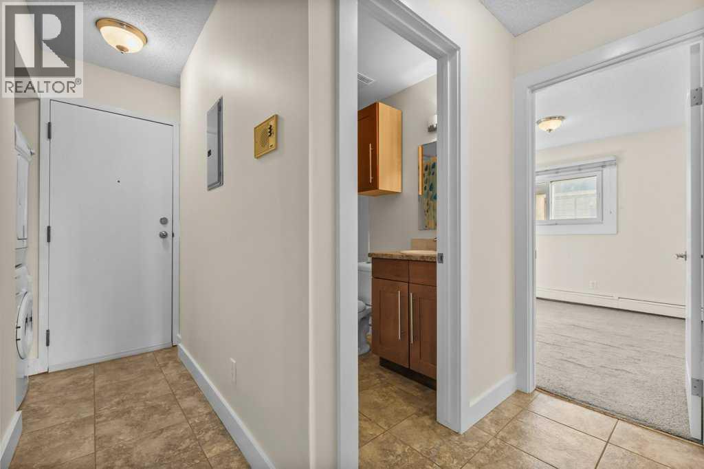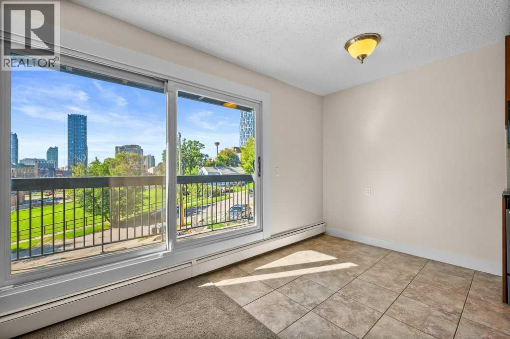 Tremendous views of downtown Calgary from this pet friendly 3rd floor corner unit with assigned stall parking, in-suite laundry, freshly painted interior and wood burning fireplace. Enter into a front hall with the convenience of your own personal laundry set and dual door storage closet with organizers. The tiled 4-peice bath presents counter height storage vanity, new tiled tub surrounds and a low flow toilet. Just off the 4-piece bath is the bedroom with vinyl side window and dual door closet including organizers within. The galley style kitchen was reinvigorated in 2008 with Ikea cabinetry a full set of stainless-steel appliances including a slide in stove, over the range microwave and tiled back-splash. Set just off the kitchen is the nook with access to a massive vinyl sliding patio door leading out to your full-size balcony to take in the panoramic views, enjoy the summer days and nights or just relax and soak in your private outdoor space. Completing this home is the generous size lifestyle room with a focal corner wood burning fireplace. All located in a secure building, self-managed with a healthy reserve fund steps to everything and anything offering the ultimate comfort and convenience of inner city living! (id:53676)
