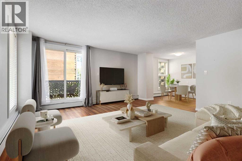 Modern Urban Living Meets Thoughtful Design in the Heart of the Beltline! Step into this beautifully maintained 2-bedroom, 1-bath, 951 sq.ft. condo, perfectly positioned just steps from the vibrant energy of 17th Avenue. Located in a quiet, concrete building with only four units per floor, this home offers serene city living with views facing the downtown core, providing beautiful natural light without the street noise. It’s an ideal retreat in one of Calgary’s most walkable and connected neighbourhoods.Inside, you’ll find a bright and functional layout featuring large windows, rich laminate flooring, and a spacious balcony perfect for morning coffee or evening cocktails. The kitchen was fully renovated in 2015 with granite counter-tops, full-height custom cabinetry, and stainless steel appliances. A new washer and dryer were added in 2021, and the entire unit was freshly painted in 2025, offering a crisp, modern finish.With in-suite laundry, portable air-conditioning unit, additional separate from unit storage (#303/17), and an assigned platform parking stall (#2), this home delivers all the essentials for convenient downtown living. Enjoy an unmatched lifestyle with artisan bakeries, restaurants, pubs, grocery stores, coffee shops, stylish clothing stores, boutique gyms, the MNP Centre, and Calgary’s river pathways all within walking distance. Whether you're headed to yoga, brunch, or downtown for work, everything you need is just minutes from your door. Live where comfort, culture, and convenience converge! (id:53676)