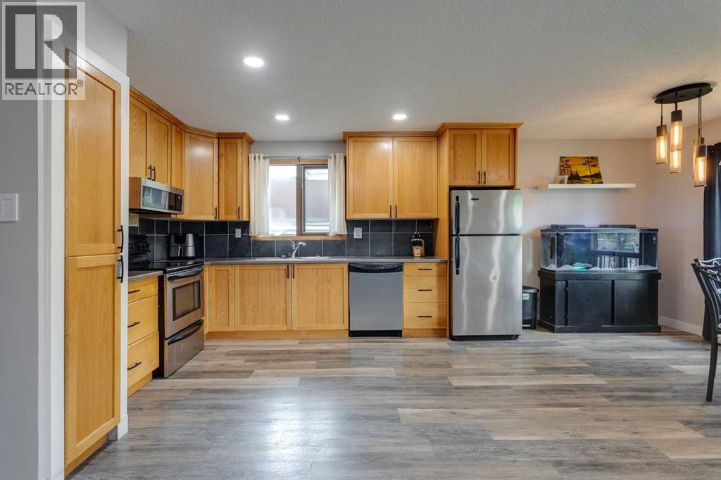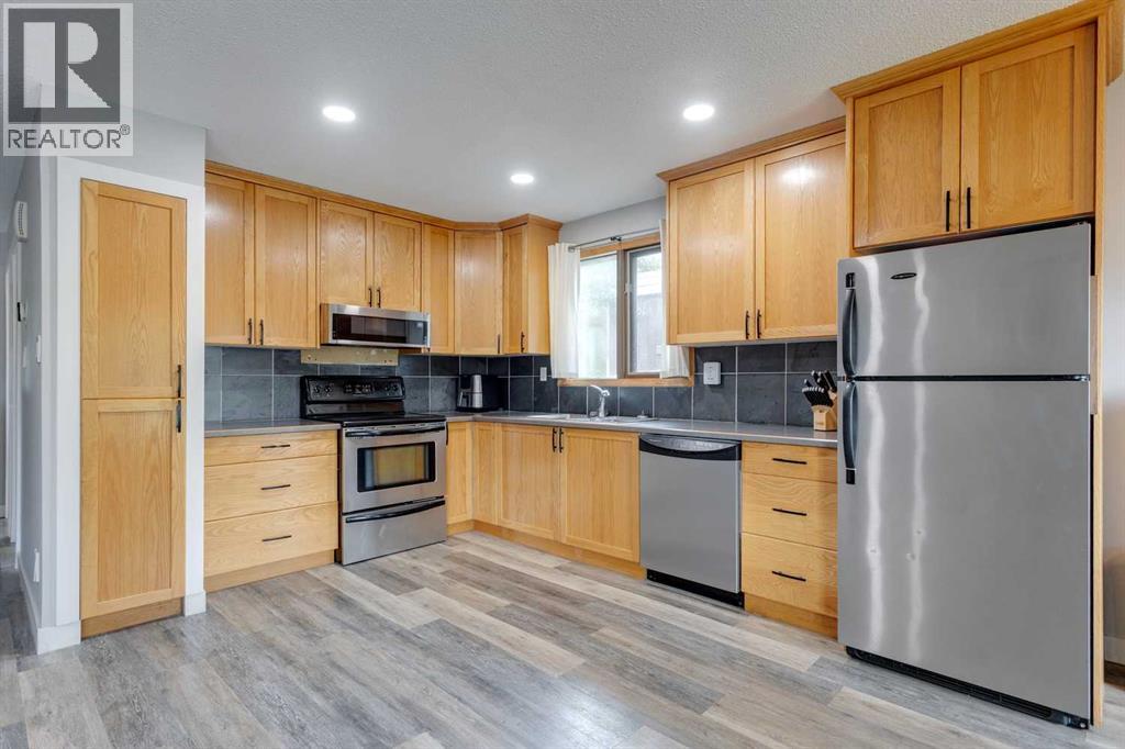 Explore this exceptional investment property, perfectly positioned for convenience near downtown, schools, shopping, and public transit. Upstairs, the main living area features a stylish open-concept kitchen, a cozy dining nook, and a spacious family room bathed in natural light. It also includes two generous bedrooms, convenient laundry facilities, and a 4-piece bathroom. The lower level, currently configured as an illegal suite, offers flexible living arrangements and is complete with a separate entrance, a fully equipped kitchen, two roomy bedrooms, a bathroom, and its own laundry. This home has undergone recent renovations. The main level includes all-new flooring (including subfloor), doors, trim, blown-in insulation, an upgraded bath fan, a new microwave, fresh paint, and smart LED lighting (Alexa and Siri capable). The lower level also benefits from fresh updates, including new floors, carpet, underlay, trim, doors, and an upgraded bath fan. The exterior boasts mature trees, a dedicated garden space, and a single-car garage. A key highlight: both current tenants are exceptional and very accommodating. This is an ideal, turn-key addition to your real estate investment portfolio. Contact us today to schedule your private tour. (id:53676)