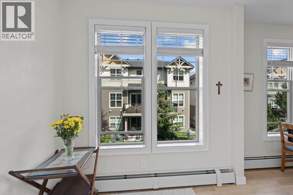 Welcome to this beautifully updated 1 bedroom + den condo located in the desirable community of Sunset Ridge in Cochrane. With 648 sq/ft of thoughtfully designed living space, this unit is perfect for first-time buyers, downsizers, or investors looking for a modern, low-maintenance home with mountain charm. Freshly updated throughout, the condo features new vinyl plank flooring, new carpet in the bedroom, and a fresh coat of paint, giving it a clean, contemporary feel. The open-concept layout offers a functional kitchen with ample cabinetry, a cozy living room with large windows, and a versatile, sunny, den that’s perfect for a home office, guest room, or extra storage. The spacious primary bedroom includes bright, sunny windows a large closet and is located next to the full 4-piece bathroom. Enjoy in-suite laundry, assigned parking, and a quiet, well-maintained building in a peaceful setting. Located in scenic Sunset Ridge, you’ll love the easy access to walking paths, schools, shopping, and all the amenities Cochrane has to offer, and just a short drive to Calgary and the mountains. (id:53676)