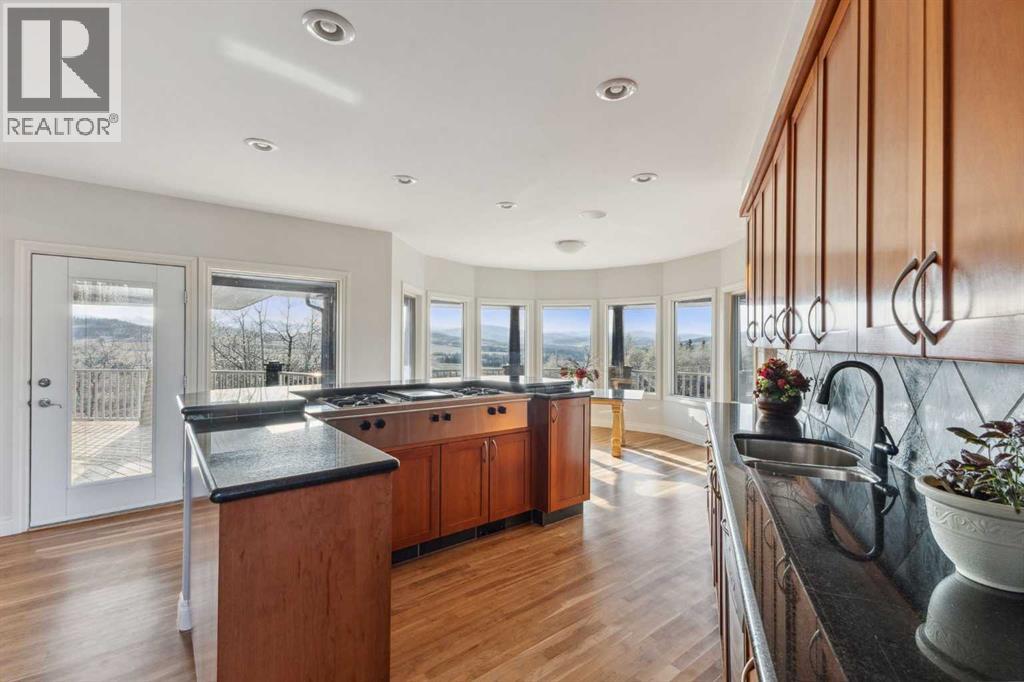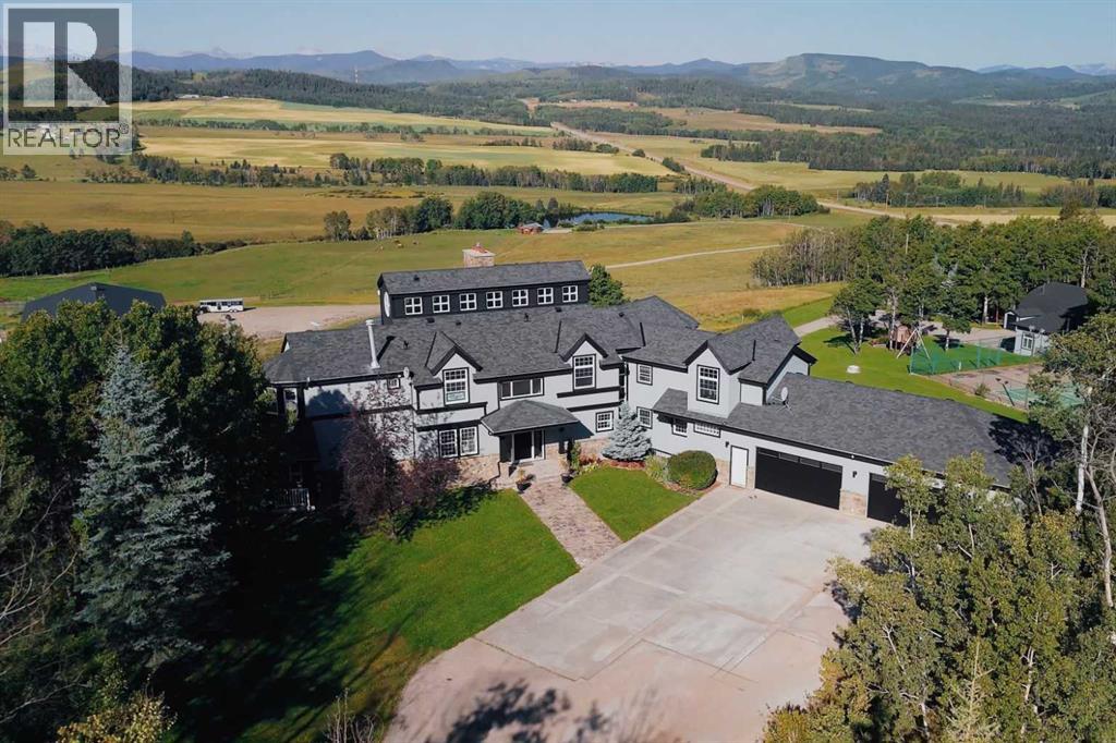 Welcome to the epitome of spacious comfort on this expansive equestrian estate west of Millarville, where lavish luxury living and breathtaking mountain vistas harmoniously blend with a turnkey paradise for the discerning horse aficionado. Set on a remarkable 147.07 acres, this extraordinary estate offers an unparalleled lifestyle. The custom home, spanning 5,521.06 square feet, is a testament to fine craftsmanship and attention to detail. Step inside to discover cathedral ceilings that create an airy and grand atmosphere while the elegant American Cherry hardwood floors add warmth and richness to the living spaces. The spacious kitchen with dine-in island is bathed in natural light, allowing family meals to be enjoyed while taking in the luscious landscapes. A spacious primary suite offers peace and solitude while in floor heating warms the ensuite and runs thoughout the main level. Four fireplaces throughout the home create cozy gathering spots for friends and family. Immerse yourself in the wonders of the night sky with a private rooftop observatory where you can bask fireside in the splendor of a mountain view sunset or simply marvel at the celestial beauty above. Catch the game at your very own sports bar or get into game shape in an exercise room and sports court, there are endless entertainment options for guests. For the horse enthusiast this property provides the ultimate playground. Imagine having your horses right at your back door, with horse stalls available in an indoor heated riding arena set against the backdrop of the Canadian Rockies. The turnkey nature of the equestrian facilities allows for a seamless transition into the equestrian lifestyle. For the hobbyist or craftsman, the inclusion of two heated workshops provides ample space for pursuing your passions and honing your skills. Allow serene moments to wash over you in the shadow of the mountains while relaxing at the water’s edge where your guests can appreciate the quiet of a perso nal cottage. Located minutes from Kananaskis Country, the world famous Spruce Meadows, Bragg Creek & Calgary are a mere 30 minute drive, whie the mountains are a quick 60 min trip, allowing for easy access to city amenities from the comfort of the tranquility of the country. Fall in love with the unparalleled beauty of the mountainscapes that surround this property from the wrap around covered deck. Don’t compromise, with smart-home systems and Starlink internet connection throughout the house, arena and cottage, it is possible to enjoy modern living amongst rustic backdrops. Whether it's sipping a drink in the evening while taking in the majestic views or exploring the vast natural wonders nearby, this estate provides a remarkable setting for relaxation and rejuvenation. Don't miss the opportunity to own this equestrian haven, where every aspect of luxurious living and equestrian pursuits has been carefully considered. Embrace a lifestyle where horseback riding, stunning views, and loving memories await. (id:53676)