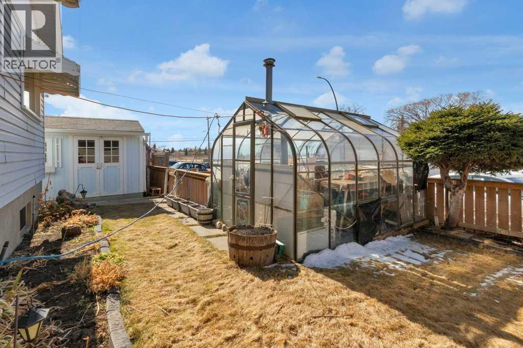 Welcome home to this lovingly cared-for, one-family-owned property offering comfort, character, and incredible versatility. Originally designed as a 3-bedroom home, the main floor has been thoughtfully reconfigured into one expansive primary-style room and a second spacious bedroom, creating an open and flexible layout to suit your needs. A rare, grandfathered wood-burning fireplace anchors the home and beautifully connects the kitchen, dining, and living areas—perfect for cozy evenings and entertaining. Original hardwood floors flow throughout the main level, adding warmth and timeless charm. Step outside from the dining area to enjoy your private deck, or relax on the south-facing patio and soak up the sun. This home is equipped with air conditioning to keep you comfortable during the summer months, along with a water softener system to enhance everyday living. The fully finished basement is a hobbyist’s dream, featuring extensive workbenches and storage space ideal for an art studio, wine-making room, or workshop. You’ll also find a large recreation room, a versatile office/den, and a cold room for additional storage. Outdoors, enjoy a beautiful greenspace setting complete with a greenhouse for gardening enthusiasts, two storage sheds, and ample paved parking with room for up to three vehicles, a trailer, or recreational toys. Located within walking distance to schools, parks, and shopping, and just minutes from Inglewood Golf Course, this home offers both convenience and lifestyle. This is a rare opportunity to own a well-maintained home filled with pride of ownership—book your private showing today! (id:53676)