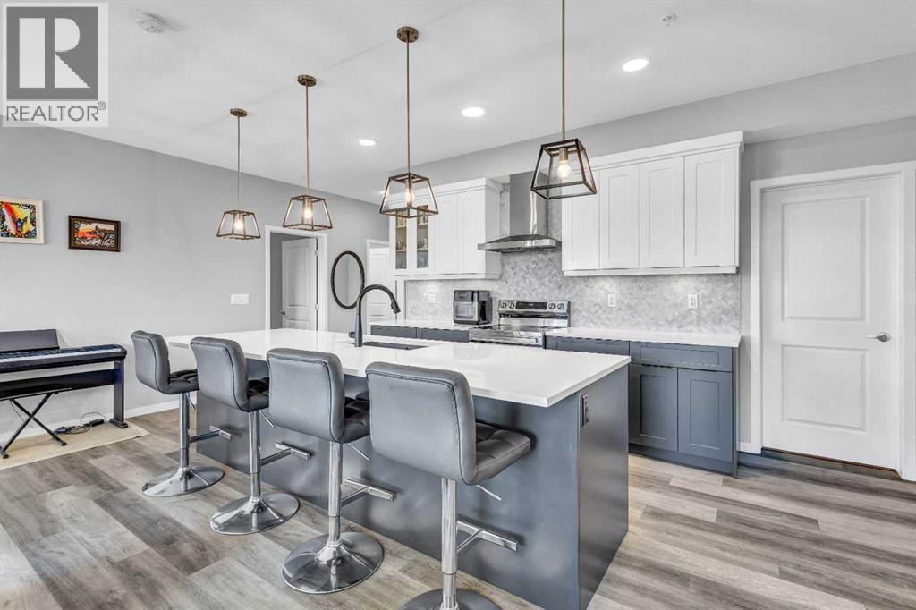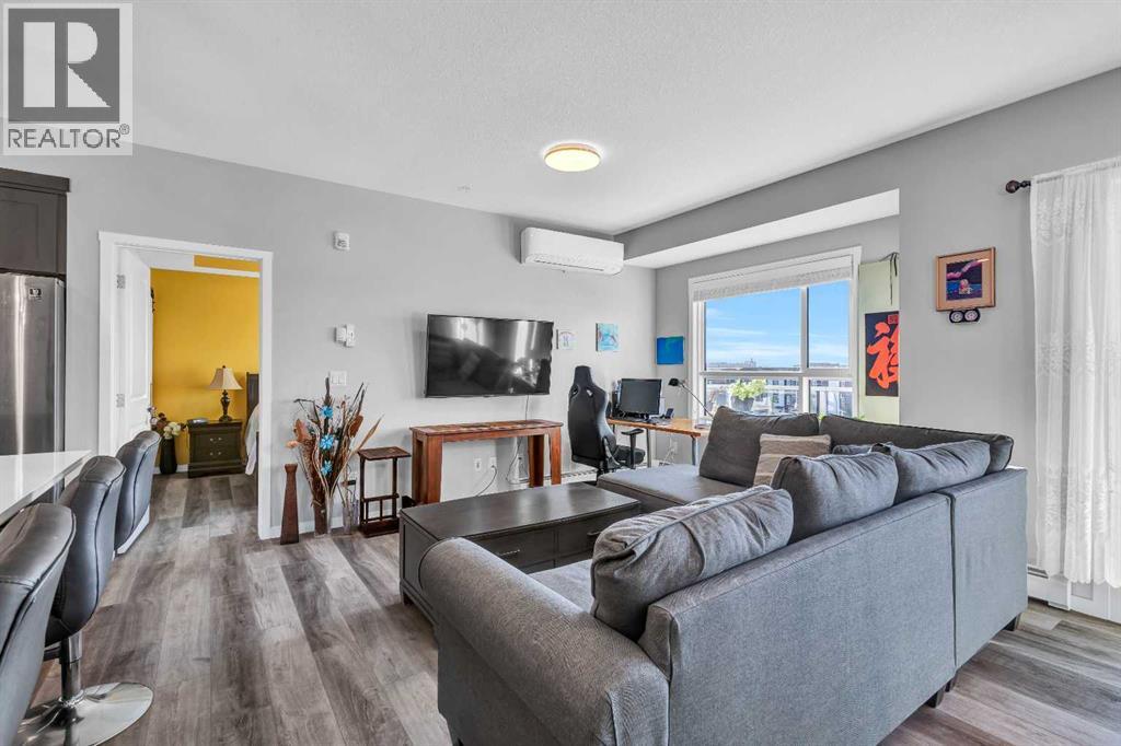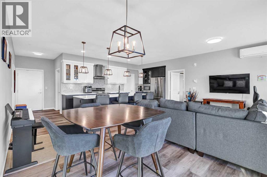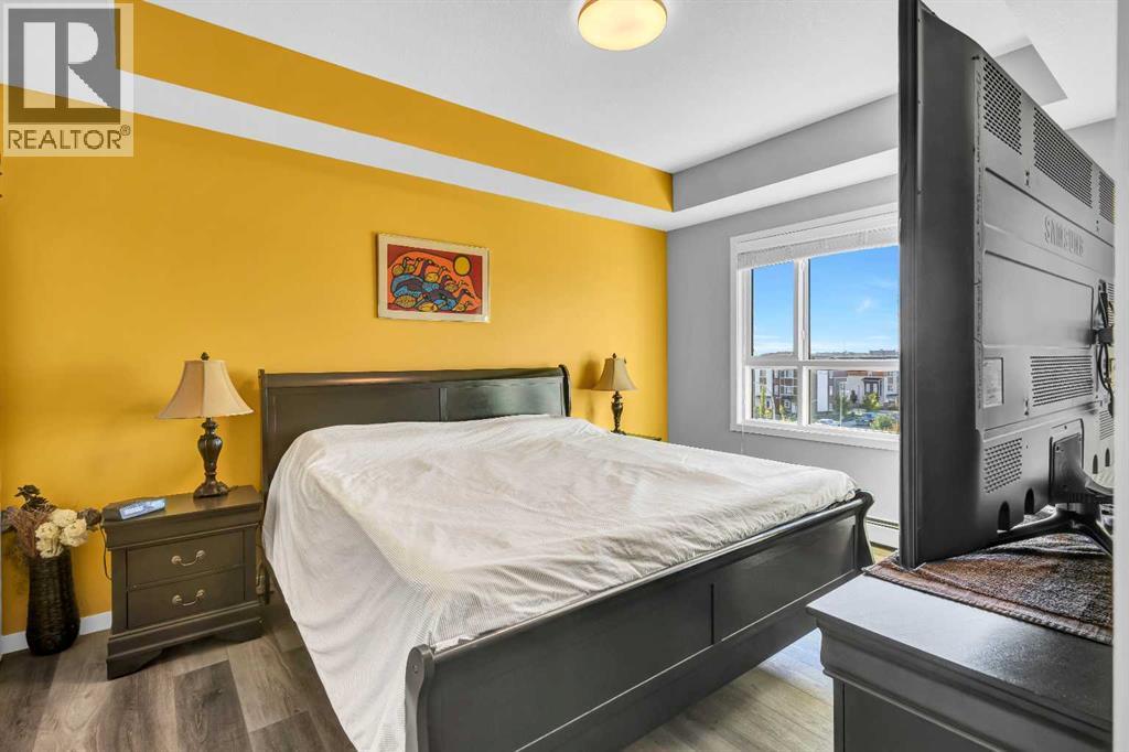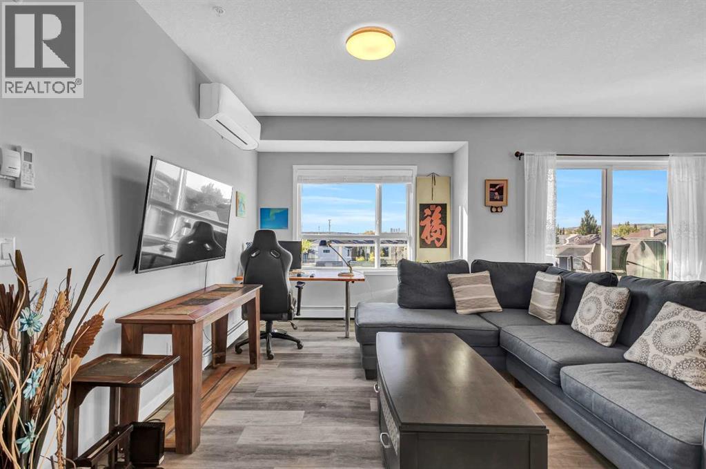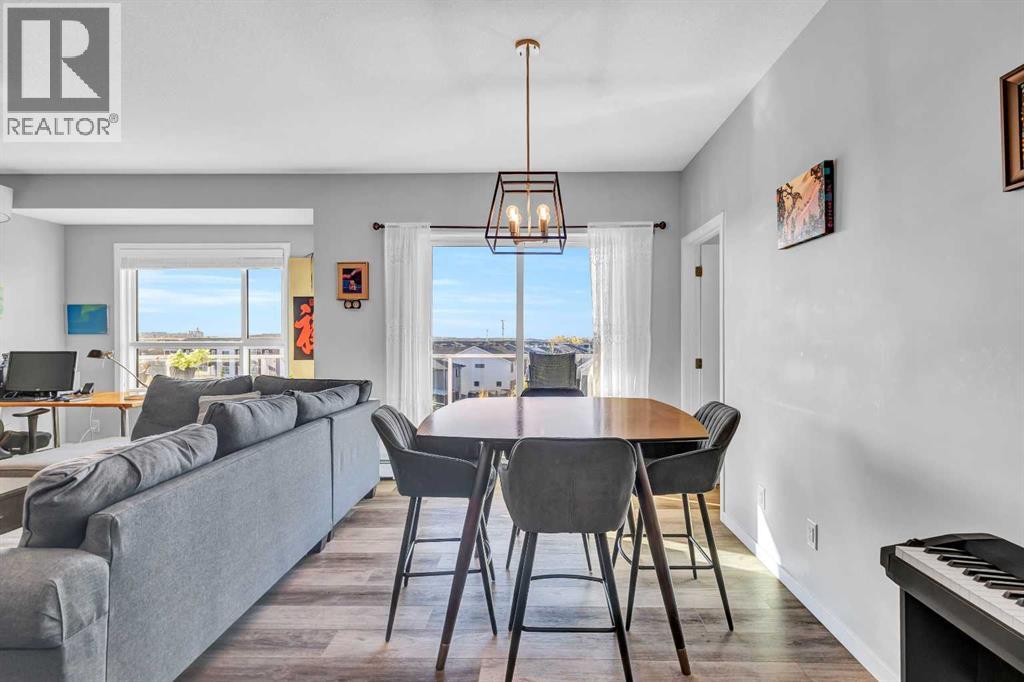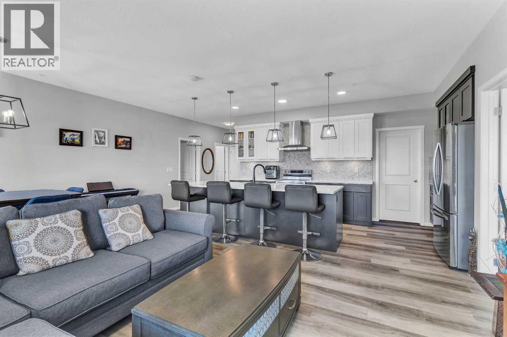 Welcome to this immaculate, like-new condo in The Rise, an award-winning building by Cedarglen Living.Offering THREE bedrooms, TWO bathrooms, and 1,165 sq. ft., this thoughtfully designed home combines modern finishes, functional living, and a low-maintenance lifestyle.The open-concept gourmet kitchen is a true highlight, featuring soft-close doors and drawers cabinets with sleek quartz countertops, a spacious pantry, and an oversized quartz island that’s perfect for entertaining. Modern stainless steel appliances—including a full-size fridge, stove, dishwasher, and built-in microwave—complete this well-appointed space. From the kitchen, the layout flows seamlessly into the bright and inviting living room, where nine-foot ceilings and expansive SOUTH-facing windows fill the space with natural light. The living area extends to a covered balcony with a BBQ gas line and scenic views, providing the perfect setting for morning coffee or evening relaxation.The primary suite is designed as a private retreat, complete with a generous walk-in closet and a spa-inspired four-piece ensuite. The secondary bedroom and versatile den offer flexibility for guests, a home office and are complemented by another full four-piece bathroom. A spacious laundry room with a handmade shelf and countertop adds both convenience and extra storage.This home is filled with upgrades, including luxury vinyl plank and tile flooring throughout, extended height cabinetry in the bathrooms and kitchen island, quartz countertops in both the kitchen and bathrooms, central air conditioning, and wall-mounted medicine cabinets in both bathrooms. A separate storage room and a TITLE underground parking stall with secure bike storage further enhance the convenience of this property.The Rise is surrounded by lifestyle amenities, including scenic walking paths, a pedestrian bridge, and a stormwater pond that create a peaceful setting for daily walks. The Harvest Hills community also offers HOA-managed amenities su ch as tennis courts and recreational spaces, while schools, playgrounds, parks, and the public library are just minutes away. Nearby shopping and dining options include Country Hills Towne Centre and Harvest Hills Crossing, with grocery stores, restaurants, a movie theatre, VIVO Recreation Centre, and T&T Supermarket all within easy reach. Quick access to Stoney Trail, Country Hills Boulevard, and Deerfoot Trail, along with just a 10-minute drive to Calgary International Airport, make this location as convenient as it is desirable. Meticulously maintained by the original owner, this home shows like new and offers a functional layout designed for both comfort and efficiency. With its blend of luxury finishes, vibrant community lifestyle, and prime location, this condo presents a rare opportunity in one of Calgary’s most sought-after neighbourhoods.Schedule your private showing today to experience the comfort, style, and convenience it has to offer. (id:53676)