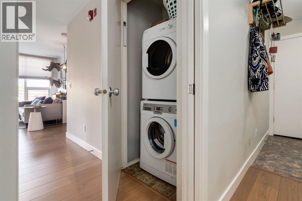 Welcome to The Ellington, a beautiful 2 bedroom, 2 bathroom condo on the 3 floor, perfectly located in the heart of the city. Enjoy the best of urban living with parks, restaurants, shops and scenic bike paths just steps away- all while overlooking a peaceful green space. Step inside to an open-concept living and dining area with large windows that fill the space with natural light. Patio doors lead out to your private balcony from the dining area - the perfect spot for morning coffee or evening relaxation. The kitchen features laminate countertops, stainless steel appliances and kitchen bar. The spacious primary bedroom includes a walk-in closet and full ensuite for your comfort. Additional features include In-suite laundry, heated titled underground parking and extra storage locker. This well maintained condo offers the ideal mix of comfort, style and convenience in a vibrant inner-city location. (id:53676)