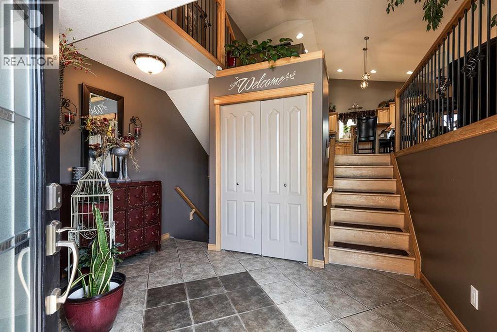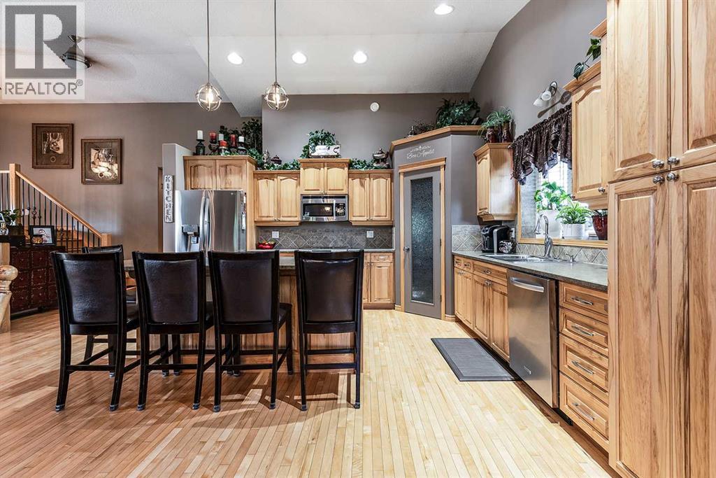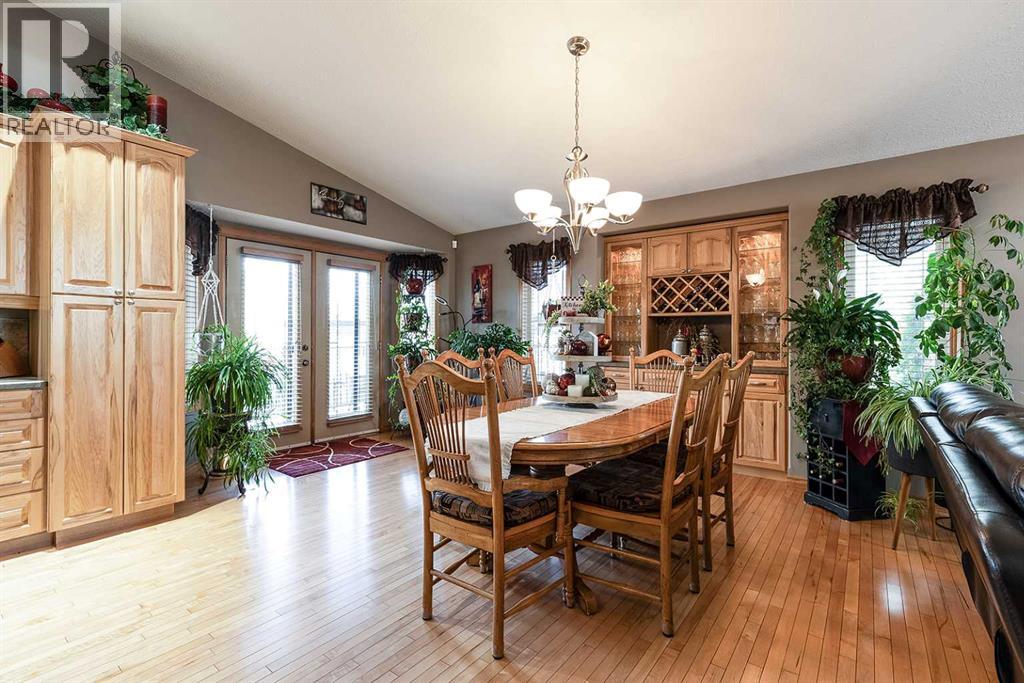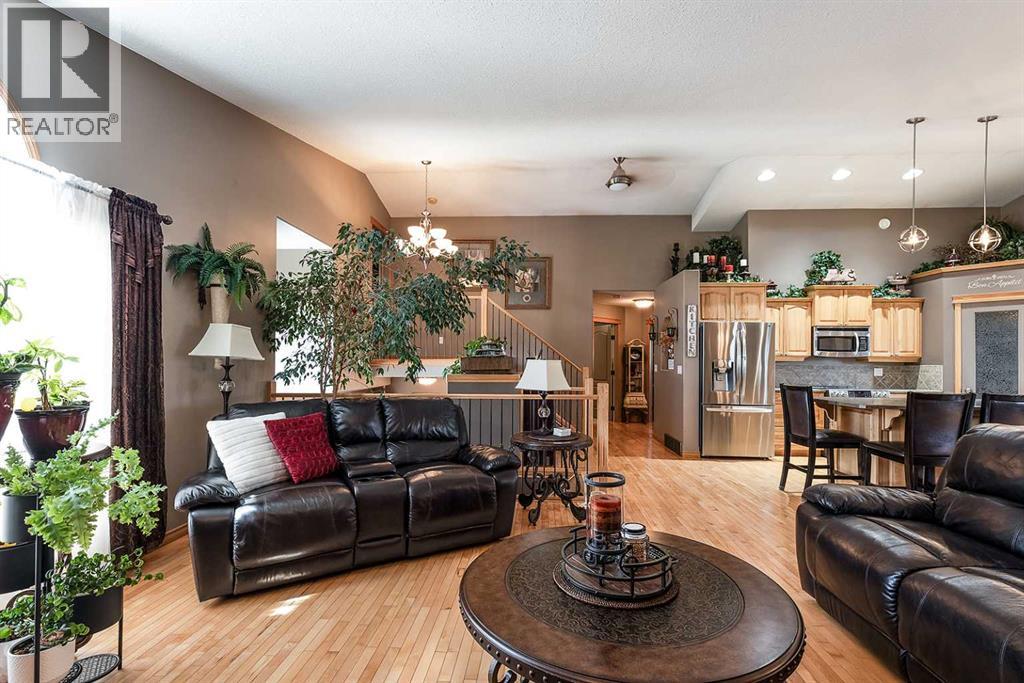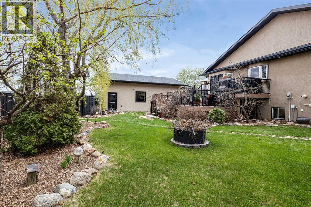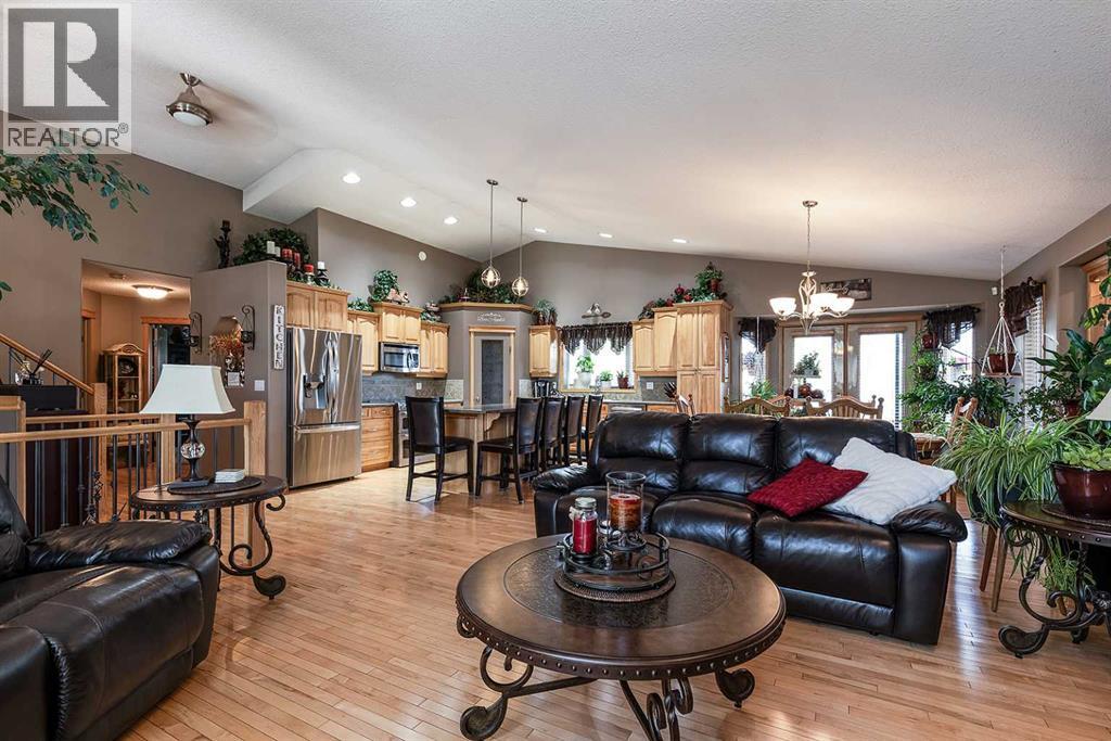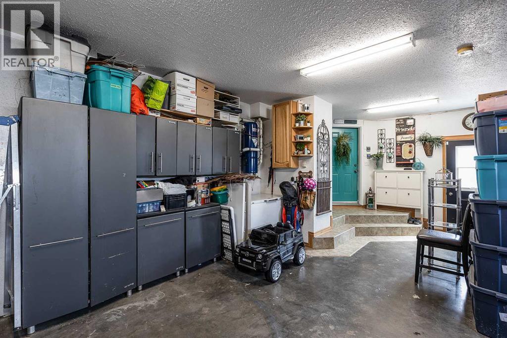 Discover luxury living in this exquisite 1940 sq ft modified bi-level residence, beautifully positioned on a generous double lot in Oyen, Alberta. Built in 2004 and meticulously maintained by its original owner, this home showcases a stunning stucco exterior complemented by new shingles, windows, and a garage door installed in 2023.Step inside to experience an inviting layout with three bedrooms on the upper level and two additional bedrooms downstairs. The highlight is the master suite above the garage, featuring a spacious walk-in closet and a 4-piece ensuite with a jetted tub and separate shower. The home's elegant interior is enhanced by radiant heated tile flooring with individual climate controls, rich hardwood, and plush carpeting in the bedrooms and lower level.Vaulted ceilings and a warm gas fireplace enrich the main living room, creating a welcoming atmosphere for relaxation and entertainment. The gourmet kitchen awaits with sleek maple cabinets, modern stainless steel appliances, and plumbing in place for a future gas stove, adding to its allure. A ready-to-install gas line for a BBQ just outside is perfect for culinary adventures.Practical amenities include an on-demand hot water system, a new central vacuum, and pre-wiring for a hot tub in the beautifully landscaped outdoor space. The fully fenced yard benefits from an underground sprinkler system, ensuring lush surroundings and easy maintenance.Completing this magnificent property are the garages: a double attached garage and a separate 28x32 detached garage, each fully insulated and heated. The attached garage features radiant floor heating, ideal for Alberta's cooler months. With ample space for vehicles, a workshop, or storage, and additional RV parking with electrical hookup, this home meets all your needs with unmatched style and functionality. (id:53676)