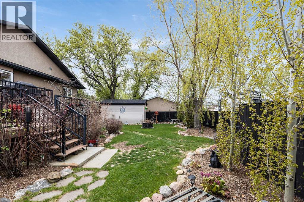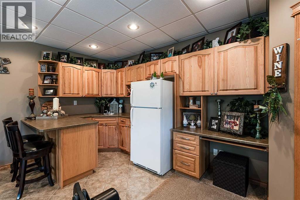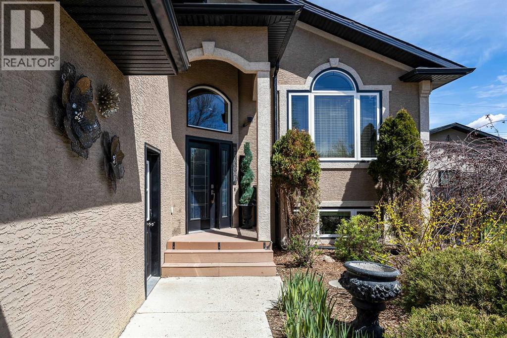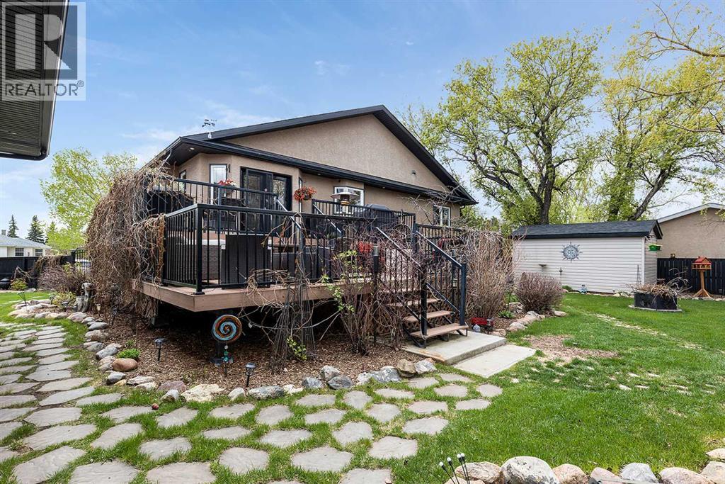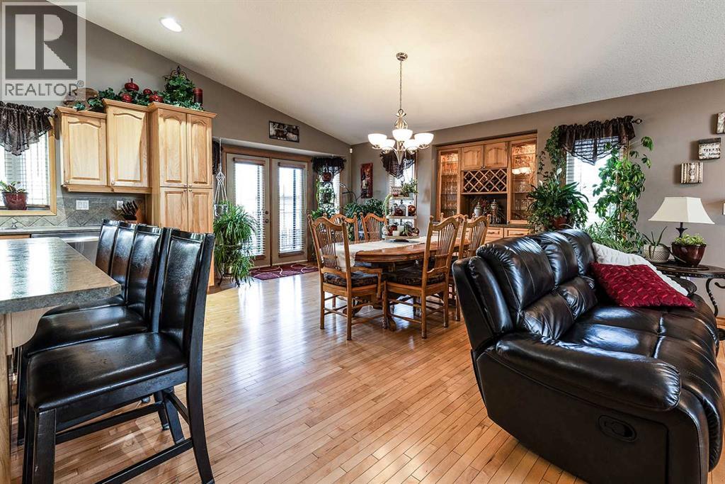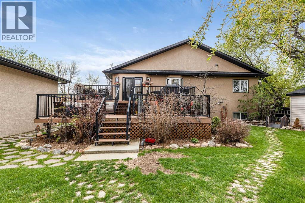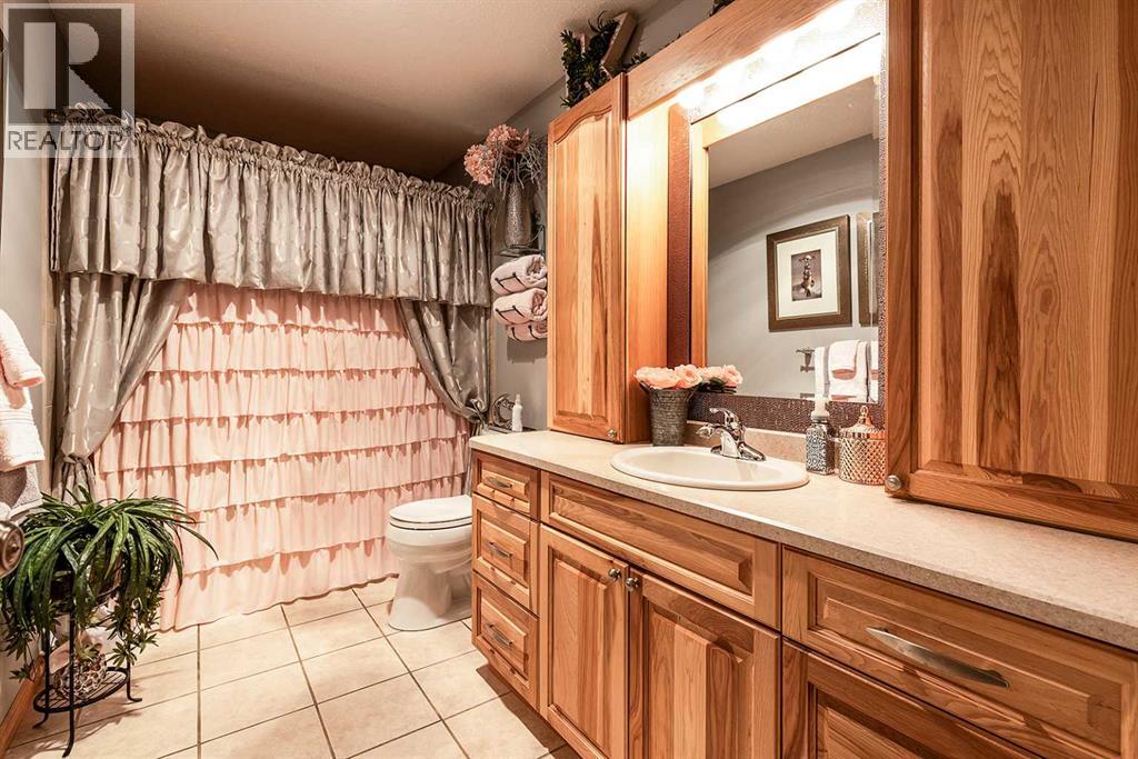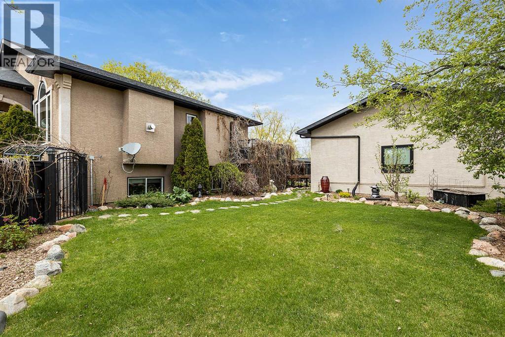 Discover luxury living in this exquisite 1940 sq ft modified bi-level residence, beautifully positioned on a generous double lot in Oyen, Alberta. Built in 2004 and meticulously maintained by its original owner, this home showcases a stunning stucco exterior complemented by new shingles, windows, and a garage door installed in 2023.Step inside to experience an inviting layout with three bedrooms on the upper level and two additional bedrooms downstairs. The highlight is the master suite above the garage, featuring a spacious walk-in closet and a 4-piece ensuite with a jetted tub and separate shower. The home's elegant interior is enhanced by radiant heated tile flooring with individual climate controls, rich hardwood, and plush carpeting in the bedrooms and lower level.Vaulted ceilings and a warm gas fireplace enrich the main living room, creating a welcoming atmosphere for relaxation and entertainment. The gourmet kitchen awaits with sleek maple cabinets, modern stainless steel appliances, and plumbing in place for a future gas stove, adding to its allure. A ready-to-install gas line for a BBQ just outside is perfect for culinary adventures.Practical amenities include an on-demand hot water system, a new central vacuum, and pre-wiring for a hot tub in the beautifully landscaped outdoor space. The fully fenced yard benefits from an underground sprinkler system, ensuring lush surroundings and easy maintenance.Completing this magnificent property are the garages: a double attached garage and a separate 28x32 detached garage, each fully insulated and heated. The attached garage features radiant floor heating, ideal for Alberta's cooler months. With ample space for vehicles, a workshop, or storage, and additional RV parking with electrical hookup, this home meets all your needs with unmatched style and functionality. (id:53676)