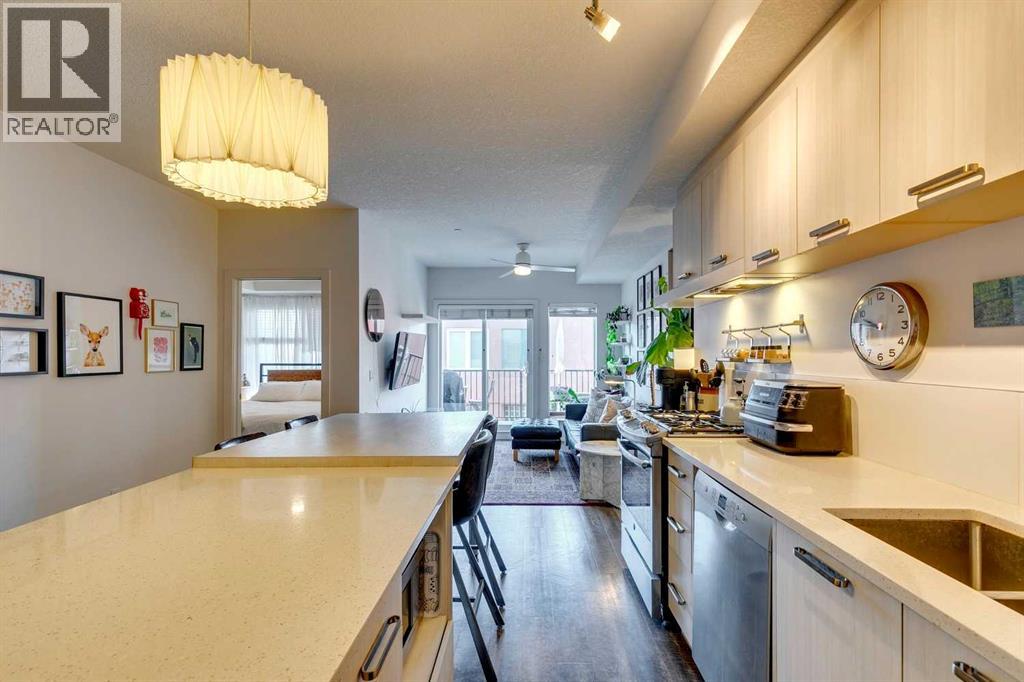 This modern 1 bedroom plus flex room, 2 full bath condo in the LiFFT building is located across from a park in the established community of Renfrew. The open plan presents vinyl plank flooring & high ceilings, showcasing the kitchen that’s tastefully finished with quartz counter tops, island with eating area, plenty of storage space & stainless steel appliances. A spacious living room has access to the sunny south facing balcony. The primary bedroom boasts a walk-through closet to a private 3 piece ensuite & the flex room can be used as a den, bedroom, music room, second sitting area or whatever your heart is content with! Other notable features include a second full bath for guests, in-suite laundry, one assigned underground parking stall & an assigned storage locker. The location is incredibly convenient, across from a park & close to historic Bridgeland shops, restaurants & cafes, schools, public transit & a quick commute to downtown via Edmonton Trail. (id:53676)