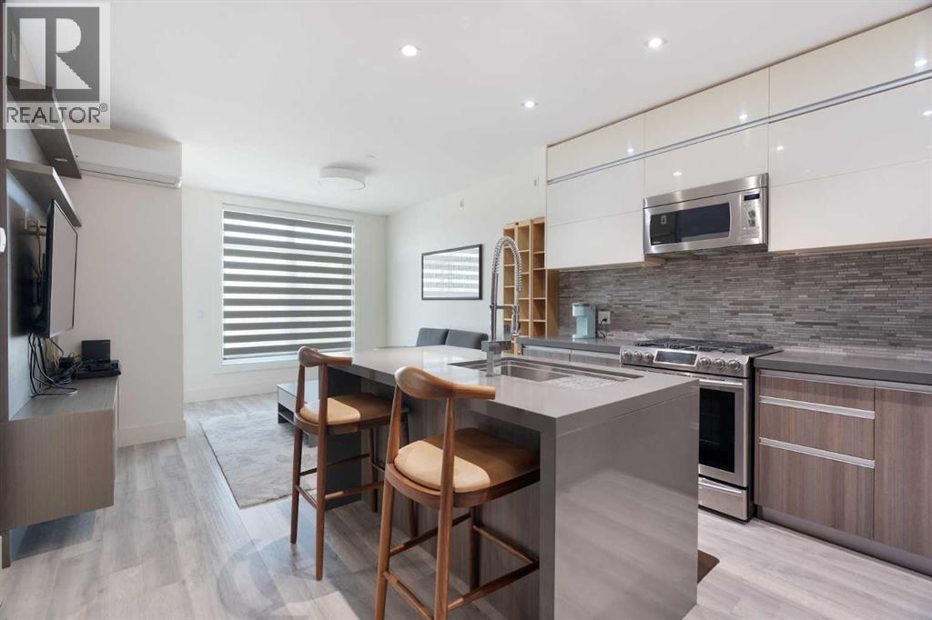 Welcome to Unit 308, an inviting and stylish 2-bedroom, 2-bathroom condo perfectly situated in Crescent Heights. This bright, open-concept home blends modern design with everyday functionality, featuring expansive windows that fill the space with natural light, sleek LVP flooring, and a fresh, neutral palette.The contemporary kitchen is equipped with stainless steel appliances, quartz countertops, and sleek, flat-panel cabinetry with generous storage—ideal for cooking, entertaining, or enjoying a quiet meal at home. The spacious living and dining area opens to a private balcony, perfect for morning coffee or evening relaxation.The primary suite includes a large closet and a stylish 4-piece ensuite, while the second bedroom is well-sized with its own adjacent full bath—offering ideal separation for guests, roommates, or a home office. Additional highlights include in-suite laundry, secure parking, and a stunning rooftop terrace to enjoy the beautiful panoramic downtown and mountain views.Located in a boutique building just steps from cafés, restaurants, shops, river pathways, and city transit, this home delivers the ultimate urban lifestyle—whether you’re a first-time buyer, downsizer, or investor. (id:53676)