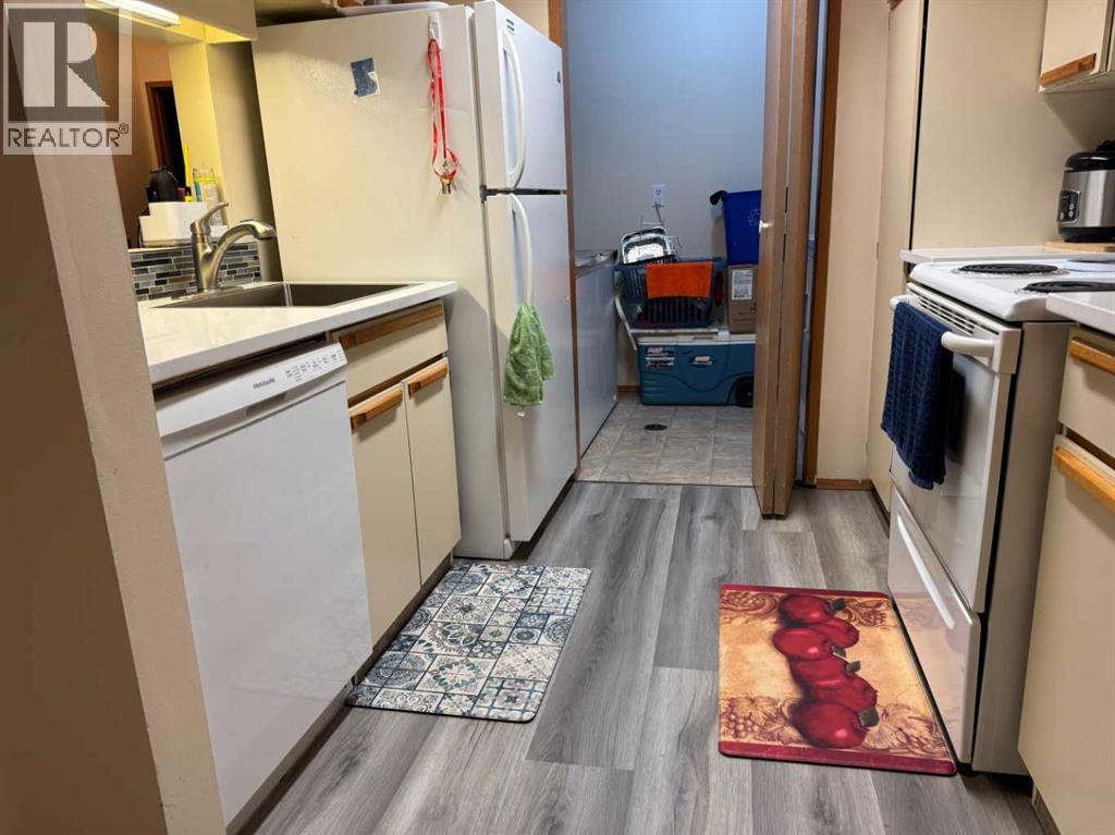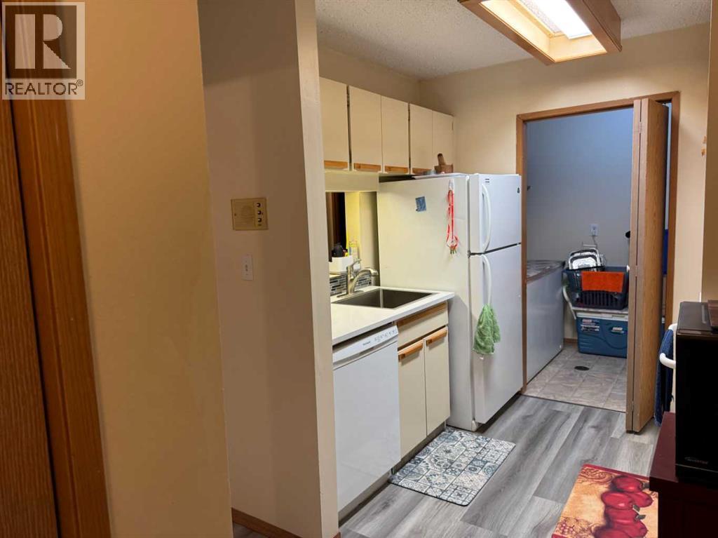Corner unit!!Two bedrooms and a huge open space for dining, living, office including in-suite laundry... AND a lovely outside deck to enjoy the views of Slave Lake! One parking stall and condo fees covering general exterior maintenance, general insurance, reserve fund. Upgrades include quartz kitchen countertops, stunning tile in bathroom and bathroom vanity, Plus vinyl laminate through kitchen, dining room and spacious living room. If you're looking to invest! Grizzly Ridge is located on SW corner of town and within walking distance to Cornerstone Retail, McDonald's, Northern Lakes College (swimming pool) and the multi-rec centre. (id:53676)