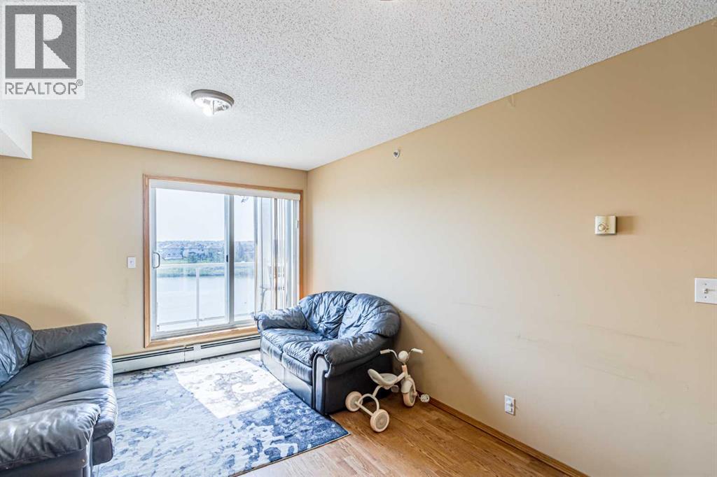 Welcome to Raven Ridge Gardens, a charming complex situated in the desirable community of Saddle Ridge. This well-maintained condo backs on the pond with gorgeous views! This top floor unit encompasses over 813.55 sq ft of living space featuring 2 bedrooms, 2 full baths , and a titled parking space. The main floor showcases beautiful laminate flooring and an open concept floorplan. The spacious living room has sliding doors giving access to the balcony, perfect for enjoying the views on summer days. The modern kitchen is equipped with wood cabinetry, white and stainless steel appliances, and a breakfast bar. A single car titled parking space provides parking for your convenience. The location is unbeatable, with schools, parks, playgrounds, restaurants, shopping, and public transit just minutes away. Quick access to Stoney Trail, making exploring the city a breeze. Book your private viewing today! (id:53676)