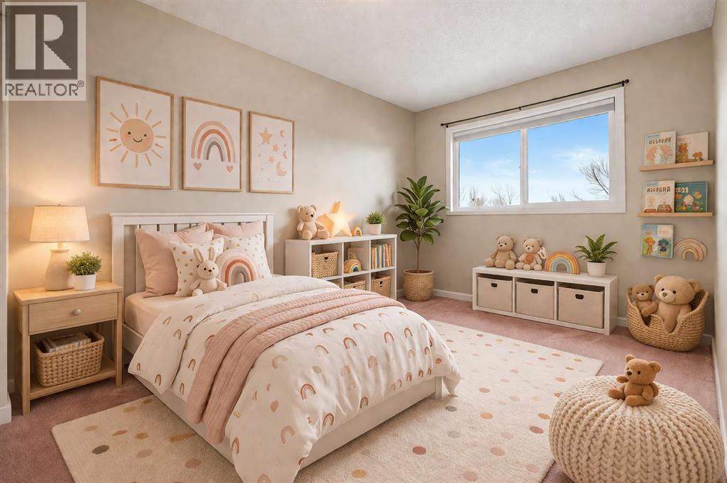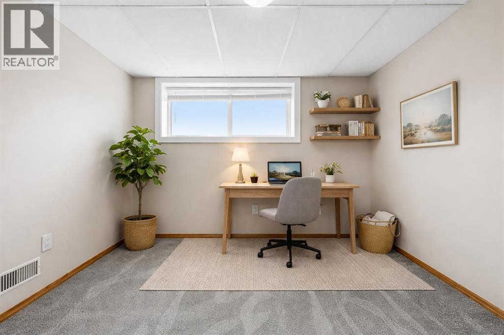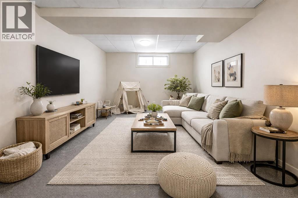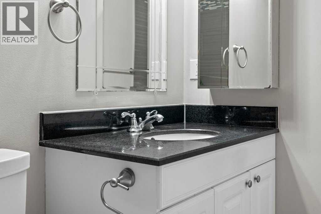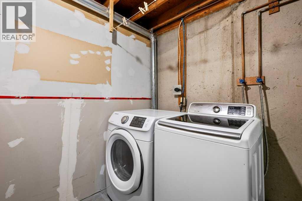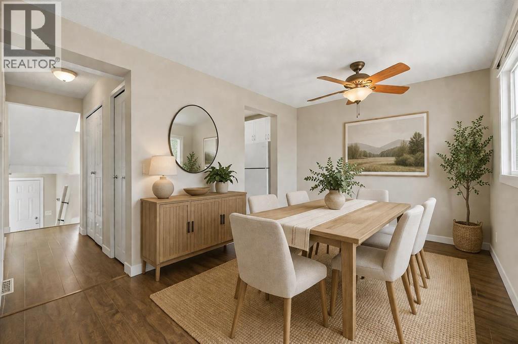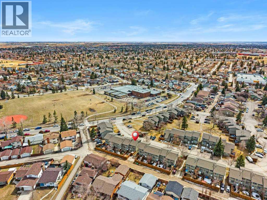 Welcome to this well-maintained and freshly painted end-unit townhome offering 1,100 sq ft above grade of comfortable living space and a fully fenced backyard, sectioned dedicated stall parking, across from Guy Weadick School! This home has seen numerous updates over the years, including vinyl windows, attic insulation upgraded in 2022, asphalt shingles, doors, and fencing, along with a hot water tank (approx. 3 years) and a serviced furnace with a newer motor, providing peace of mind for years to come.The main floor features laminate flooring and a functional layout with a bright front living room, convenient 2-piece bath, and a very spacious dining area with a garden door leading to the north-facing backyard complete with a storage shed and plenty of space for the kids and pets to play. The galley-style kitchen offers white cabinetry, tiled backsplash, extended-height cabinets, and a full appliance package.Upstairs, you’ll find three bedrooms, including a generous primary that comfortably fits a king-sized bed and offers dual closets. The updated 4-piece bathroom features a granite countertop, undermount sink, and a deep soaker tub with full tile surround. The fully finished basement adds additional living space with a flex room, media room, and laundry/utility area, all complemented by laminate and carpet flooring.Located in a well-managed complex, this home includes a rear assigned parking stall and is ideal for first-time buyers, families, or investors. (id:53676)