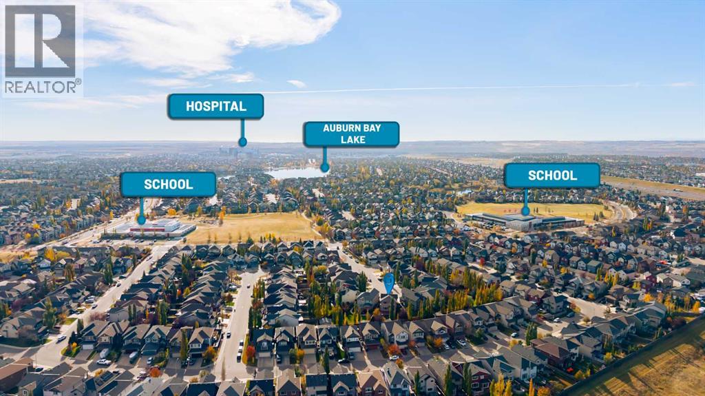 OPEN HOUSE on Sunday Nov. 30th from 1 - 3 PM! Welcome to your new Auburn Bay home! This gem sits on a pie lot in a quiet cul-de-sac and is VERY close to schools, parks, playgrounds and a treed area with a pond to enjoy! Great sized home with lots of room to grow with your family! As you enter this home you are greeted with a convenient main floor office with doors for privacy, as you head down the hallway it leads you into a fantastic living area with a large living room, gas fireplace and built ins! The kitchen has new appliances, plenty of cabinet and storage space, a raised breakfast bar, tiled backsplash and a corner pantry! There is also a generous sized eating area that overlooks the large back yard! The rest of the main floor is completed with a half bathroom and a mudroom that leads to the garage. Upstairs has a huge SUNNY bonus room with vaulted ceilings and plenty of space for all your furniture, a large primary bedroom with a full ensuite bathroom and a great sized walk in closet! There are also 2 additional bedrooms and another full bathroom for the kids! AND upper laundry with lots of storage! The basement has been started but still awaits your finishing touches to make it your own. This home has it all: Great location, loads of recent upgrades (BRAND NEW carpet and paint, shingles, furnaces and hot water tank are just a few years old and the kitchen appliances have all been upgraded within the last year or so) There is also A/C, large pie lot, short commute to the LAKE, hospital, off leash dog park, shops, restaurants, YMCA, transit, schools and major roadways! Come and check out your new home! (id:53676)