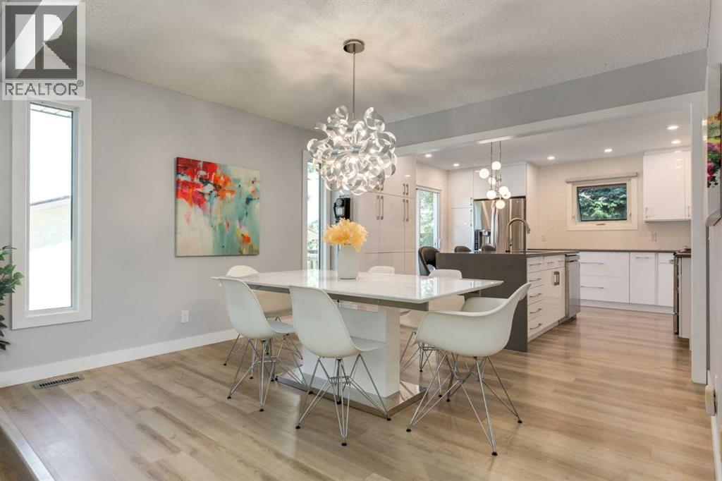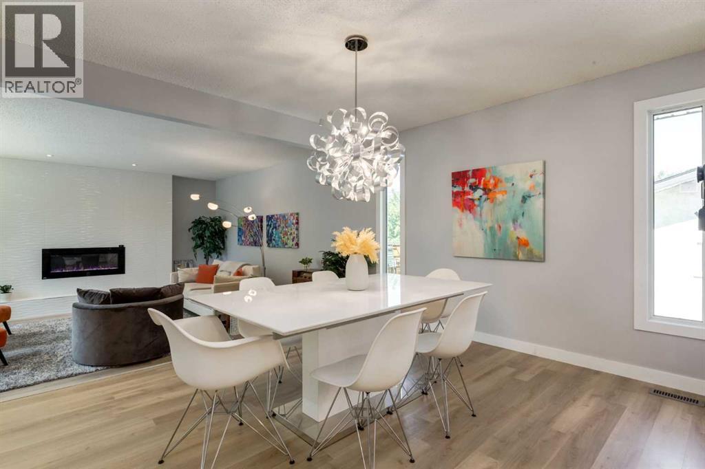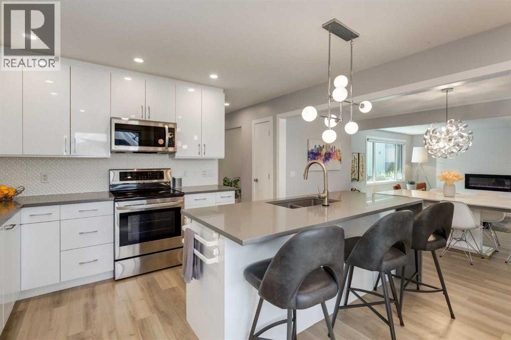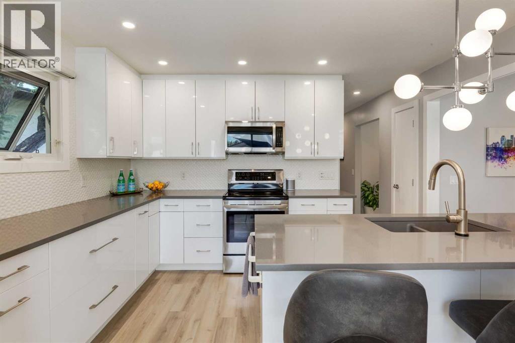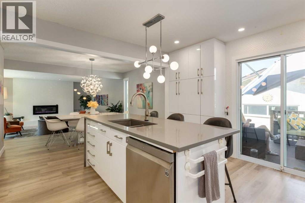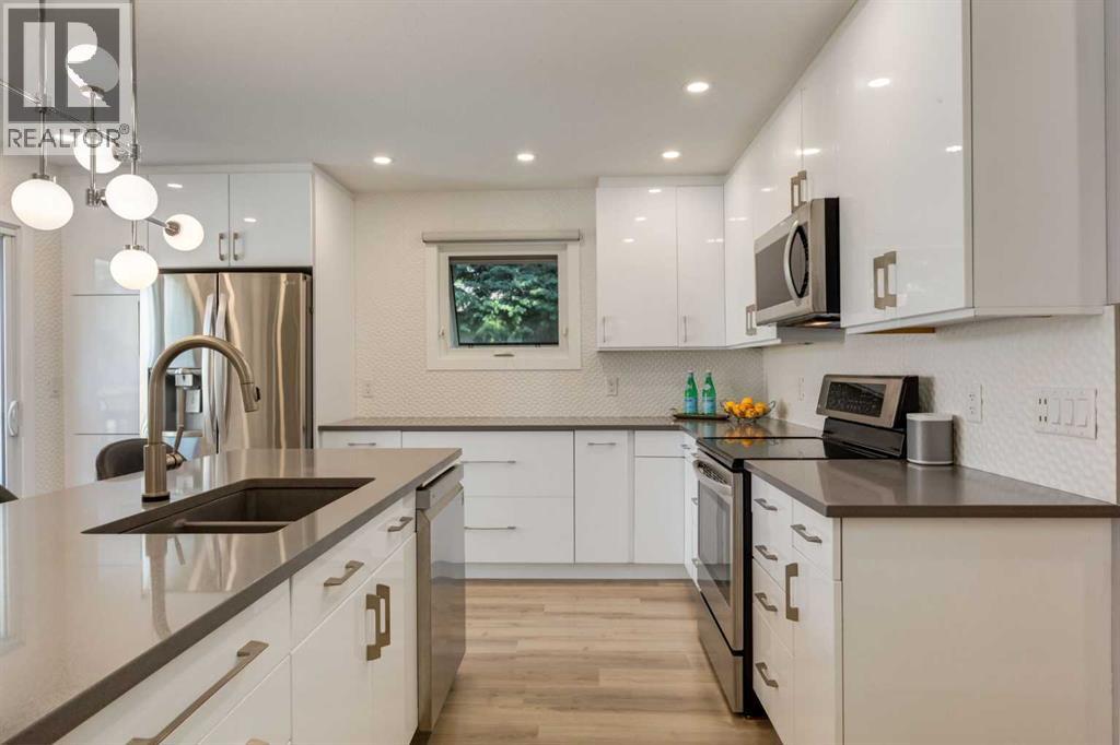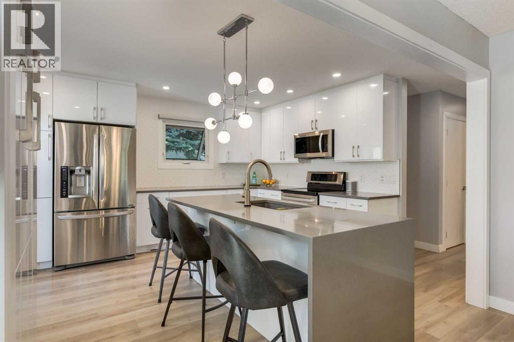 Welcome to this absolutely stunning, renovated bungalow, nestled on a cul-de-sac in the highly sought after community of Silver Springs! Boasting over 2,500 square feet of developed space, this five bedroom, three bathroom home seamlessly blends luxurious modern updates with thoughtful functionality for today’s lifestyle; ideal for larger families! From first glance, the timeless brick exterior and inviting front patio, hint at the elegance found from within. Step inside to a bright, open concept main floor adorned with premium luxury vinyl plank flooring, newer vinyl windows, custom window coverings and upgraded finishes throughout. The heart of the home is the chef inspired kitchen, highlighted by a gorgeous quartz waterfall island, designer tile backsplash, stainless steel appliances, touchless faucet, recessed pot lighting, and an abundance of cabinetry. Adjacent to the kitchen, is an expansive dining and family room; ideal for both everyday living and entertaining. The family room is centered around a sleek, tiled electric fireplace, creating a sophisticated yet cozy ambiance. The primary suite offers a peaceful escape, complete with a walk through closet and an updated 3 piece ensuite. Two additional bedrooms and a stylish 4 piece bathroom complete the main level. Downstairs, a separate side entrance leads to a bright and spacious fully developed basement. Here, you’ll find a sunken media/recreational room with fireplace, two bedrooms with egress windows, a third full bathroom, and a large utility/laundry room with ample storage. Situated on a pie shaped lot, the backyard is a true oasis, complete with an oversized insulated double garage, RV parking, mature trees, lush landscaping, and tranquil garden areas. Walk to local schools, community gardens, playgrounds, and enjoy the nearby community centre with an outdoor public swimming pool. Nature lovers will appreciate the nearby botanical gardens, extensive walking and biking paths, and quick access to Bowmont and Bowness Parks via scenic trails leading right to the Bow River. With Crowfoot shopping centre, LRT access, Stoney Trail, and the mountains just minutes away, this home offers the ultimate combination of serenity and convenience! This is a rare opportunity to own a fully renovated bungalow in one of northwest Calgary’s most established and picturesque neighbourhoods. View the video in the media link and schedule your private showing today! (id:53676)
