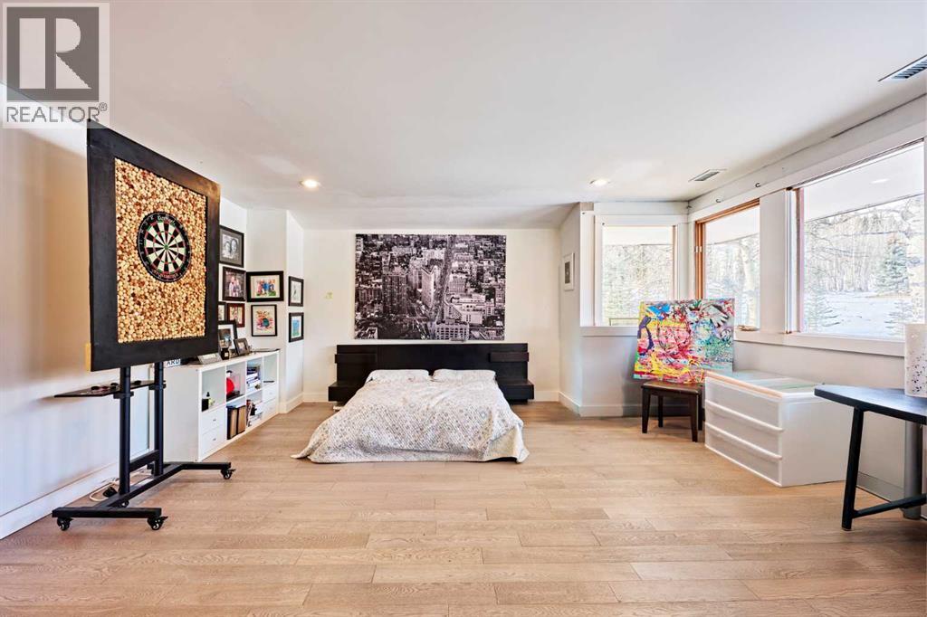 Judicial Sale – Sold “As-Is, Where-Is.” This property has been far more than a house to the family—it was the owner’s heart and soul. Over the years, substantial investment and thoughtful upgrades have been made to enhance both comfort and functionality, including three furnaces, heated basement floor, two hot water tanks and two air-conditioning units, providing year-round comfort.The home consists of six rooms in total, featuring a primary bedroom on the main level, one bedroom and an office on the upper level, three bedrooms with large windows in the walk-out basement. A significant structural improvement introduced contemporary interior stairs connecting the main and upper levels, expanding living and entertaining spaces while enhancing flow and security. The primary ensuite and the upper-level bathroom are currently under renovation.Set on a private 2.03 acre corner lot in a quiet cul-de-sac, the property is surrounded by mature trees and a serene natural setting. Inspired by Frank Lloyd Wright, this prairie-style walk-out bungalow encompasses approximately 3,733 sq.ft. of developed living space, with views from every room.Imagine waking up to quiet mornings and open skies, where rural charm meets modern convenience. This beautiful piece of land offers peaceful country living just minutes from Bragg Creek’s town centre, with effortless access to Kananaskis Country, outdoor recreation, and the stunning Rocky Mountains. (id:53676)