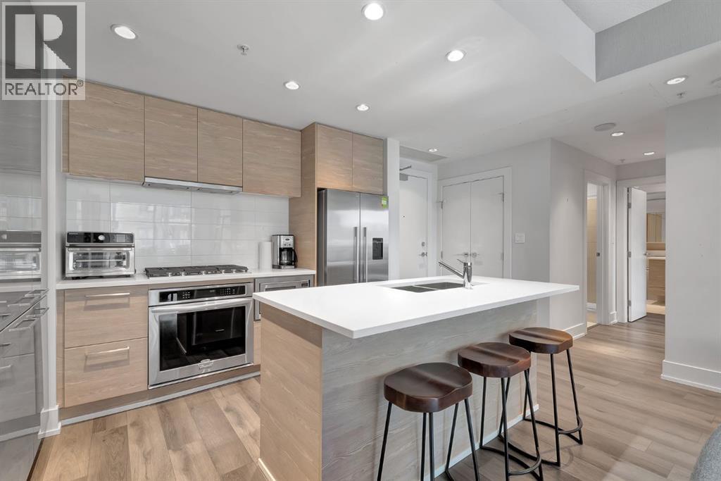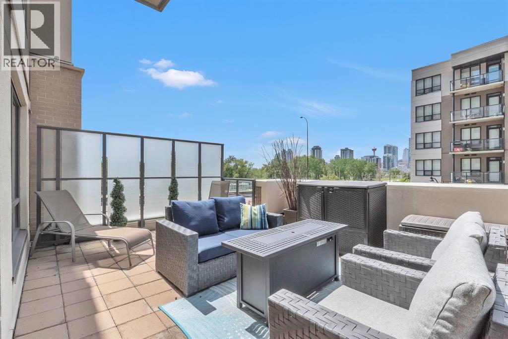 This 2 bedroom, 2 bathroom, partially-furnished condo in the heart of Bridgeland with 2 highly coveted SIDE-BY-SIDE TITLED PARKING STALLS and an EXPANSIVE OUTDOOR PATIO with STUNNING DOWNTOWN VIEWS is just steps from parks, green spaces, shops and restaurants, transit and the Bow River Pathway!!! Offering a turnkey lifestyle with prime outdoor patio space and the all the conveniences of the inner city nearby, this modern 2 bedroom unit is move-in ready. Featuring stone counters, a kitchen island with room for seating, stainless steel appliances, ample cupboard space, in-unit laundry, built-in storage, stunning west-facing views and access to the building's fitness room and owner's lounge as well as the theatre room and serene outdoor courtyard, this building is highly desirable, professionally managed and ideally located. Enjoy all that the inner city has to offer without sacrificing outdoor space to relax or entertain and soak in the hot summer sun! With prime patio space like this, gorgeous downtown views and 2 side-by-side titled parking stalls, this unit is a rare find!! (id:53676)