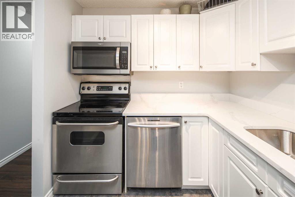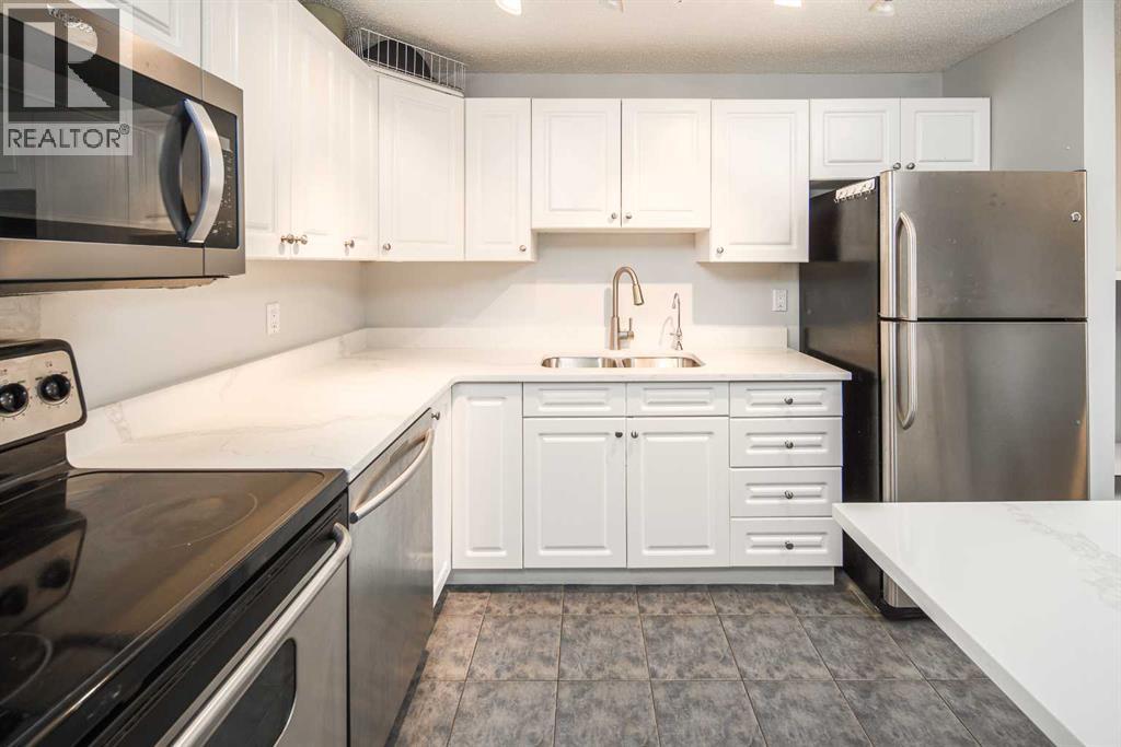 Nestled in the vibrant community of Cliff Bungalow, this spacious 2-bedroom corner unit is just steps away from all the amenities you could wish for. Downtown's west end and commercial core are only a few blocks north, and you're just one block from the diverse restaurants and entertainment venues of 17th Avenue. Additionally, it's a mere 300-meters walking distance to Western Canada High School, one of the top high schools in Alberta. Upon entering, you'll be impressed by the modern, open-concept floor plan, which soaks in natural light. The gourmet kitchen will inspire any chef, featuring stainless steel appliances, quartz countertops, stylish lighting fixtures throughout, a raised breakfast bar, and white cabinets that provide ample space. The primary bedroom boasts an updated walk-in closet with cheater access to the 4-piece bathroom. The second bedroom is generously sized, featuring a French door and plenty of space for various uses. This location offers convenient access to everything you need for daily living and leisure activities. Don't miss out on the opportunity to make this stunning home your own—schedule a viewing today! (id:53676)