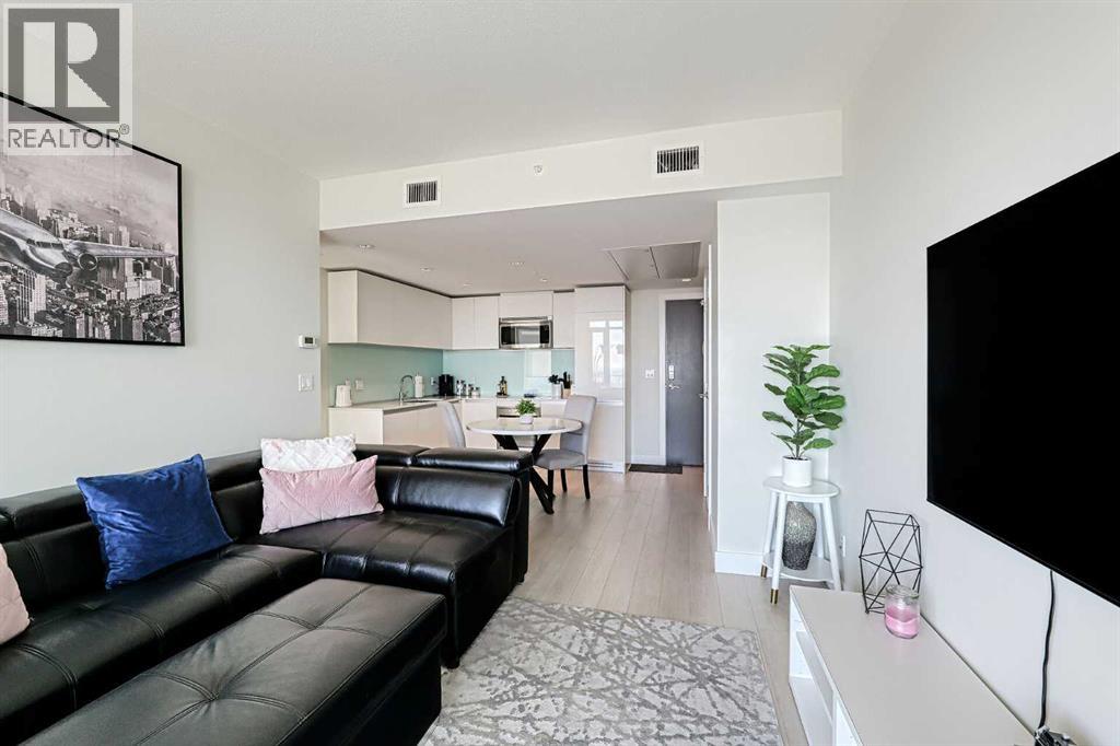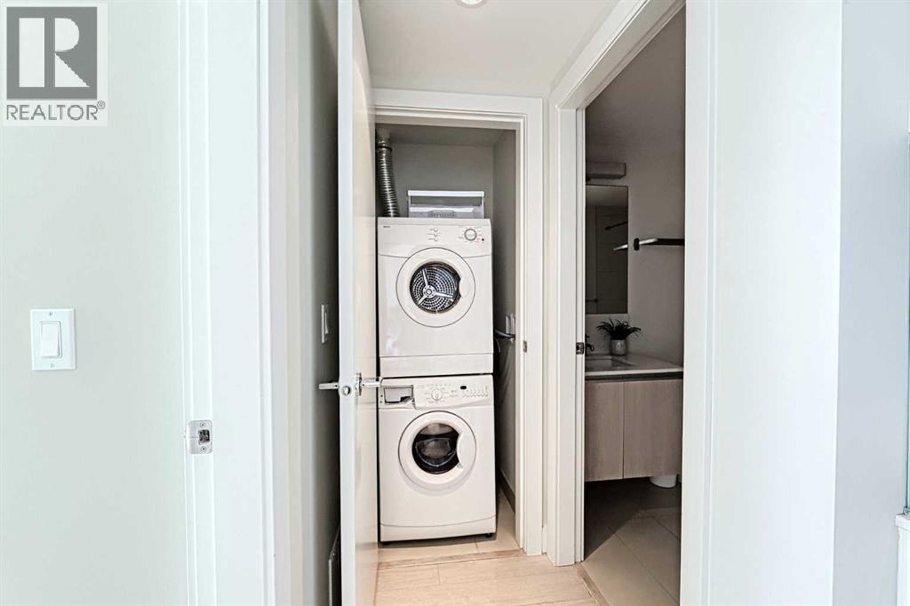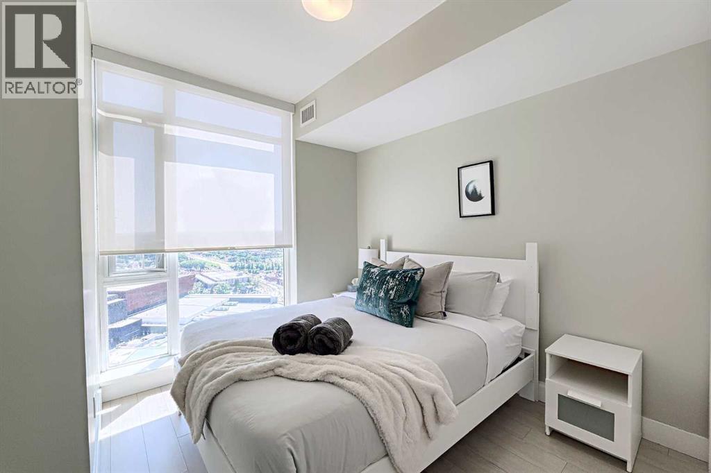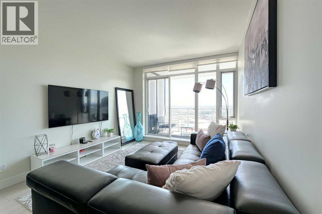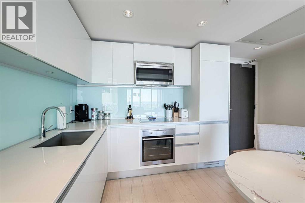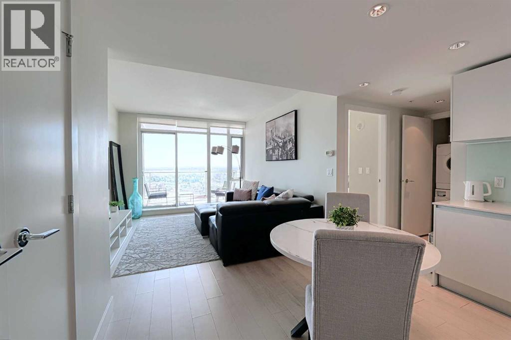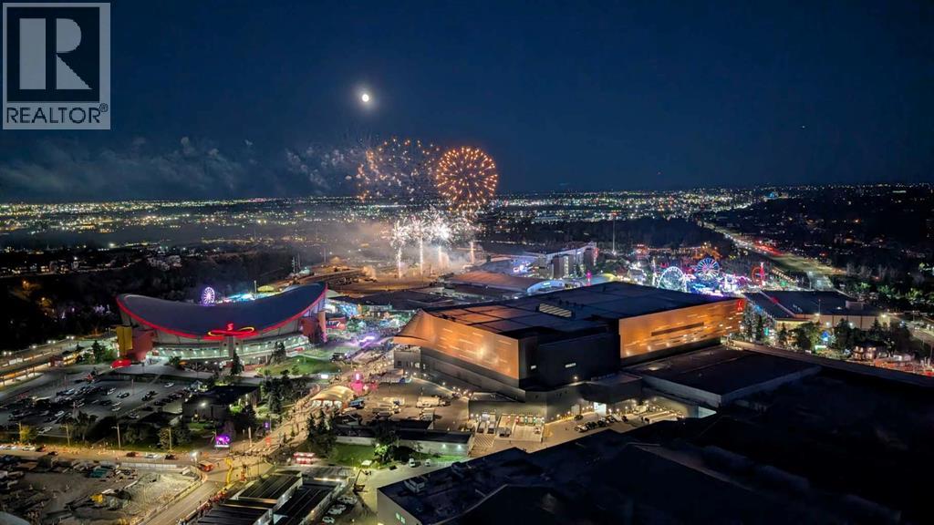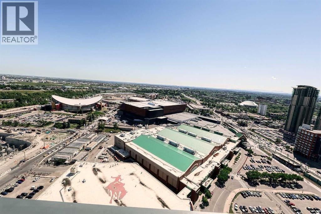 Contemporary urban living at The Guardian, where elegance meets convenience. Situated on the 31st floor, this 1 bedrooms unit offers unobstructed views of the city and BMO Centre where you will enjoy the stampede fireworks from your balcony! This concrete building is a 44 story architectural masterpiece featuring modern, chic finishes with an array of amenities including security, reception services, a heated parkade, fitness haven, and a resident's lounge. You will love the bright and airy tones of this unit, quartz countertops, insuite laundry and floor to ceiling windows allowing in an abundance of natural light. Everything you need within walking distance....a great opportunity for first time buyers or investors! (id:53676)
