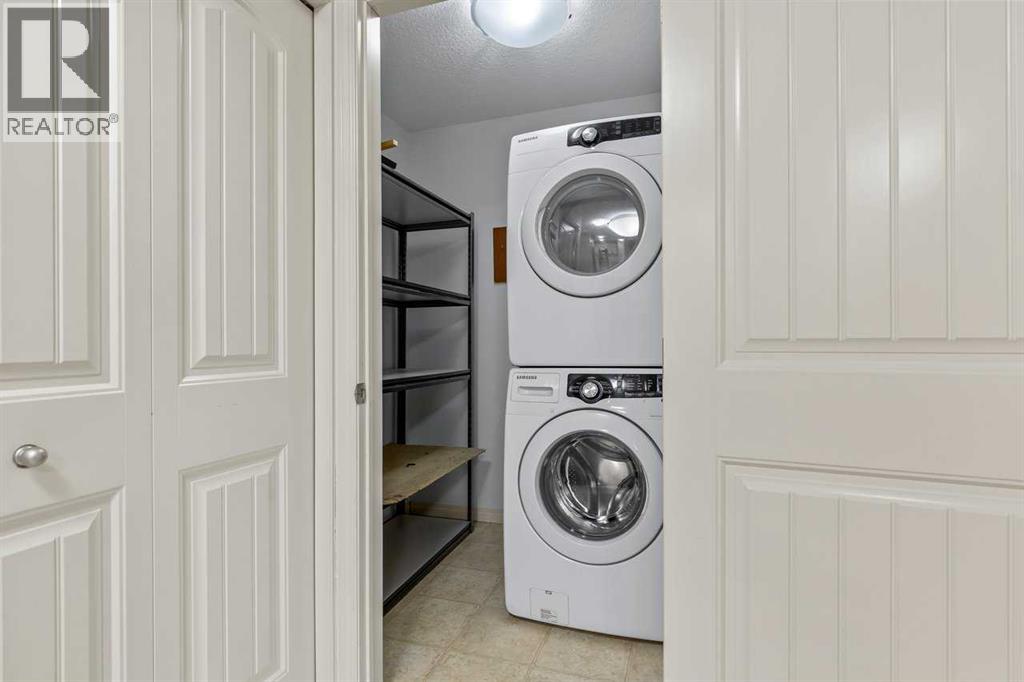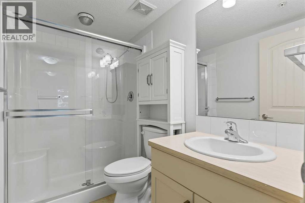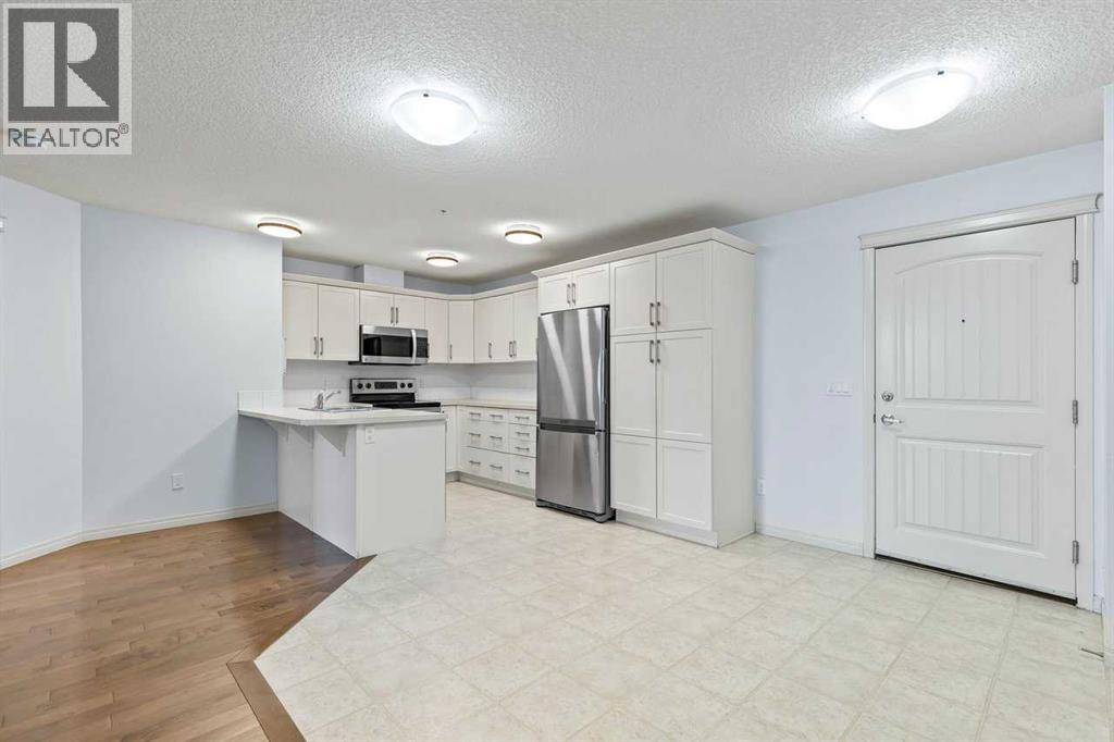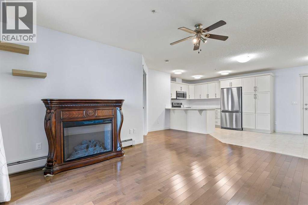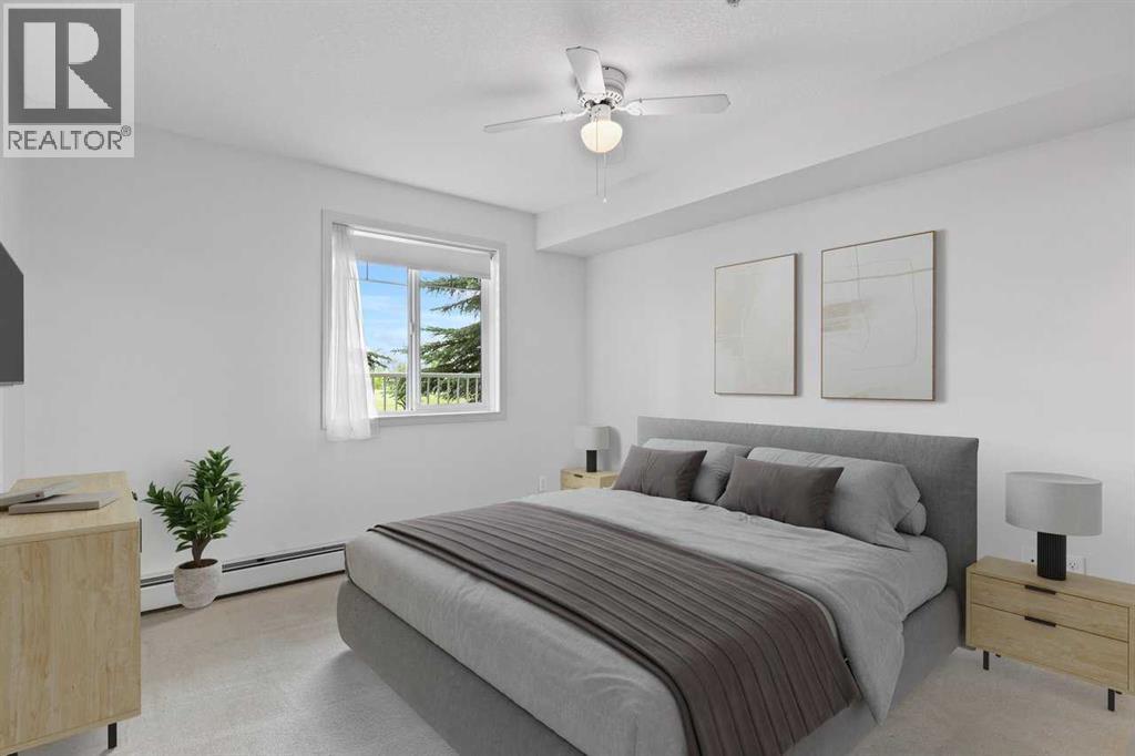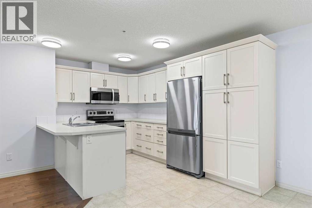 Welcome to this well maintained main-floor condo in the heart of McKenzie Towne! This spacious 2-bedroom, 2-bathroom unit offers the perfect combination of style, comfort, and convenience. Step inside to an open and airy layout with a wide entryway leading into a modern white kitchen, complete with stainless steel appliances, upgraded pantry, and a breakfast bar—ideal for both cooking and entertaining. Just off the kitchen, you'll find a large dining area and a dedicated work-from-home space for added versatility. The bright and inviting living room features well-maintained hardwood floors and opens onto a sunny west-facing deck that spans the width of the unit, offering beautiful views of green space and a gas BBQ hookup—perfect for summer evenings. The air-conditioned unit offers excellent privacy with bedrooms on opposite sides of the living space. The primary suite features a walk-in closet and a 3-piece ensuite, while the second bedroom is steps from a full 4-piece bathroom. A separate laundry room with washer and dryer adds to the practicality of the home. Additional features include titled underground parking, assigned storage locker, pet-friendly building (with board approval). Located just minutes from the shops and restaurants of 130th Avenue, schools, parks, and transit—this home truly has it all. Quick possession available. Don’t miss your chance to make this exceptional home yours! (id:53676)