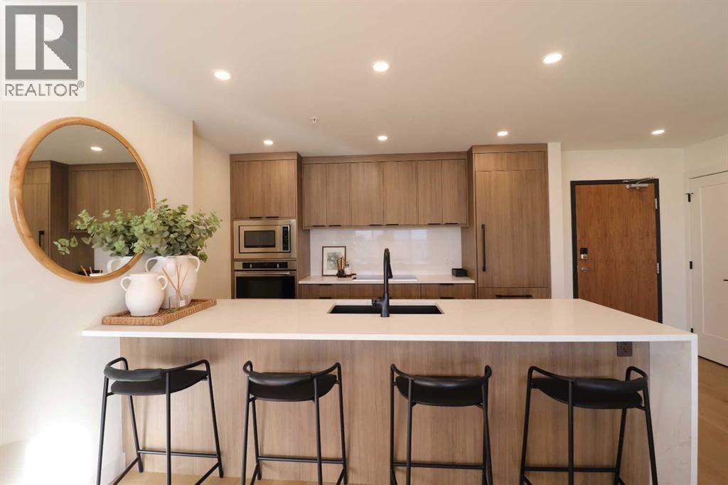 A rare opportunity to own The Breuer floor plan complete with exceptional views and extensive updates has now become available. This highly coveted corner unit is complimented by one of the nicest River Valley vantage points available from the 102 Scenic Drive complex. The wrap-around balcony offers 369 sq ft of outdoor living space and offers 3 sliding patio door access points. Combining this with large windows and an open floor plan, your views can be enjoyed from inside and out. The design of this 2-bedroom, 2-bathroom unit offers an abundance of functionality and comfort. The seamless connection of the kitchen, dining space and living room make hosting guests a breeze as well. Additional interior features include elevated ceilings, quartz counter tops, Fulgor Milano built-in appliances including a convenient induction cooktop stove, convection oven, refrigerator with water and ice features, and a microwave oven. Notable upgrades include a 50” electric fireplace, lighting and plumbing fixtures, quartz countertops, Onyx kitchen sink, walk-in coffee station/pantry and laundry room cabinets, computer station worktop and drawers, custom closet organizer systems throughout, as well as motorized blinds in the bedrooms and living room. Secured underground parking provides you with 2 parking stalls and a storage unit as well. The amenities within the building are truly exceptional and offer something for everyone. Courtyard and interior lounge areas, fully equipped conference room, sunroom/garden area, workshop, car club lounge and showroom, car wash bay, and a large courtyard with covered fireplace/conversation area. Pets are allowed but please verify certain restrictions. For added convenience, condominium fees include electricity, heat, water, sewer, garbage collection, and Professional management. (id:53676)