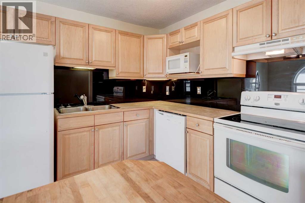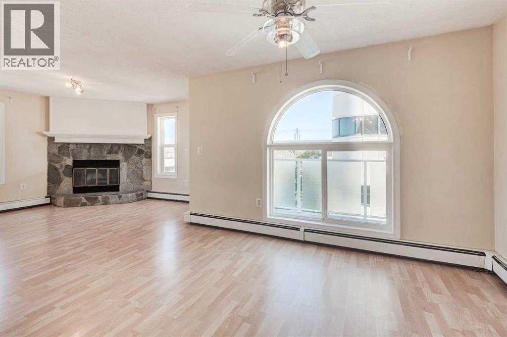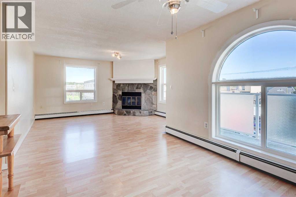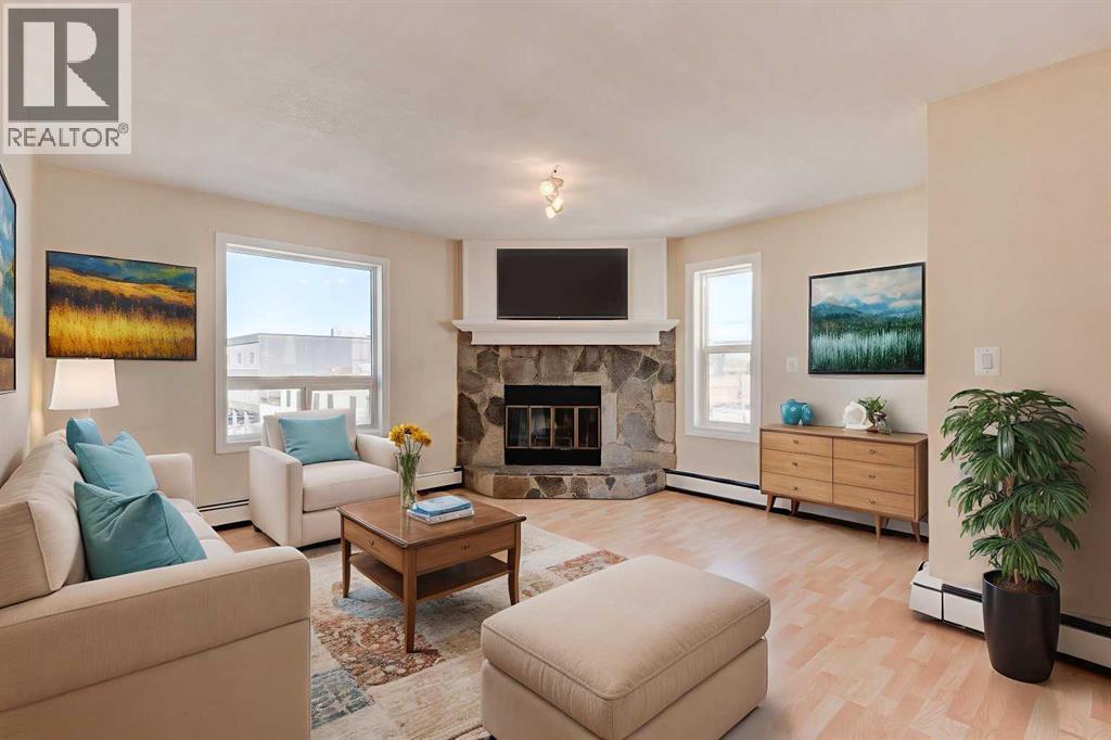 Welcome to this fantastic top-floor corner unit in the heart of Sunalta! Offering 2 spacious bedrooms & a bright, open layout, this home is ideal for entertaining or enjoying the best of inner-city living. The island kitchen provides plenty of counter space, an updated backsplash, & excellent storage, while the generous living room is anchored by a charming corner wood-burning fireplace & access to an oversized balcony with downtown views—perfect for relaxing or hosting guests. The adjoining dining area easily accommodates dinner parties or casual meals with friends & family. Two well-proportioned bedrooms, in-suite laundry, & a full bathroom add to the comfort & functionality. This unit also includes the convenience of heated underground parking. Updates include: new washer, dryer & dishwasher, new bathroom flooring (subfloor & tile), new windows & Poly B removed from building. All of this in a prime walkable location—steps to the LRT, shops, cafés, & even an easy stroll to work downtown! Welcome home! (id:53676)