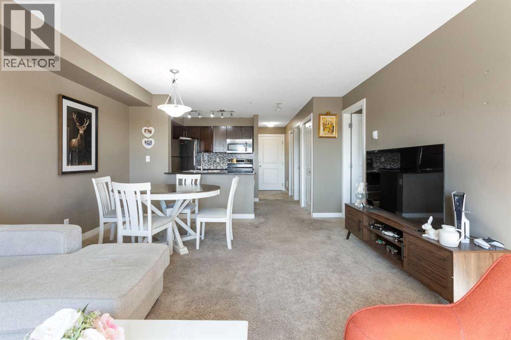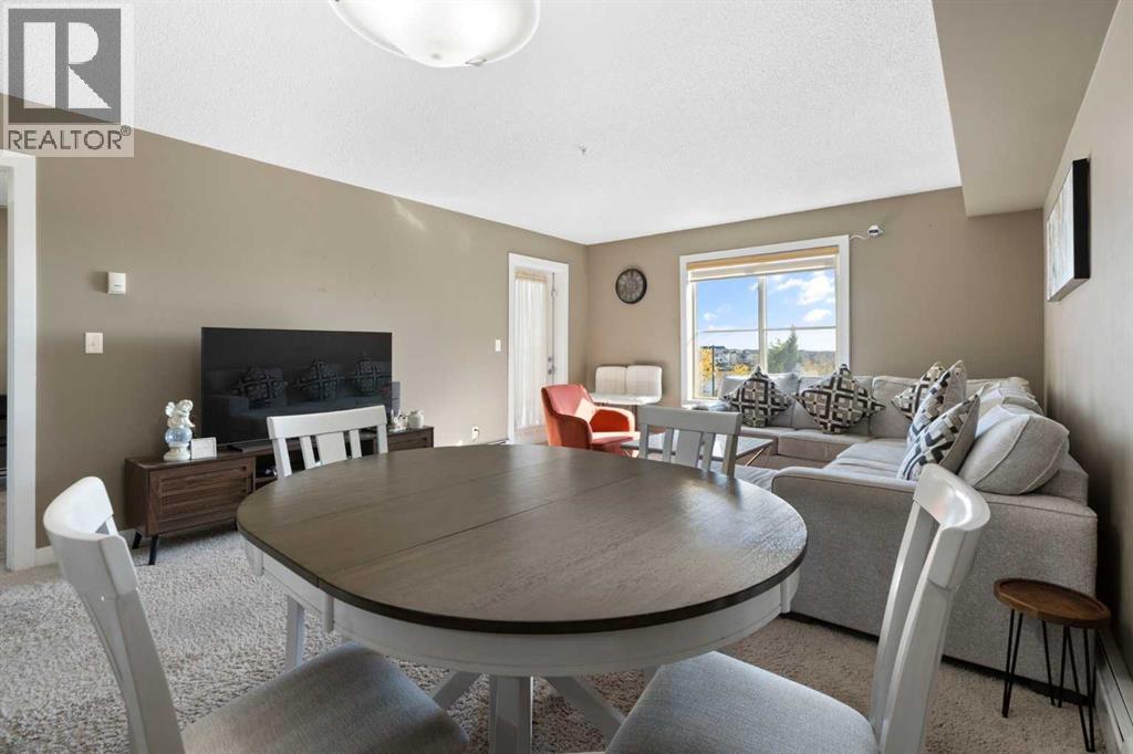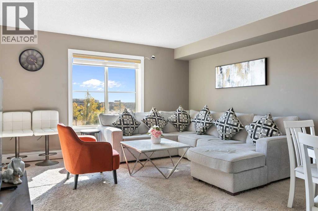 Welcome to this beautifully maintained condo in the vibrant Saddle Ridge community!This thoughtfully designed 1-bedroom + den unit offers a flexible layout with a den spacious enough for a second bedroom, plus in-suite laundry for everyday convenience.The open-concept kitchen features sleek quartz countertops and modern stainless steel appliances, opening seamlessly into a bright living area. Step outside to your sunny balcony and enjoy peaceful views over Taralake Park, the pond, and lush greenery — your private retreat for morning coffee or evening relaxation.Move-in ready with added value: The sale includes a nearly new (1-year-old) sectional couch, dining table, bed with mattress, and TV console — this condo comes fully furnished and renter-ready!Ideally located steps from shopping centres, grocery stores, the Genesis Centre, LRT, and transit, everything you need is right at your doorstep. Low condo fees include heat and water, keeping costs predictable and affordable.Whether you're a first-time buyer, downsizer, or savvy investor, this unit delivers comfort, convenience, and strong income potential at a price cheaper than renting.Don't miss out — contact your favourite REALTOR® today to schedule a viewing! (id:53676)