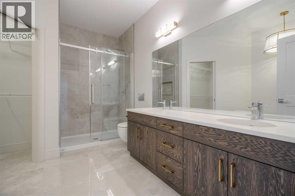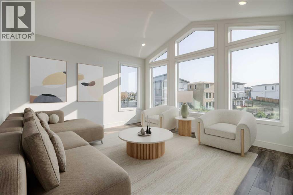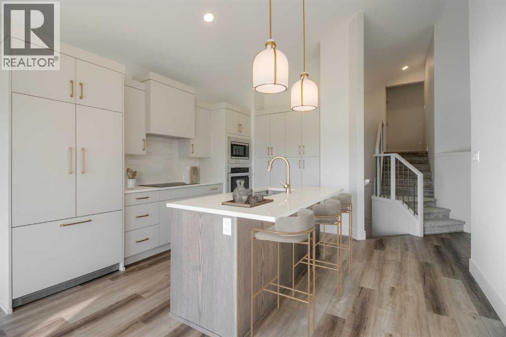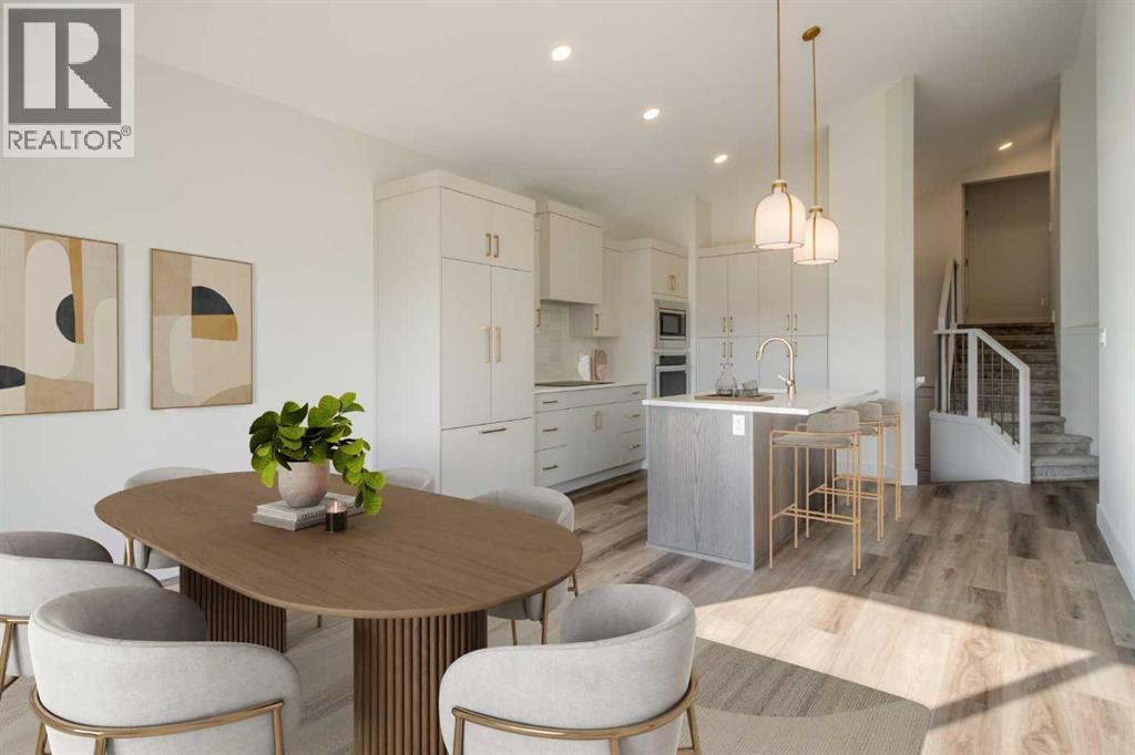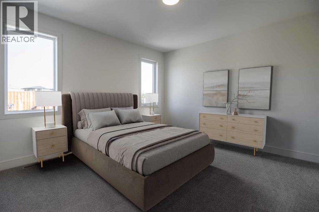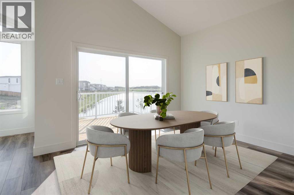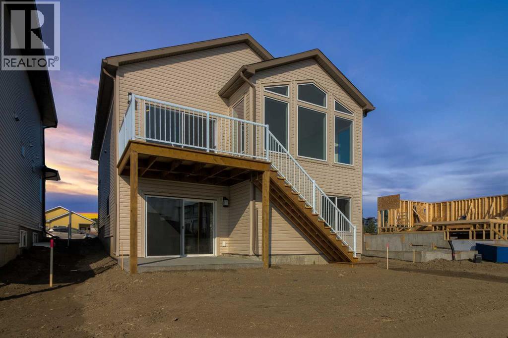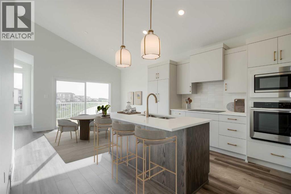 Welcome to the “Hemsdale IV” by Stranville Living Master Builder, located in the desirable Lethbridge community of Southbrook. This new home is situated merely a few hundred meters from the new Dr. Robert Plaxton K-5 public elementary school, whose property includes a new playground, soccer pitch, baseball diamond, and even a basketball court for today's active family. Southbrook is conveniently located minutes away from big box shopping, various restaurants, and the VisitLethbridge.com arena and event center. This popular bi-level model continues to prove why it is a best seller for Stranville Living and this version is no exception. With a rear elevation of gorgeous windows overlooking the Southbrook nature pond and walkout basement with a sliding patio door, the outdoors and indoors seem to merge into one. Tall vaulted ceilings carry through the entry into the kitchen and dining areas and land you right into the tremendous living room of cascading light. The kitchen is equipped with Stranville Living's top-tier appliance package, including a seamlessly integrated Fisher & Paykel fridge, paneled dishwasher, induction cooktop, built-in hood fan, and a stainless steel wall oven and microwave combo unit. This version of the Hemsdale houses the primary bedroom on the main floor and is blessed with an ample ensuite that includes dual sinks in a massive vanity of beautiful stained oak, a substantial tiled shower, a freestanding soaker tub, and a large walk-in closet. Two more bedrooms are found up over the garage, providing the right amount of seclusion from the main floor activities. If needed, there is another 811 square feet awaiting development in the basement, adding two more bedrooms, full 3-piece bathroom, and a significant family room. High-efficient mechanical equipment, Low E windows, and spray foam in the rim joists help keep your heating and cooling costs in check. Must be seen to be appreciated! Photos contain virtual staging. There's nothing like NE W! (id:53676)