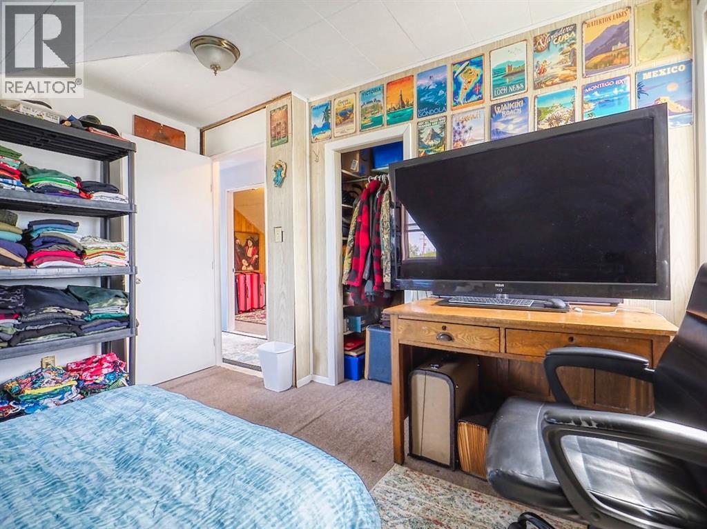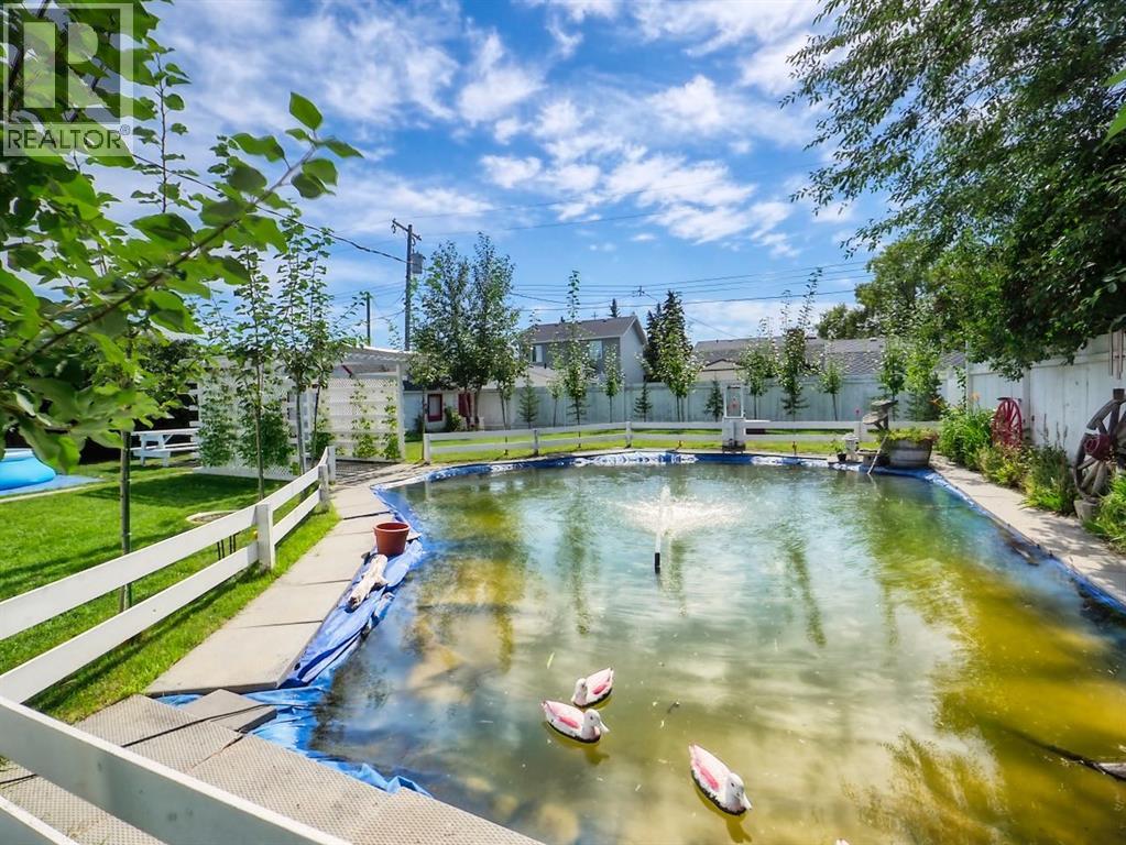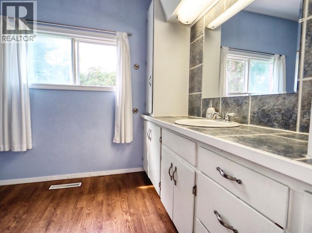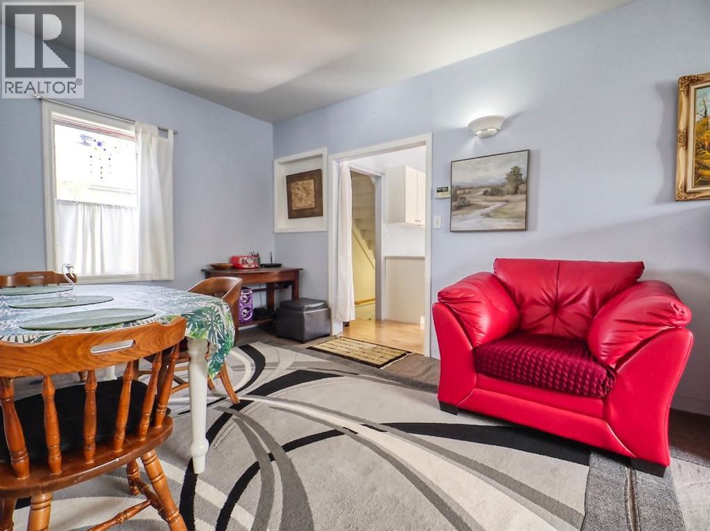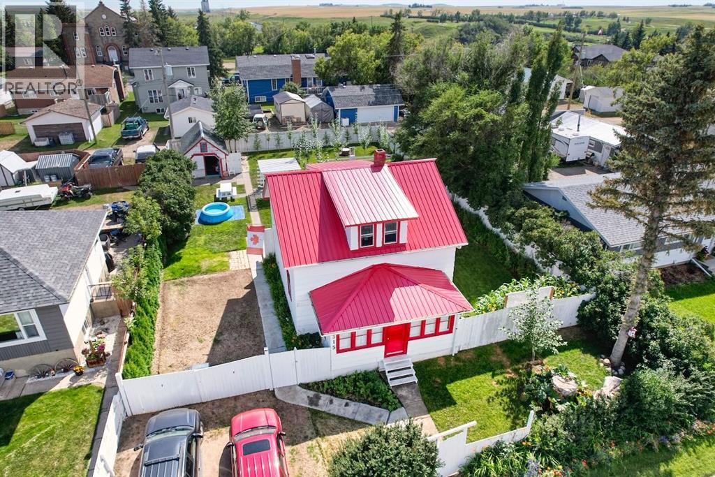 Don't miss checking out this one and a half story home in Trochu. The yard is literally your own oasis with flowers, garden, trees and a pond. This is a bright home with lots of natural light, Kitchen, dining area, living room and bathroom comprise the main floor, the bedrooms are upstairs. Out back is a shed / garage to use as a workshop or storage, would fit a smaller vehicle. (id:53676)