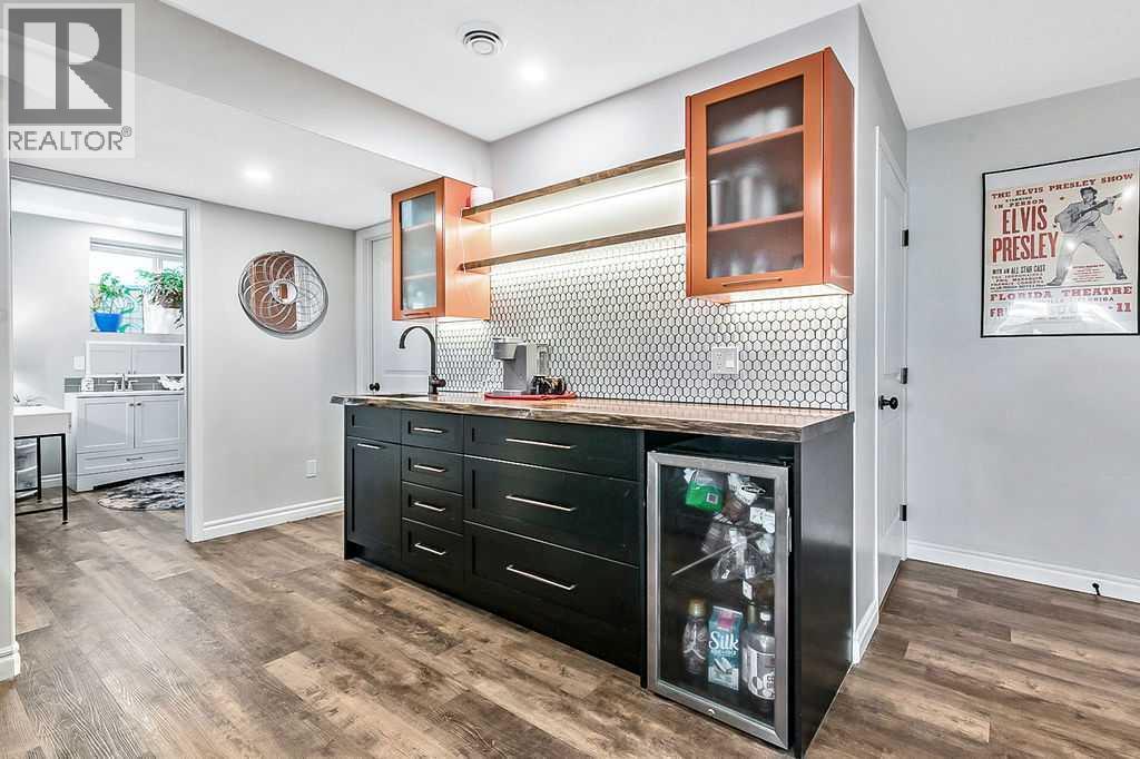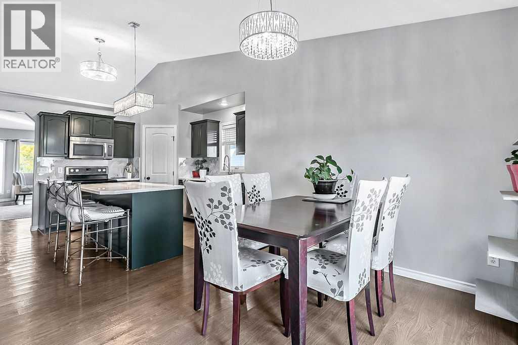 This gorgeous, FULLY DEVELOPED WALKOUT BUNGALOW sits on an expansive raised lot in a quiet location, offering PEACEFUL VIEWS of rolling hills and a treed farmer’s field. Built by the highly respected Woodmaster Homes, the property now features a newly completed walkout level developed by the builder, thoughtfully designed for comfort and versatility. The home welcomes you with a charming FRONT WOOD DECK, privately nestled and perfect for enjoying the tranquil natural setting across the street. Inside, you’ll find a spacious OPEN-CONCEPT living room with soaring VAULTED CEILINGS and LARGE WINDOWS that flood the space with natural light. The kitchen is a true highlight! Complete with STAINLESS-STEEL APPLIANCES, professional EPOXY COUNTERTOPS and BACKSPLASH, ISLAND SEATING, a CORNER PANTRY, and abundant NATURAL LIGHT. Adjacent, the dining area opens to a full UPPER DECK, ideal for outdoor entertaining. This home offers five spacious bedrooms and three full bathrooms. The master suite includes a WALK-IN CLOSET, PRIVATE ENSUITE, and enough room for a king-sized bed and dressers. Step out from the master bedroom onto a PRIVATE BALCONY, covered by a gazebo - your own serene retreat. Two additional bedrooms on the main level share a well-appointed 4pc bathroom. A convenient MAIN FLOOR LAUNDRY area adds to the home's functionality. The NEWLY FINISHED WALKOUT LEVEL is impressive, featuring two large bedrooms, each with WALK-IN CLOSETS, and a stylish 4pc bathroom with a DOUBLE VANITY. The family room is the heart of this level, showcasing a stunning WET BAR with a LIVE-EDGE WOOD COUNTERTOP, OPEN SHELVING, SOFT-CLOSE CABINETRY and a BAR FRIDGE - perfect for entertaining. Step out to the LOWER WOOD PATIO, built with 4x6 joists and screw piles, ready to support a hot tub (wiring already in place). Current owner pulled permits for a legal basement suite which would offer great flexibility. The furnace has dual temperature zones (main and lower level) for added comfort and efficien cy. A newly constructed wood stairway along the side of the home provides easy access to the front yard. The property also includes a DOUBLE ATTACHED GARAGE and an EXTENDED DRIVEWAY, ideal for EXTRA PARKING. With LOW-MAINTENANCE LANDSCAPING, this home is perfect for both large families and empty nesters seeking move-in-ready convenience. Every detail has been completed - simply move in and enjoy the lifestyle! (id:53676)