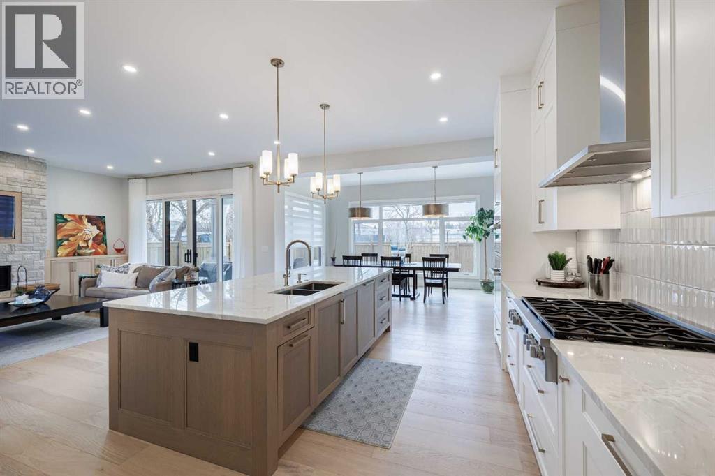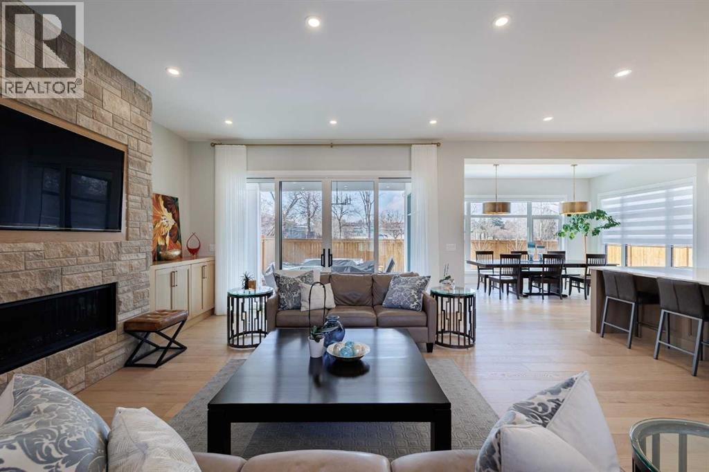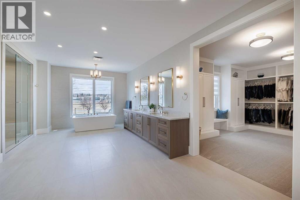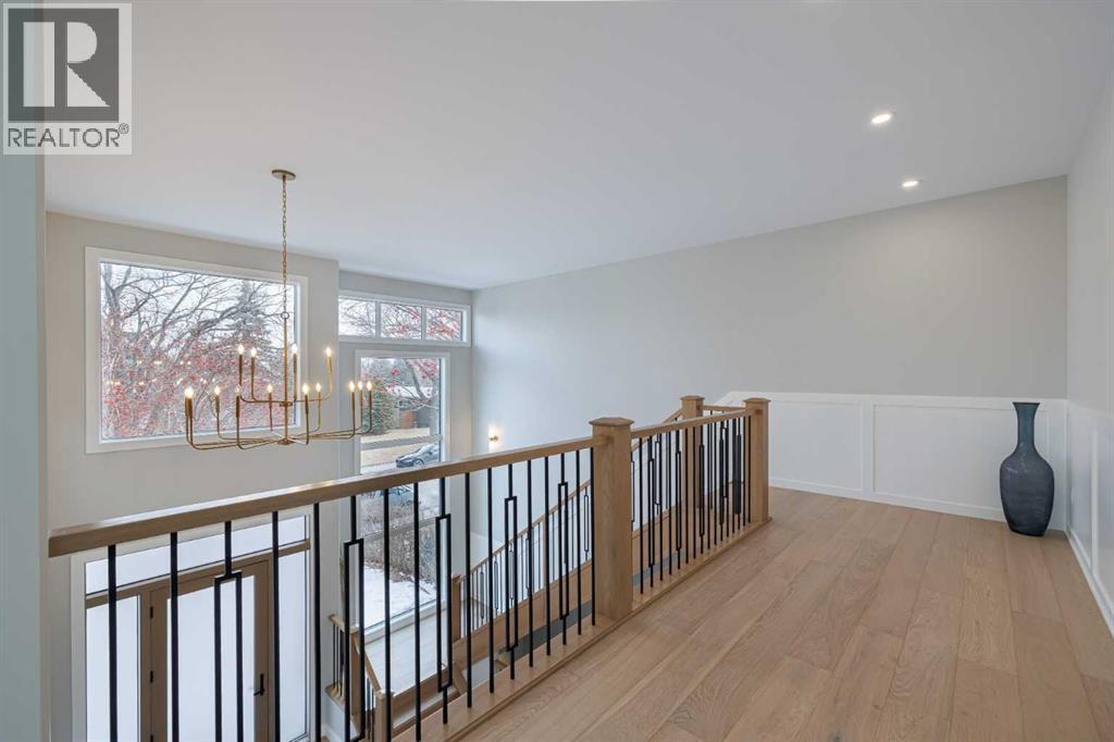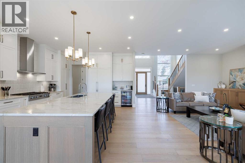 Welcome to the finest of Wildwood! This Custom-Built Masterpiece was meticulously designed & is an exemplary testament to fine luxury homes. This two-storey 4 bedroom and 4.5-bathroom home is ideal for a large family seeking the ultimate dream home to live & entertain. There are no neighbours behind as this home backs onto a children’s park. As you enter this home, you will be welcomed by a grand open foyer with elevated ceilings, warm earth tone colours, and great Lux windows offering an abundance of natural light. The open concept main floor offers an impressive white oak staircase, white oak wide plank hardwood floors, front home office, large living & dining area, roomy mud room, and pantry. The custom-built floor to ceiling kitchen highlights beautiful premium granite countertops, an expansive 10’ long island, champagne bronze fixtures, and Miele appliances that include a built-in panelled fridge/freezer, natural gas range, range hood, built-in wall convection oven, and speed oven/microwave. The spacious living room has elegant wall-to-wall built-ins & a gas fireplace. The long stretch of windows & patio doors along the back wall floods the main floor with natural light. The living area is adjacent to a sheltered deck through the patio doors that lead out to a beautifully landscaped backyard with firepit area. Upstairs you will find a stunning Primary Bedroom with 12 ft soaring ceilings, oversized windows, oversized custom-built walk-in closet & a spa-inspired 6-piece ensuite. The luxurious ensuite offers 24 x 48 Italian tile finishes, in-floor heating, a freestanding soaking tub, an oversized stand-up shower with rain head & body sprays. The two additional bedrooms upstairs offer generous spaces with each having a custom-built walk-in closet and 3-piece ensuites. Completing the upper floor is an oversized laundry room offering a sink & ample storage. The carpeted fully finished basement offers additional living space with one additional bedroom, 9’ clear ceili ngs, a 3-pc bathroom with stand-up shower, a gym with durable gym flooring & mirrored walls, a wet bar with 36” fridge, hydronic in-floor heating & a large entertainment media room with an acoustic panel wall with built-ins and rough-in for sound surround. The outdoor areas have been thoughtfully landscaped with perennial plants, an irrigation system, and front & rear brush finished concrete patios. The backyard features a covered concrete deck & separate deck with natural gas BBQ hookup. The oversized, drywalled, insulated, & spray foamed double attached tandem garage offers hydronic in-floor heating, hot & cold-water taps, and tall ceilings. The mechanical room features a boiler system for in-floor heating and domestic hot water, 2 Carrier high-efficiency heat furnaces, & an HRV system. This home is close to Wildwood Community Association, Wildwood Elementary, Edworthy Park, Shaganappi Point Golf Course, minutes to DT Calgary, & steps from the Bow River Valley. Do not miss out & book your showing today! (id:53676)