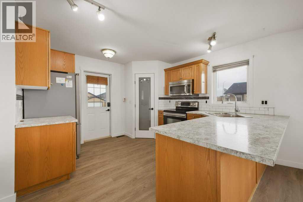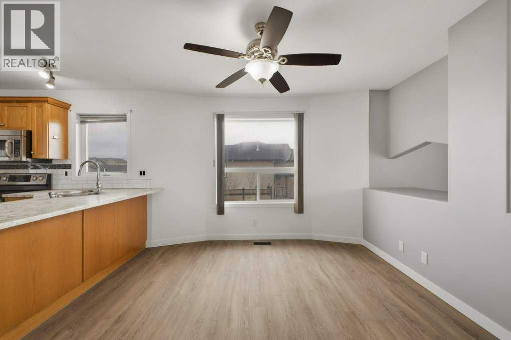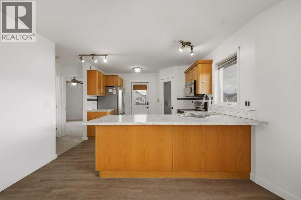 Welcome to #32 Hunter Road, Sylvan Lake! A 4-bedroom, 2-bathroom bi-level with many recent updates, and designed for comfort, style, and functionality. Nestled in a family-friendly neighborhood, this fully developed gem boasts an array of modern touches that are sure to impress. The main floor living room boasts vaulted ceilings and an open floor plan to the kitchen and dining room, all with new vinyl plank flooring - adding a touch of elegance and making it easy to maintain. Beside the kitchen is the primary bedroom with access to the main floor 4pc bathroom, the 2nd bedroom, and just off the kitchen (with newly finished counter tops) is access out to the the covered rear deck and yard! Venture downstairs to discover a cozy finished basement featuring plush new carpeting that adds warmth and charm. This versatile space can easily serve as a family room, play area, or home gym—whatever suits your lifestyle! It also features a dry-bar area, adding to the entertaining space! 2 more bedrooms, another 4 piece bathroom, and the utility/laundry room complete the lower level. Additional updates include: New shingles, some newer windows, fresh paint throughout, new tile surround and flooring in bathroom, and a privacy fence built in the yard!Out back features a covered rear deck with steps down to the yard with rear lane access, RV parking, and a large shed for yard tools and bikes! There is also no neighbors directly behind, which adds to the properties privacy. Don't miss out on the opportunity to make this fantastic property your new home! (id:53676)