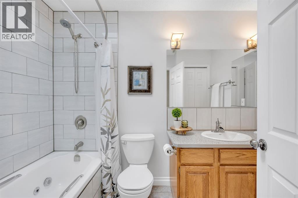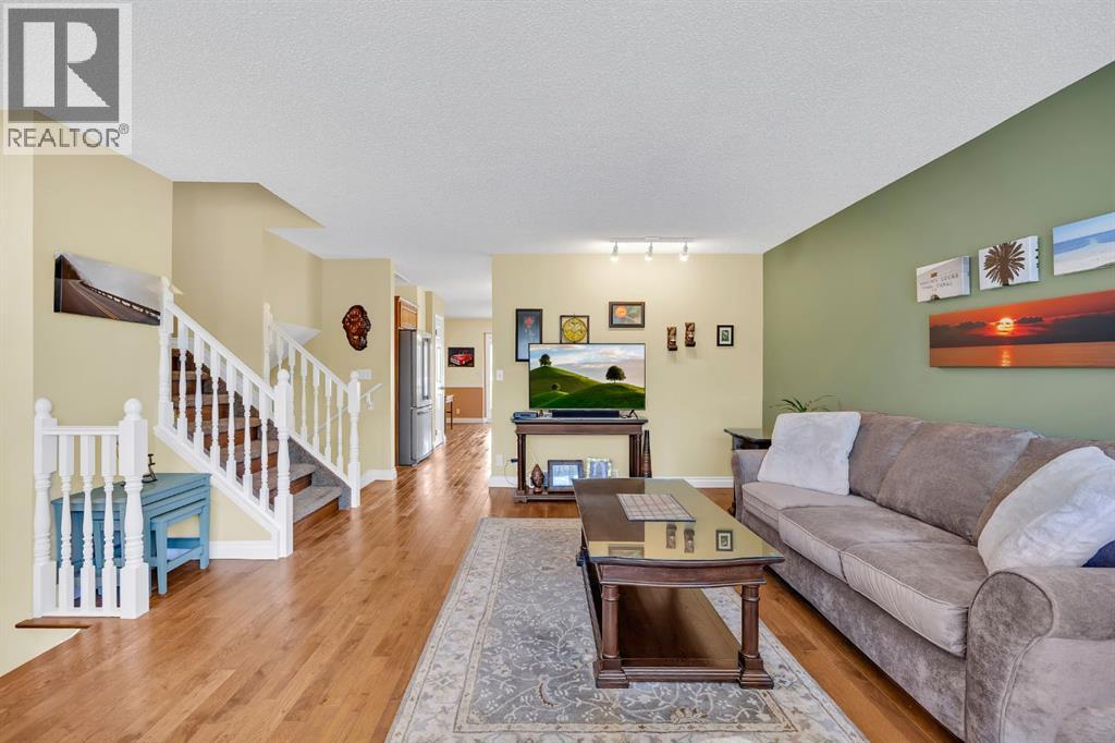Pride of ownership resonates throughout this ORIGINAL OWNER occupied home in the COVETED community of RIDGEGATE. BACKING onto NOSE CREEK PARK, this absolutely stunning 4 level split will immediately capture your attention with its breathtaking front curb appeal. The Canexel composite siding is bold, beautiful & ready for Alberta's changing weather conditions. The accent brick offers a sophisticated focal point to the home while the RUBBER drive pad is not only beautiful but offers a child friendly buffer for those day to day spills. An immaculately manicured front lawn with shrubs & foliage is the icing on the cake. You will be amazed by the space in this well loved 4 level split. This home offers over 2600 sq ft of total developed living space with a total of 4 bedrooms above grade. Sunshine floods through the large front bay & rear windows. A substantial sized living room provides ample options for furniture placement. Beautiful hardwood floors will usher you to a LARGE bright kitchen with ample counter space, cabinets & pantry. Updated appliances, countertops, sink & fixtures. The kitchen is open to a spacious dining area which lends plenty of space for that treasured hutch. The rear door off the dining room leads to your large low maintenance deck & fully fenced back yard. Stunning mature trees, shrubs & flowers offer a balance of beauty & privacy in this meticulously maintained OASIS. An enormous amount of outside storage under the deck, corner shed & garden enclosure. Back inside the house you will note a large master with 3 pc ensuite. An exceptional sized 2nd bed, comfortable sized 3rd bed & updated 4 pc main bath with jetted tub & skylight. The third level WALK OUT is ideal for someone with a home based business & is host to the 4th bed, a large family room with stone faced gas FP, 2 pc bath & washer & dryer. The basement offers a generous sized family room, Study/Den/Wine Cellar, 3 pc bath, & Storage room. The 2 lower level rooms could be converted to beds to suit the needs of a large family. Additional storage adjacent the utility room. The single oversized attached garage is fully insulated, drywalled & includes a plug in heater. Additional features of this home include all newer windows & doors on the top 3 levels. Triple pain windows on the main rear of the home & built in blinds on the back door. Garburator. Water softener. Vacu Flo & attachments. Phantom screen at front door. A/C & underground sprinklers in the backyard. This GEM is located in the heart of RIDGEGATE. Surrounded by the tranquil beauty of NOSE CREEK PARK which is host to various community events such as the Airdrie car show & Christmas light celebration. Enjoy the Canada Day Parade from your rear deck. Nose Creek Park is home to Airdrie's largest playground, fishing ponds, pickle ball courts & various trails. Walking distance to the new public library, grocery store, gym & other amenities. Nearby schools & quick access to the highway. (id:53676)
