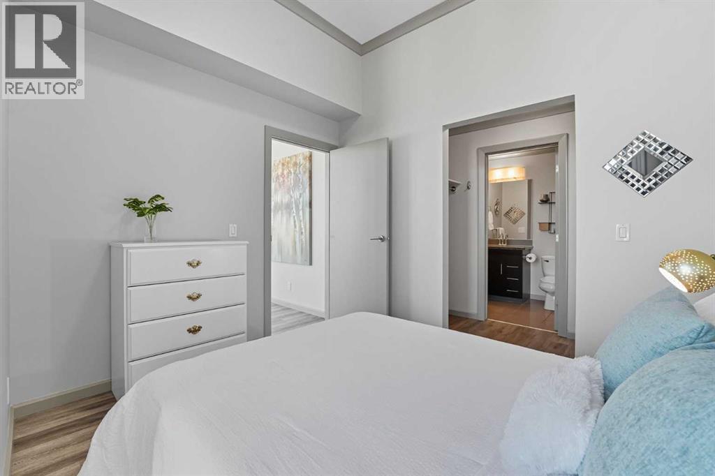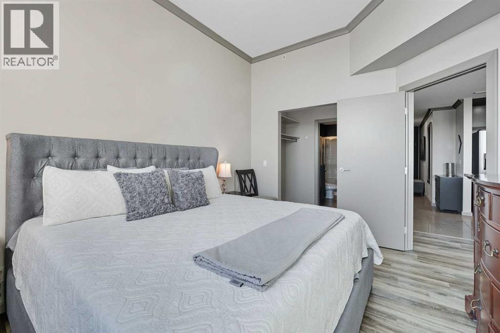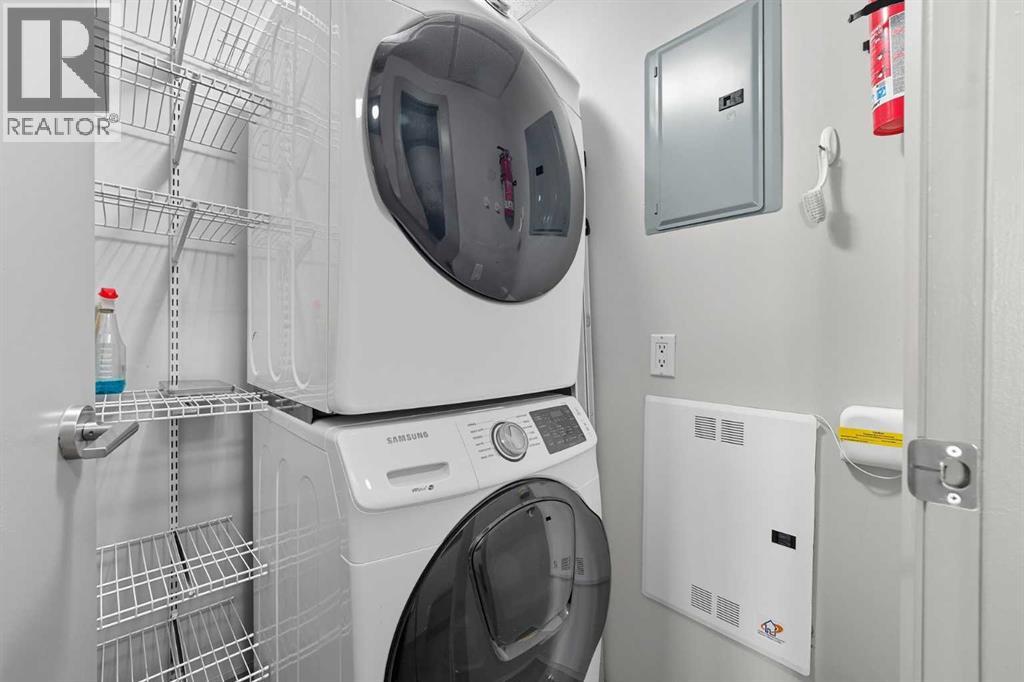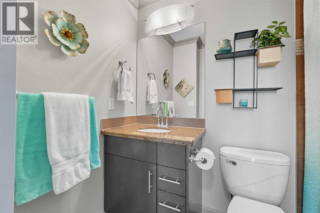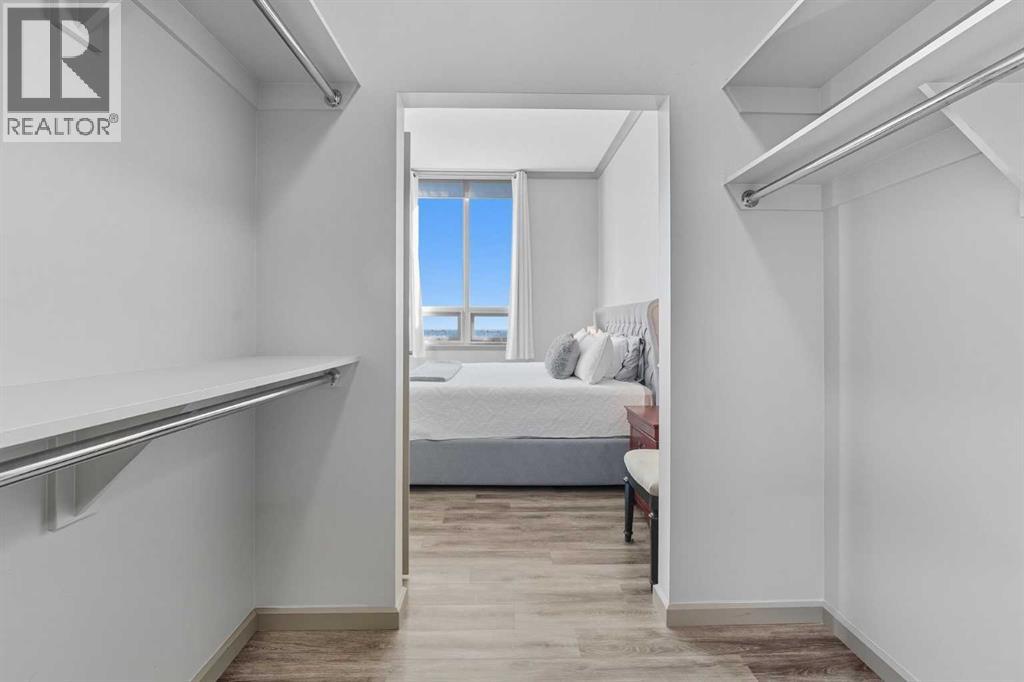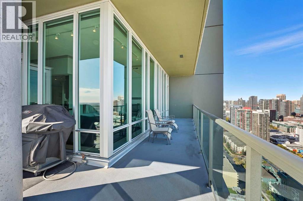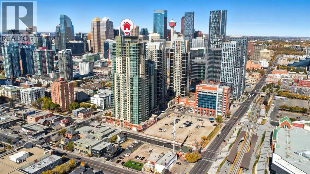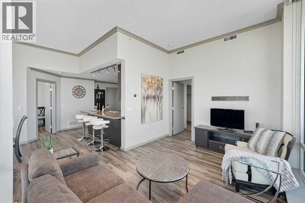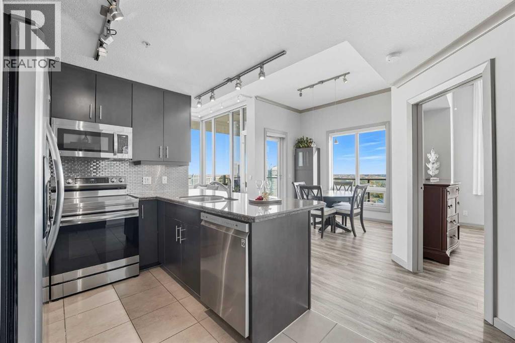 Welcome to Vetro, one of Calgary’s most sought-after high-rise condominiums, ideally located in the heart of the Beltline. Perched on the 32nd floor, this stunning 2-bedroom, 2-bathroom corner unit offers nearly 965 sq. ft. of modern living space with spectacular south-facing city and mountain views through floor-to-ceiling windows.Step inside to discover a bright and open layout featuring contemporary finishes throughout. The kitchen is equipped with sleek cabinetry, stainless steel appliances, granite countertops, and a convenient breakfast bar—perfect for entertaining or casual dining. The adjoining living and dining area flows seamlessly onto a private balcony, ideal for enjoying your morning coffee or the evening skyline.Both bedrooms are generously sized, with the primary suite offering a walk-through closet and private 4-piece ensuite. A second full bathroom, in-suite laundry, and central air conditioning add comfort and convenience to this well-designed space. Vinyl and tile flooring throughout ensure durability and style.This property includes 2 titled underground parking stalls and an assigned storage locker. Move-in ready or an exceptional turn-key investment opportunity. The Vetro building provides an array of amenities, including a fitness centre, sauna, hot tub, social and games rooms, and 24-hour security.Perfectly positioned steps from Stampede Park, the LRT, restaurants, shopping, and downtown, this location blends vibrant urban living with effortless access to everything you need.Enjoy the best of Beltline living—modern comfort, unbeatable views, and premier amenities—all from your sky-high retreat in Vetro. (id:53676)