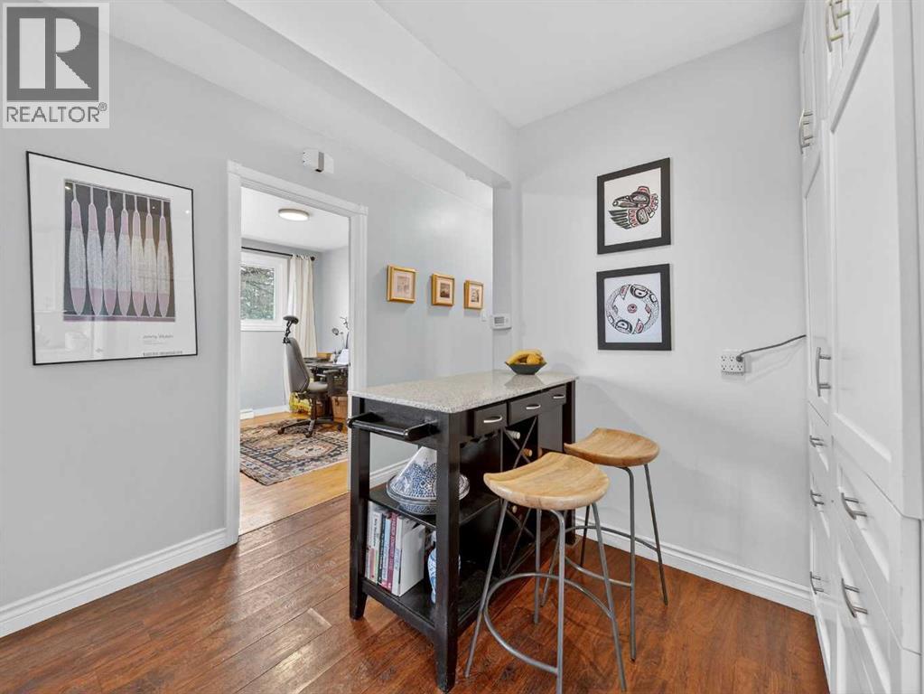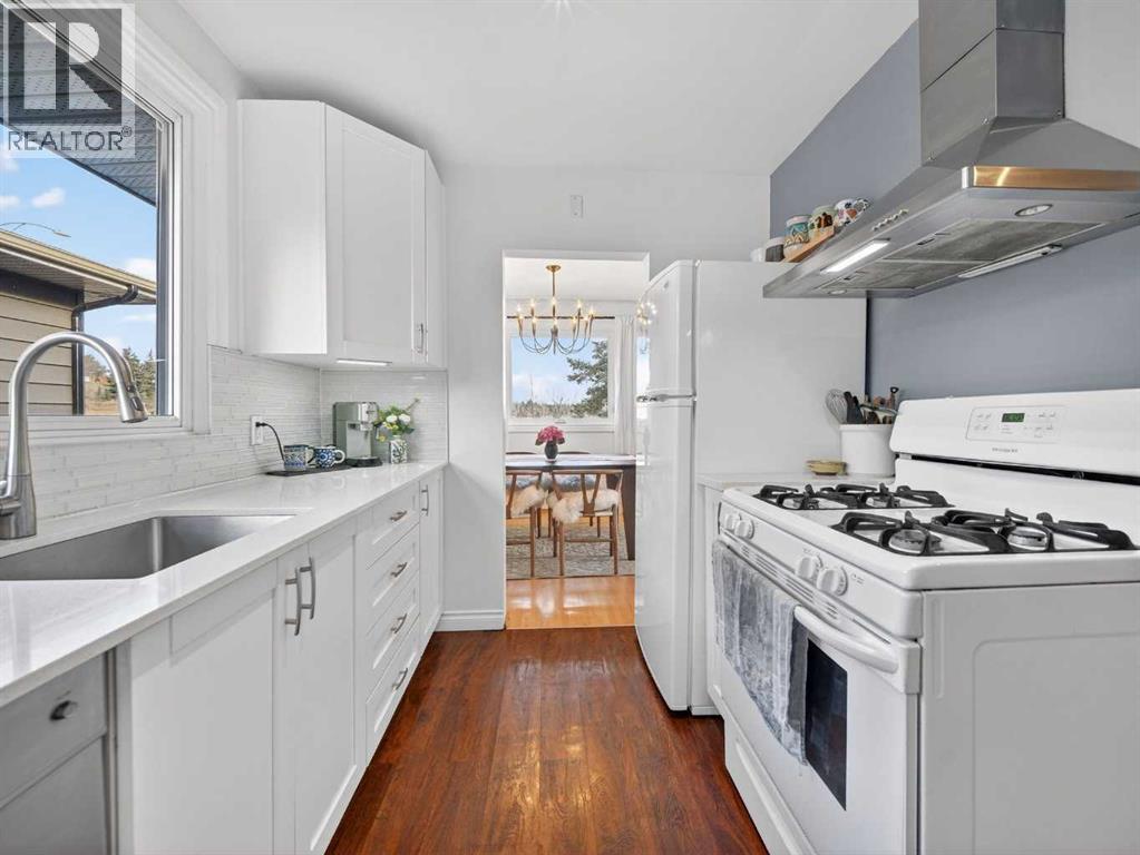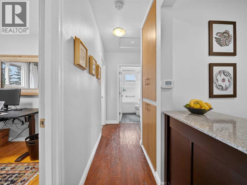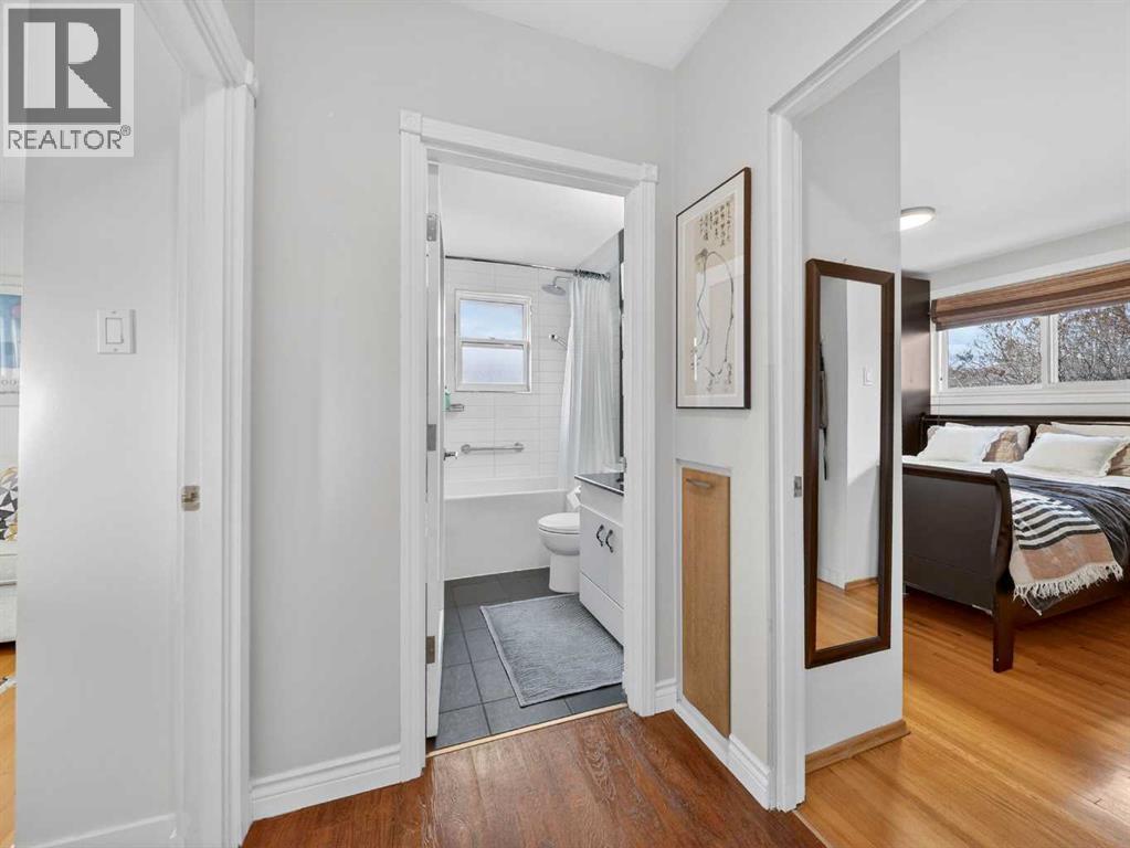 Renovated bungalow perfectly positioned on a sunny corner lot with alley access and picturesque park views. This home blends timeless charm with modern updates, offering versatility for families, investors, or those seeking additional income potential.The main floor features rich hardwood flooring, two spacious bedrooms plus a dedicated office, and a stylish 4-piece bathroom. The renovated kitchen is both functional and elegant, complete with quartz countertops, a gas stove, and ample cabinetry — ideal for everyday living and entertaining. A cozy wood-burning fireplace anchors the living space, adding warmth and character.Step outside to enjoy the brand-new front porch overlooking the park — the perfect spot for morning coffee. The property also includes a detached single-car garage with convenient alley access.Downstairs, the fully LEGAL basement suite offers a separate entrance, providing excellent rental potential or private space for extended family.An exceptional opportunity in a sought-after NW location. (id:53676)