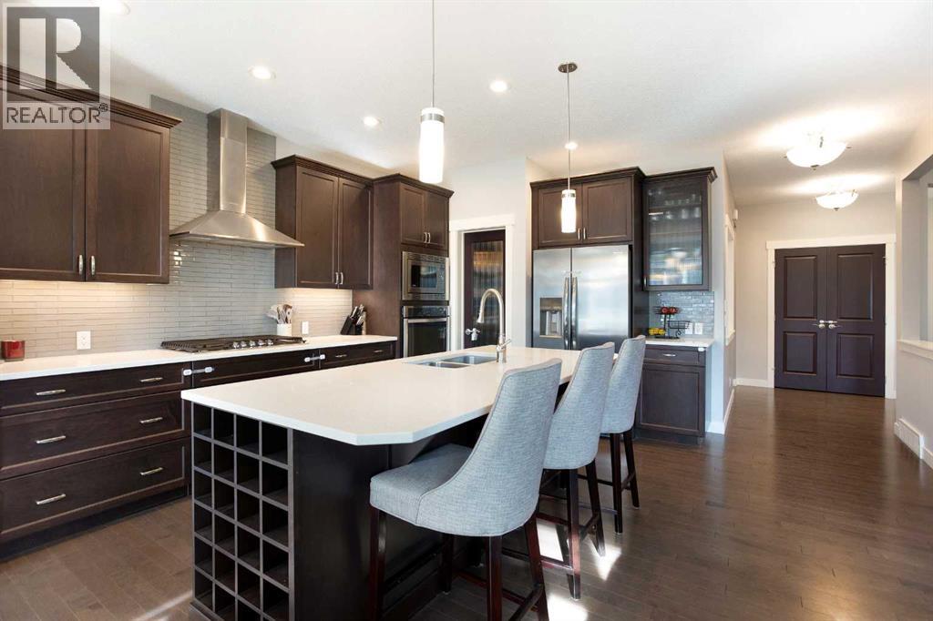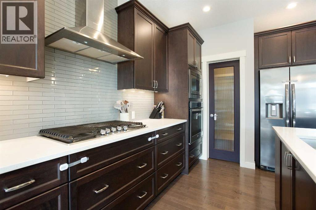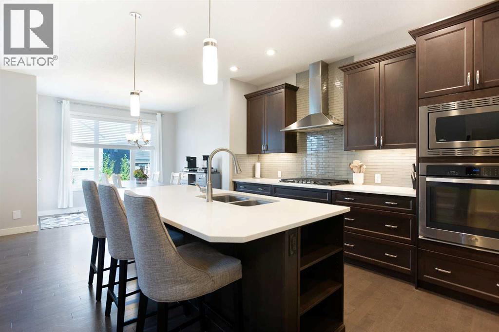 Welcome to this former Sterling Show Home, a beautifully upgraded 4-bedroom, 3.5-bathroom residence in the heart of family-friendly Evanston. With nearly 2,800 sq ft of thoughtfully designed living space, this home offers the perfect blend of style, comfort, and functionality.The executive kitchen is a true centerpiece, boasting stainless steel appliances, built-in oven and microwave, quartz countertops, and a custom walk-in pantry. The open-concept main floor is perfect for entertaining, complete with built-in speakers and central A/C. Fresh paint and quartz surfaces in all bathrooms elevate the home’s modern appeal.Upstairs, retreat to a spacious primary bedroom with a luxurious ensuite and a custom walk-in closet. The southeast-facing front yard is beautifully landscaped, while the private northwest-facing backyard features new siding and windows, with all soft metal work to be completed soon.The fully finished basement adds incredible versatility, featuring a large flex space, a fourth bedroom, and a full bathroom—ideal for guests, a home gym, or media room.Additional highlights include a double front garage, brand-new roof, brand-new composite back deck, new curtains, back alley for added privacy, and proximity to three schools (plus a future grade 5–9 school), off-leash parks, major roadways, every amenity, and more.Move-in ready and rich with upgrades, this exceptional home is your opportunity to own a true gem in Evanston. (id:53676)