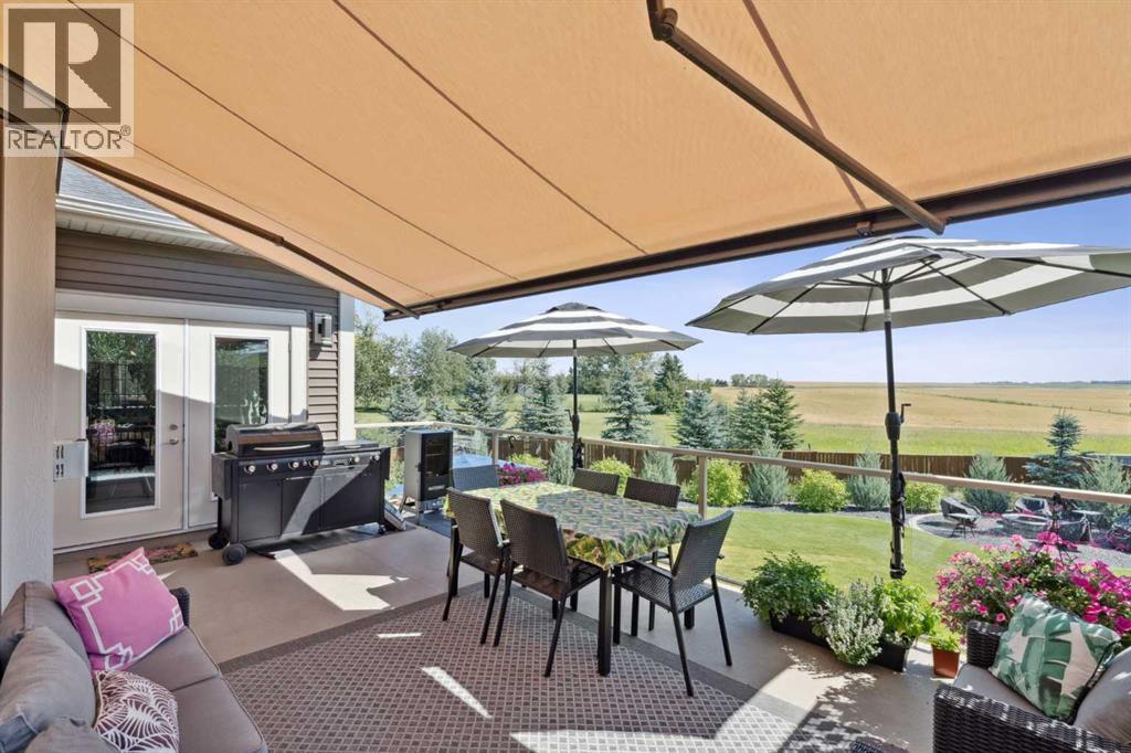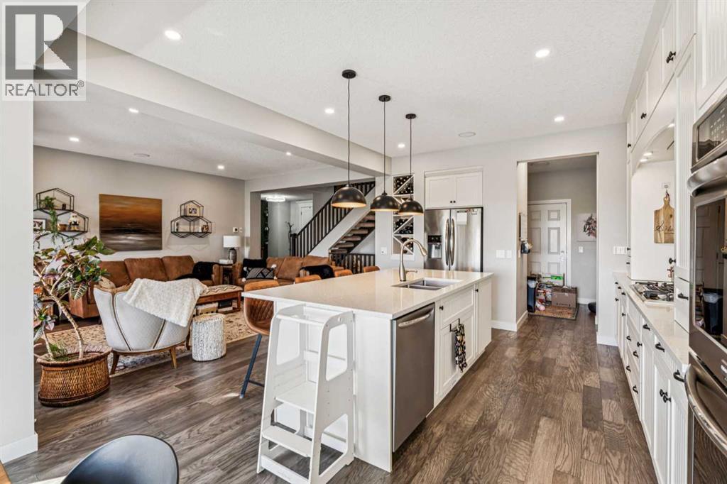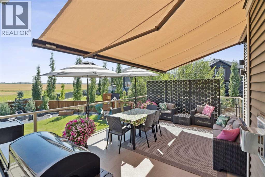 Step into this beautifully designed home through a bright and inviting foyer, featuring modern light fixtures and ample closet space—setting the stage for the sophistication found throughout this SOLAR POWERED home.Just off the main entry, you'll find a well-appointed half bath and a versatile flex room—ideal as a home office, playroom, or guest suite.The open-concept main living area is designed for both entertaining and everyday comfort. The spacious family room flows seamlessly into the dining area and showstopping kitchen, all framed by large windows that capture stunning prairie views.The gourmet kitchen features dual ovens, a 5-burner gas cooktop, sleek countertops, elegant backsplash, and ample prep and storage space. A dedicated nook offers the perfect setup for a coffee bar or extra appliances. A gas line is ready for outdoor grilling on the upper deck, which includes a retractable awning for shade and comfort.Off the kitchen, a large mudroom with custom built-ins leads to a generous 3-car garage—keeping life organized and efficient.Upstairs, you’ll find four bright and spacious bedrooms. One includes a built-in Murphy bed for added flexibility. A vaulted-ceiling bonus room provides the perfect space for movie nights, gaming, or a quiet retreat.The luxurious primary suite overlooks uninterrupted prairie views with no rear neighbors. The spa-inspired ensuite features a soaking tub, dual vanities, a large glass shower, and tile finishes. A massive walk-through closet connects directly to the upstairs laundry room for maximum convenience.The finished lower level has been extensively renovated to add a fully legalized in-law suite that expands your living space with a cozy sitting area and fireplace, a second kitchen—ideal for multi-generational living or guests—a large bedroom, and a full bathroom with custom walk-in closet. A second laundry area with stacked washer and dryer adds extra practicality.In-ceiling speakers throughout the home and o utdoor areas create the perfect ambiance for entertaining. Step out onto the beautifully landscaped yard, complete with irrigation system and four raised garden beds. Five unique outdoor seating areas, including a fire pit space, make this backyard ideal for gatherings, relaxing, or play.A charming playhouse and hot tub (both negotiable) offer even more ways to enjoy this incredible outdoor retreat.This exceptional home combines thoughtful design, high-end finishes, and unmatched comfort—inside and out. Come experience the perfect blend of elegance, space, and functionality. (id:53676)