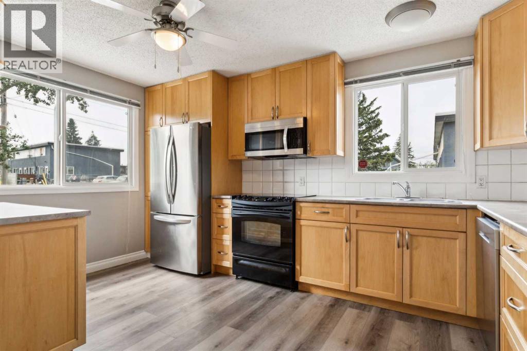 Welcome to this beautifully updated corner unit townhome in the heart of Vista Heights! Freshly painted and featuring brand-new flooring throughout, this bright and inviting home offers over 1,800 sq ft of total living space across three levels.The main floor showcases a spacious living area with large windows that flood the space with natural light, and a private balcony perfect for morning coffee or evening relaxation. The kitchen and dining area are ideally laid out for both everyday living and entertaining. Upstairs, you’ll find three generously sized bedrooms and a full bathroom, ideal for families or roommates. The fully developed basement adds even more functional space with a large rec room, second full bathroom, and laundry/storage area. Enjoy the peaceful views of the green space right across the street, and take advantage of the assigned outdoor parking stall just steps from your front door. Conveniently located near schools, parks, transit, and major routes, this home offers the perfect blend of comfort and accessibility. Don’t miss your chance to own this move-in-ready gem in a well-managed complex—book your showing today! (id:53676)