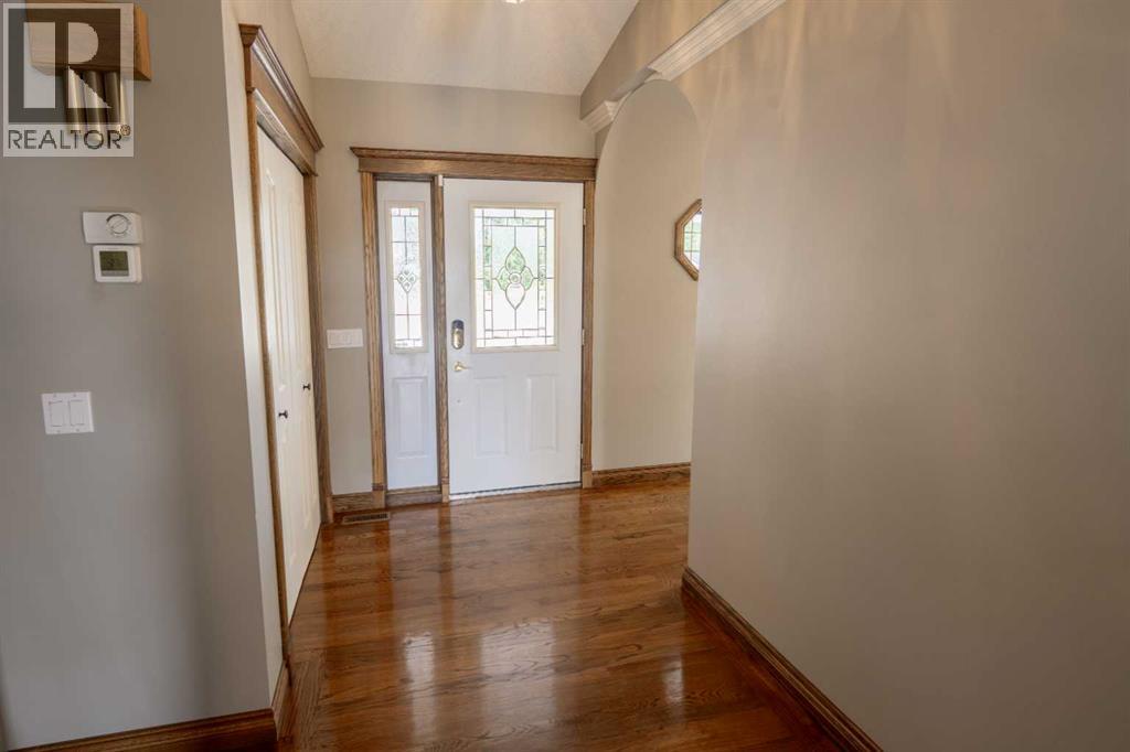Nestled just north of Okotoks on just under four picturesque, park-like acres, this hillside bungalow offers an exceptional blend of privacy, tranquility, and convenience—only minutes from amenities, schools, and services.A gently curved driveway leads to the inviting wraparound front porch and ample guest parking. Inside, the spacious foyer opens to hardwood floors, soaring vaulted ceilings, and a beautifully designed living and dining area highlighted by a custom entertainment centre and a gas fireplace with mantle. The kitchen features a cozy breakfast nook, oversized pantry, and direct access to the wraparound deck—perfect for outdoor dining and barbecuing. An enclosed sunroom provides additional year-round enjoyment or the option of a greenhouse. The main level is complete with two generously sized bedrooms, including a comfortable primary retreat.The fully developed walkout lower level is designed for family living and entertaining. A curved staircase leads to the expansive billiard and family rooms, complemented by a guest bedroom with ensuite access to a five-piece bath, a hot tub room awaiting your finishing touches, plus an office, bar area, and mechanical room with convenient service access to the garage.Car enthusiasts and hobbyists will appreciate the heated, insulated four-car attached garage, offering abundant space and functionality. Outdoors, mature perimeter trees provide rare privacy, while the gently sloping landscape leads to private retreats, garden areas, and a water dugout that doubles as a charming skating rink in winter.This is a truly special property where peace, space, and nature come together—available for immediate possession. (id:53676)