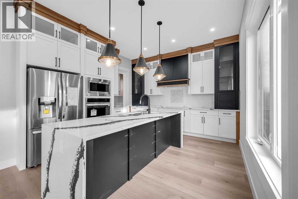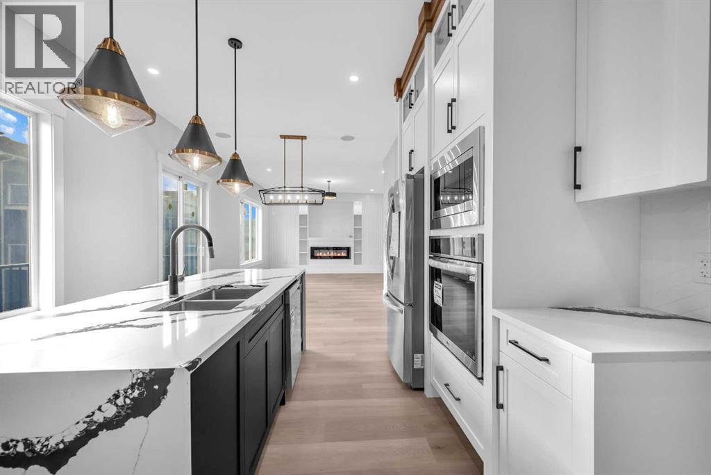 LUXURY LIVING AT ITS FINEST ! Welcome to 327 Kinniburgh Place, in the highly sought-after Lake community of Chestermere. This Executive quality home boasts 3 fully finished levels complete with upgrades throughout.! Large open concept. OPEN TO BELOW living room on the main floor. 10 ‘ ceiling all over Main floor and 8’ doors. Main floor boasts a FULL BATH and BEDROOM for ELDERLY PARENTS. It also includes an impressive Chef Kitchen, featuring quartz's countertops, impressive upgraded light fixtures, a large double fridge, gas range, double wall ovens, full-height modern white cabinets, and an impressive spice kitchen with pantry. Open to the kitchen is a large dining area and modern living area complete with a feature wall of built-ins, surrounding a beautiful gas fireplace. Completing this main floor is a gorgeous SECOND LIVING ROOM space off the main entrance, a large mudroom off the garage, and a gorgeous 3 piece bathroom! Enjoy the abundance of natural light with large windows throughout the home . Head upstairs WITH BEAUTIFUL GLASS RAILING, where you will find a large sun-drenched bonus room. Your large master bedroom features a spa-like en suite and a large walk-in closet! Apart from the master, you will find a second master with 4 pc ensuite and 2 walk-in closets, 2 other bedrooms, 1 full bathroom, and a well-placed laundry room. Escape to the fully finished WALK-OUT basement, This gorgeous space comes complete with a BAR FEATURE , HUGE LIVING ,DINNING AREA another beautiful 4 piece bathroom, and 2 additional bedrooms! Extend your summers in the fabulous backyard . Total 7 bedrooms and 5 full bathrooms. Chestermere is a vibrant family community with a multitude of parks, pathways, playgrounds, and of course beautiful Chestermere Lake, providing access to beaches, water sports, and boating in the summer months or skating in the winter months! Don't miss out on this amazing opportunity. THERE WAS NO DETAIL MISSED WHEN THIS HOUSE WAS BUILT ,COME CHECK OUT THIS B EAUTIFUL PROPERTY TO CALL YOUR NEXT HOME. (id:53676)