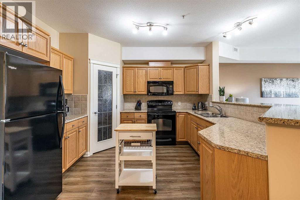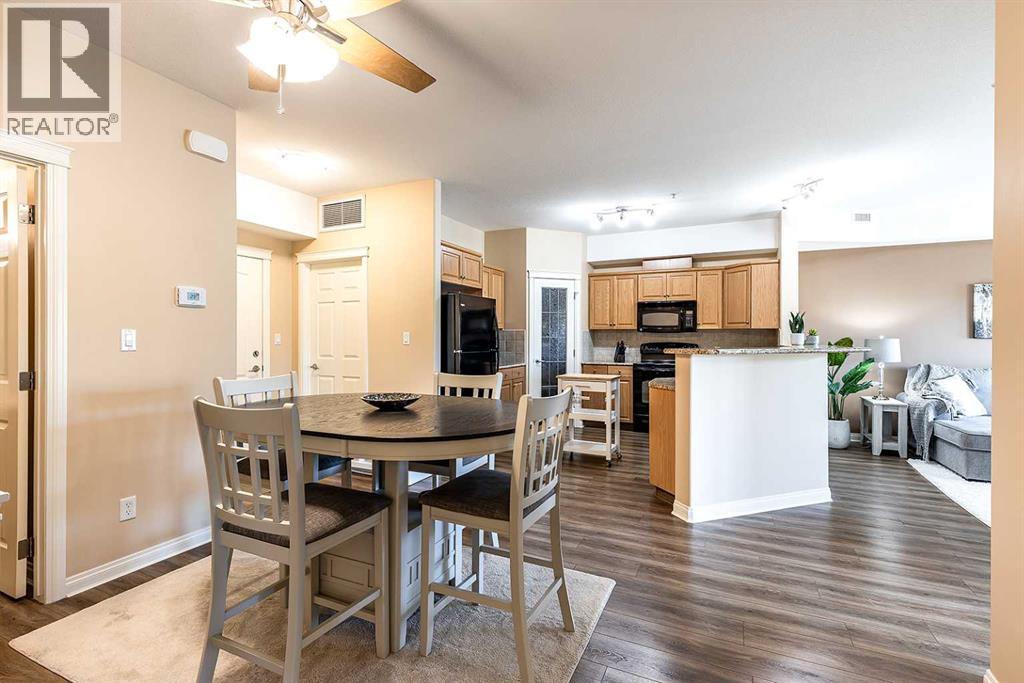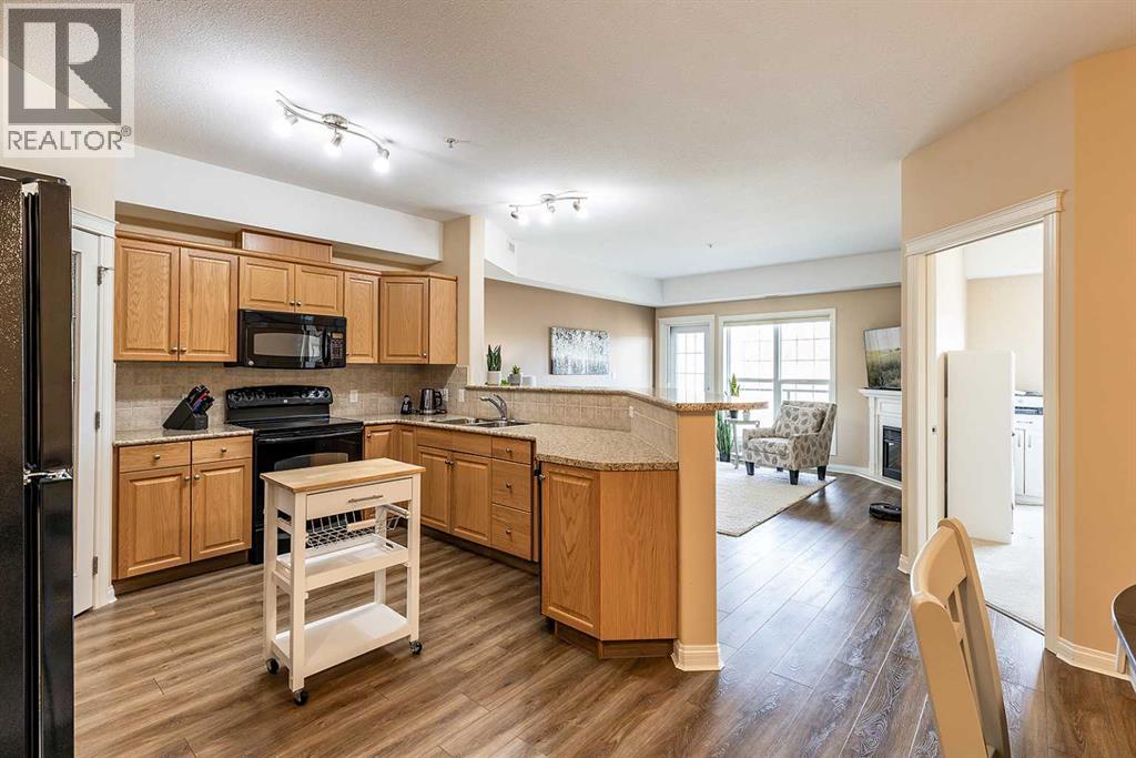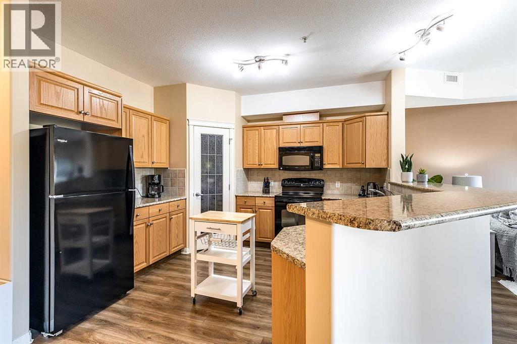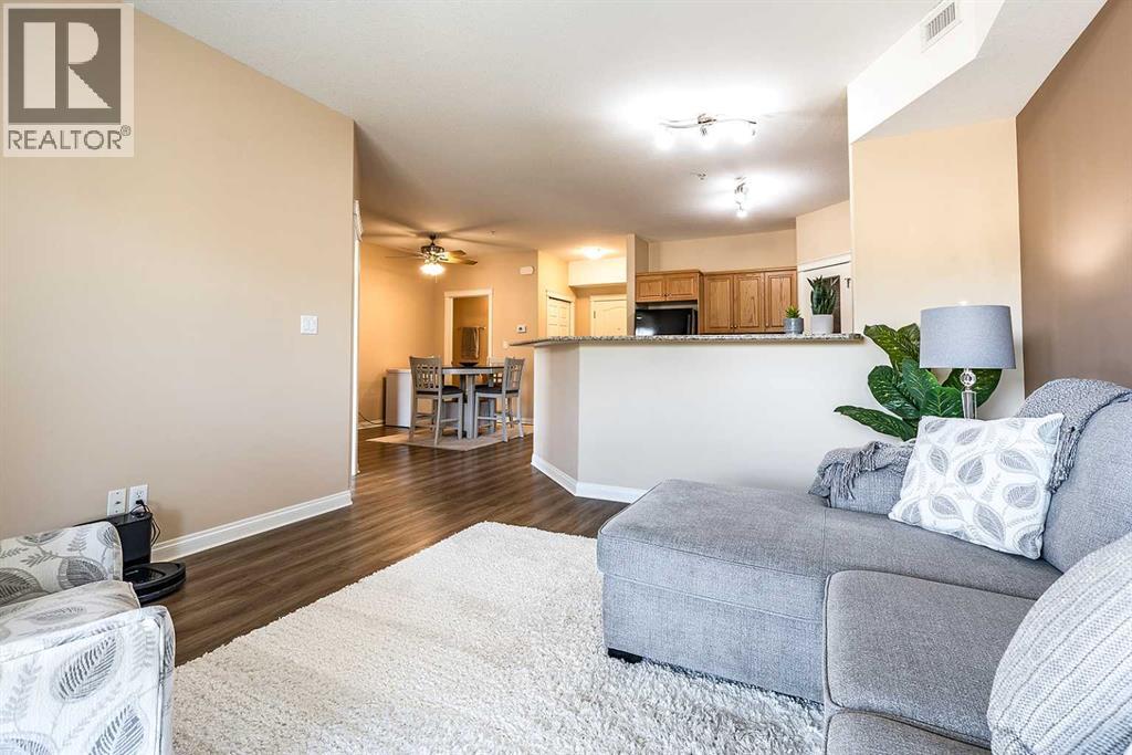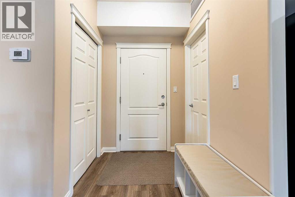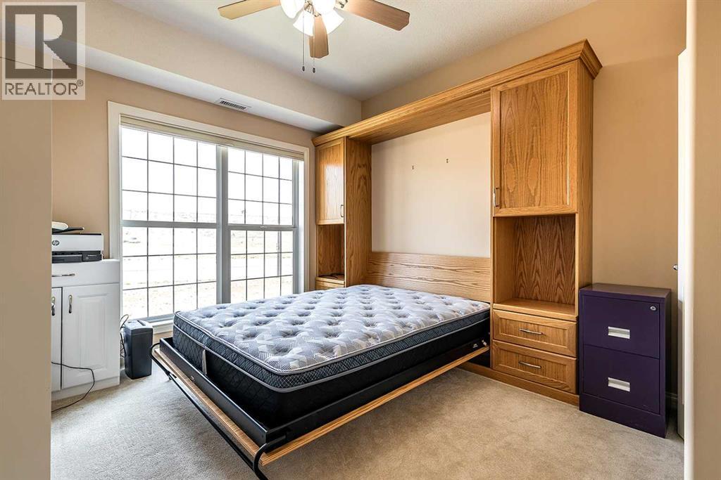Welcome to a refined condo living in Riverside. This beautifully maintained 2-bedroom, 2-bathroom home offers an elegant open-concept layout, ideal for both everyday comfort and effortless entertaining. The kitchen features rich oak cabinetry, generous counter space, breakfast bar, and a spacious pantry–providing both style and functionality. The adjoining living room is bright and inviting, centered around anelectric fireplace that adds warmth and charm. From here, step out onto the balcony and enjoy serene prairie views. The primary suite is a bright retreat, complete with a walk-in closet and a well-appointed 3-piece ensuite. A second bedroom and full bathroom provide flexibility for guests or a home office, Includes the Murphy bed and custom Cabinetry! Additional highlights include in-suite laundry with a stacking washer and dryer, an assigned underground parking stall in the heated garage, and a convenient storage room located directly beside your parking space. This quiet, secure building is situated in one of Medicine Hat’s most desirable communities. Riverside is known for its mature trees, scenic walking trails, and close proximity to the South Saskatchewan River. You’ll find yourself just minutes from parks, shopping, dining, and the city’s vibrant Downtown core. Don’t miss this opportunity–contact a real estate agent today to arrange your private showing! (id:53676)