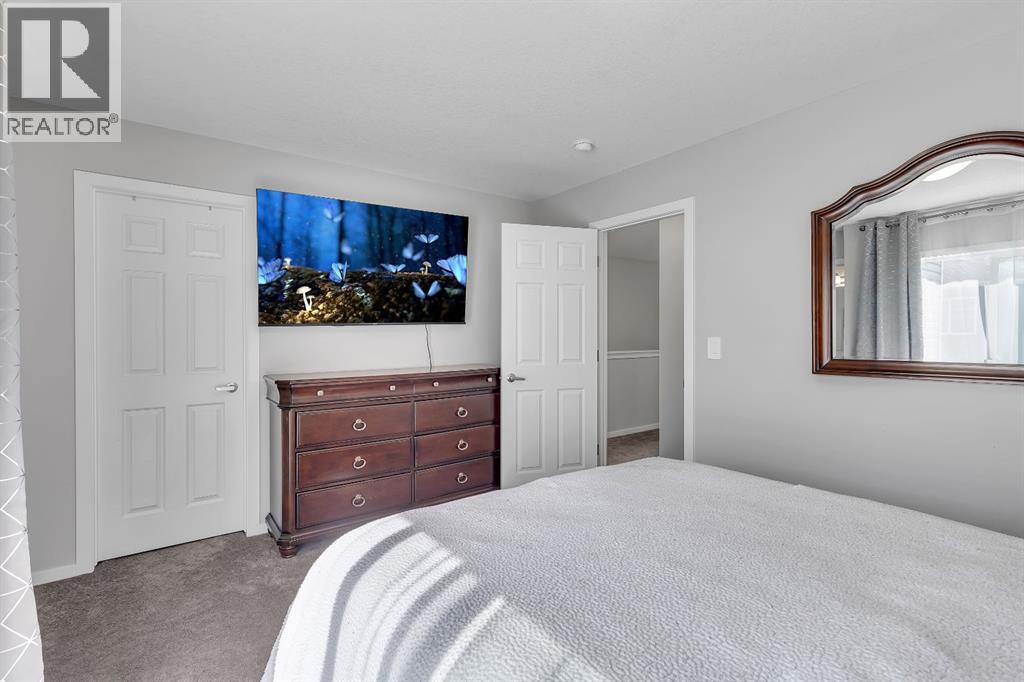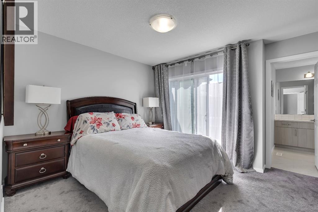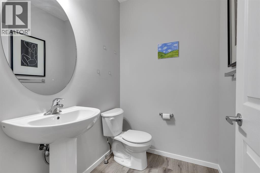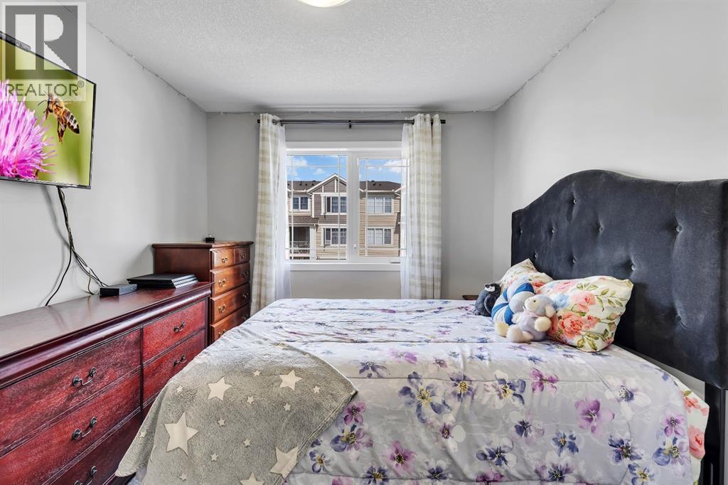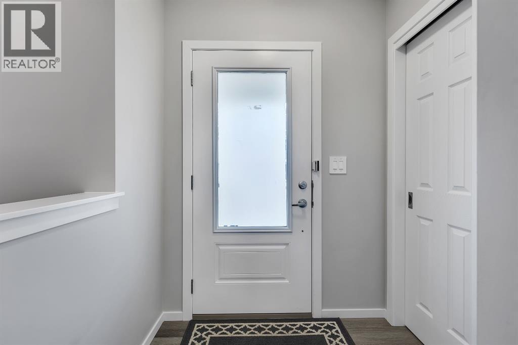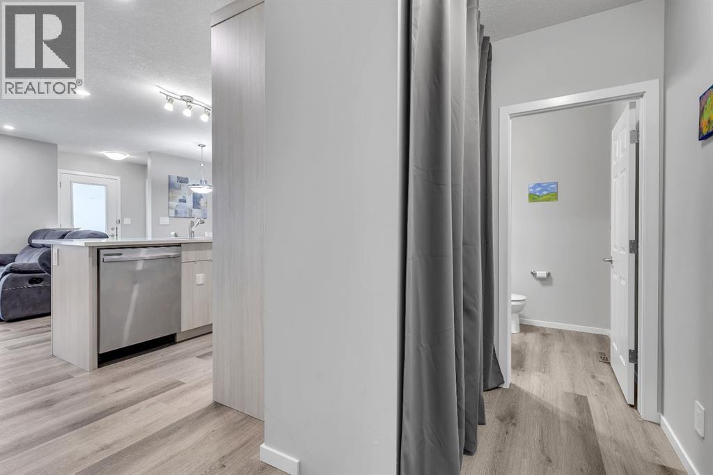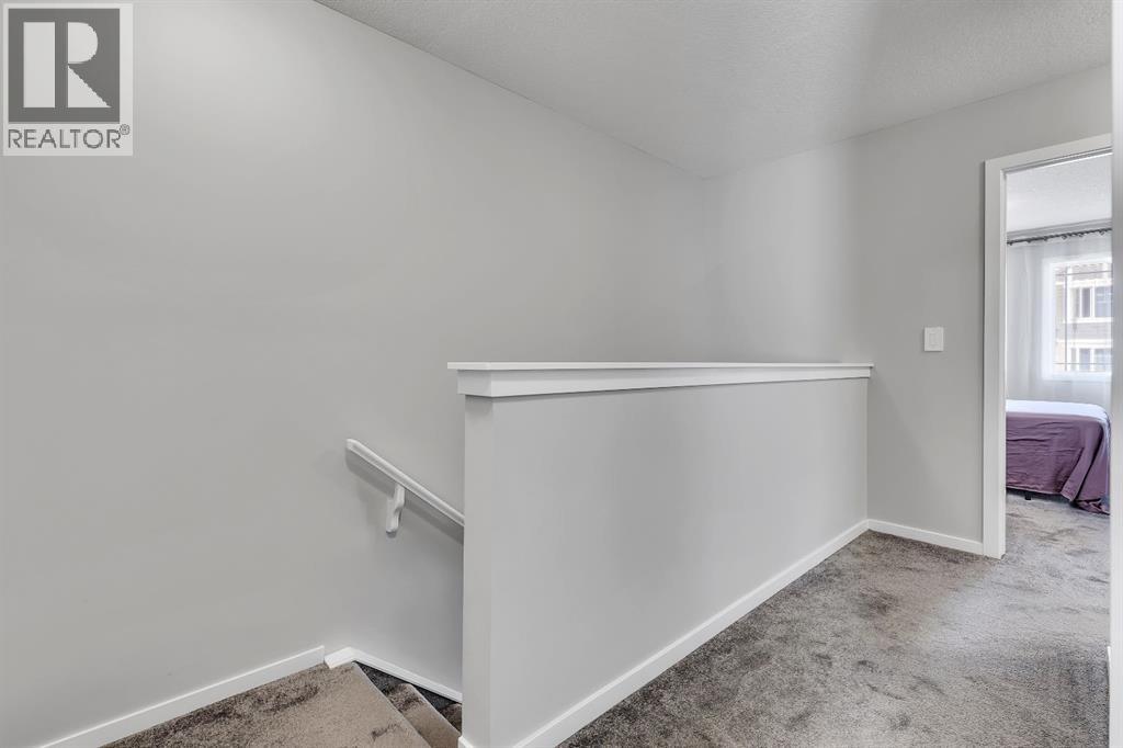 3 BEDS | 2.5 BATHS | DOUBLE CAR GARAGE | NO CONDO FEES – This 2022-built townhome in Southwinds, Airdrie SW offers the ideal combination of space, functionality, and location—with no condo fees and thoughtful design throughout. The home is east-facing, bringing in beautiful morning light through the front windows, while the west-facing private balcony off the primary bedroom lets you enjoy evening sunsets. The main floor features a bright living room at the front, a dining space, and a modern kitchen with quartz countertops, stainless steel appliances, a central island, and plenty of cabinet space. You’ll also find a 2-piece bathroom, a mudroom with built-in shelving, and a front entry closet for extra storage. Upstairs offers three generously sized bedrooms, including a primary suite with a huge walk-in closet, 4-piece ensuite, and direct access to the balcony. Two additional bedrooms, another full 4-piece bathroom, and convenient upper-level laundry complete the layout. The unfinished basement includes plumbing rough-ins for future development. A double attached garage with paved rear lane access, a welcoming front porch, and a family-friendly location close to Windsong Heights School, Chinook Winds Regional Park, playgrounds, and shopping make this a fantastic opportunity in one of Airdrie’s desirable newer communities. (id:53676)