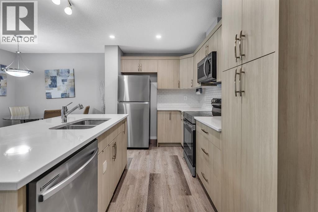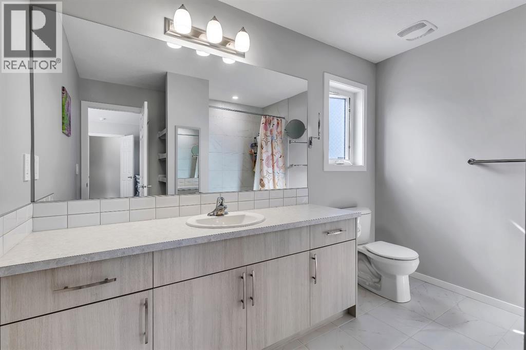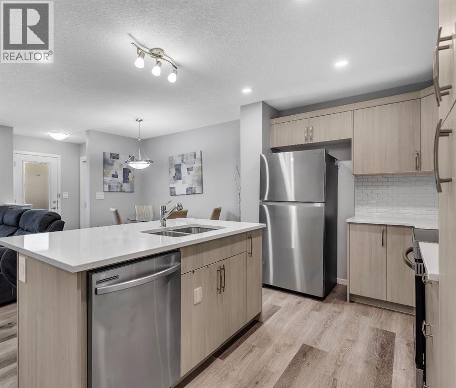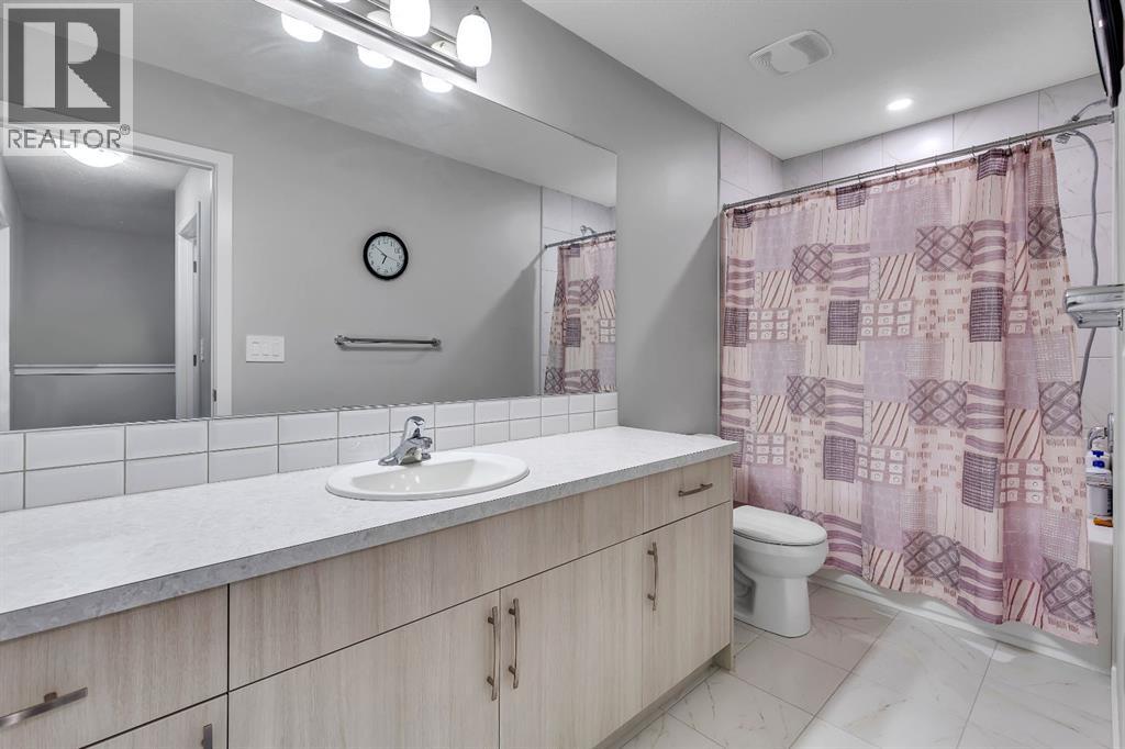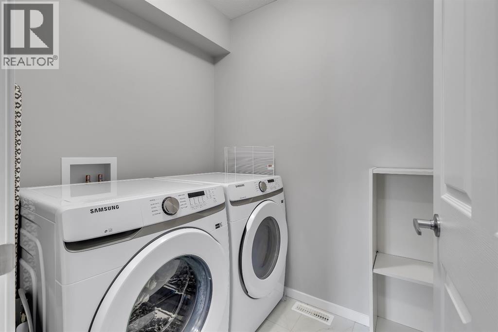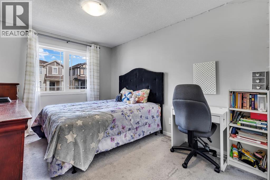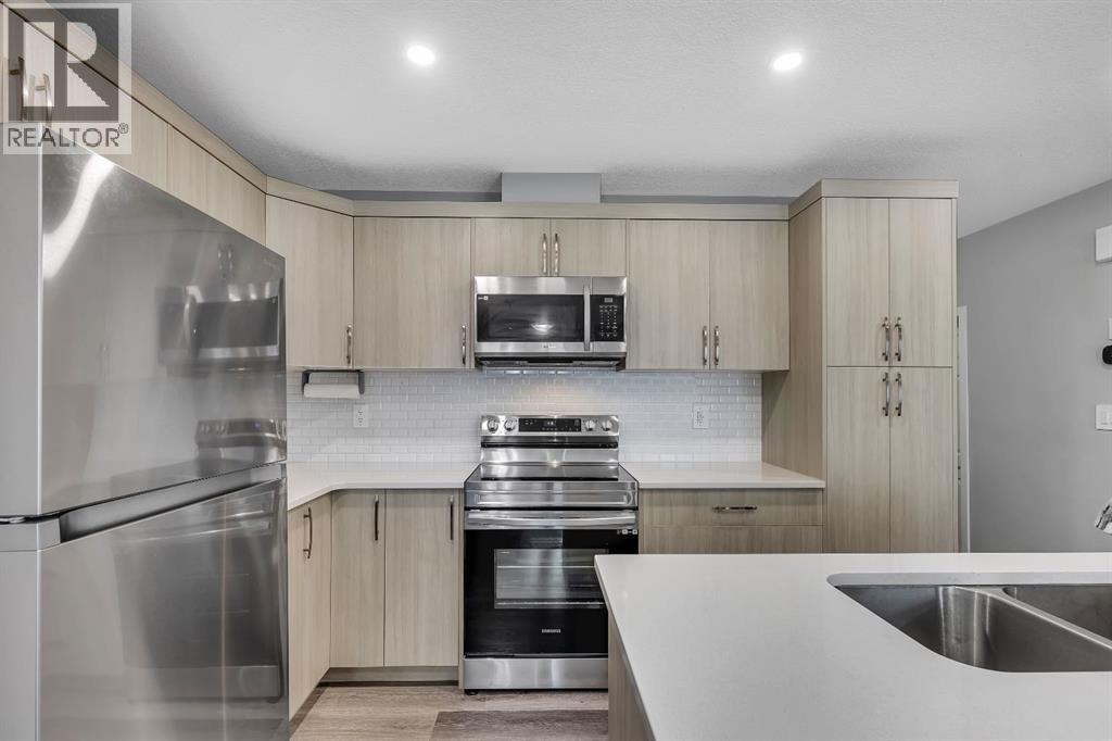 3 BEDS | 2.5 BATHS | DOUBLE CAR GARAGE | NO CONDO FEES – This 2022-built townhome in Southwinds, Airdrie SW offers the ideal combination of space, functionality, and location—with no condo fees and thoughtful design throughout. The home is east-facing, bringing in beautiful morning light through the front windows, while the west-facing private balcony off the primary bedroom lets you enjoy evening sunsets. The main floor features a bright living room at the front, a dining space, and a modern kitchen with quartz countertops, stainless steel appliances, a central island, and plenty of cabinet space. You’ll also find a 2-piece bathroom, a mudroom with built-in shelving, and a front entry closet for extra storage. Upstairs offers three generously sized bedrooms, including a primary suite with a huge walk-in closet, 4-piece ensuite, and direct access to the balcony. Two additional bedrooms, another full 4-piece bathroom, and convenient upper-level laundry complete the layout. The unfinished basement includes plumbing rough-ins for future development. A double attached garage with paved rear lane access, a welcoming front porch, and a family-friendly location close to Windsong Heights School, Chinook Winds Regional Park, playgrounds, and shopping make this a fantastic opportunity in one of Airdrie’s desirable newer communities. (id:53676)