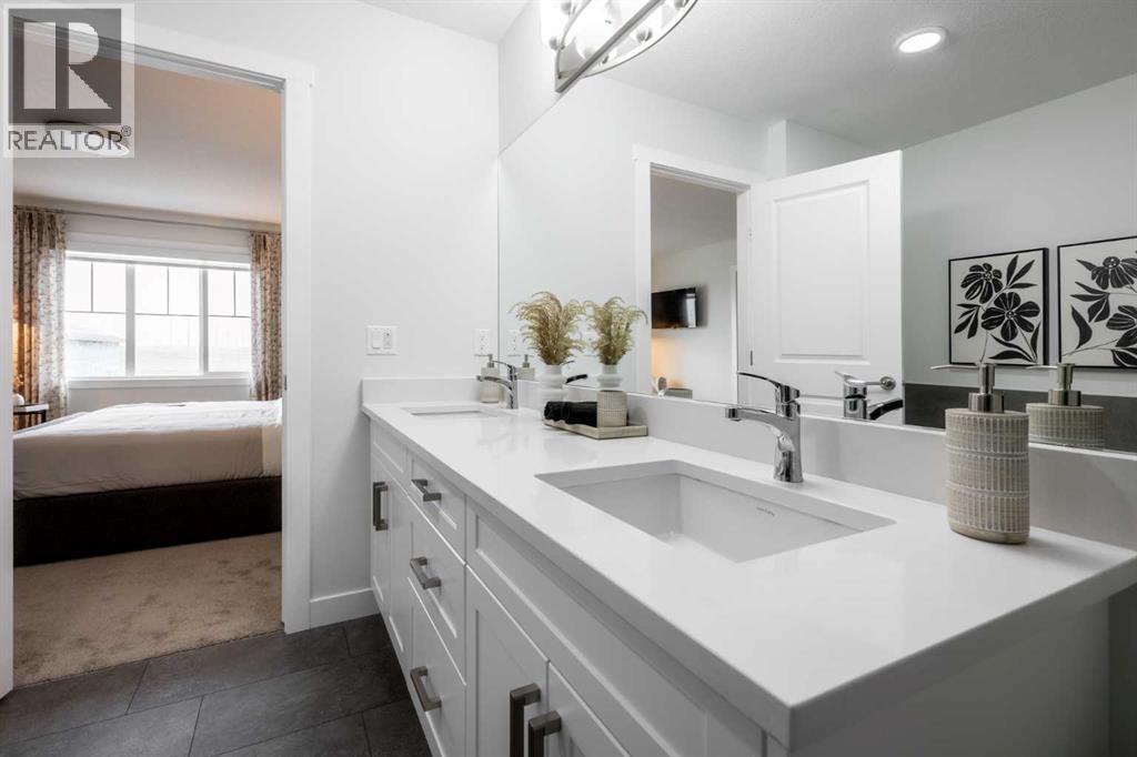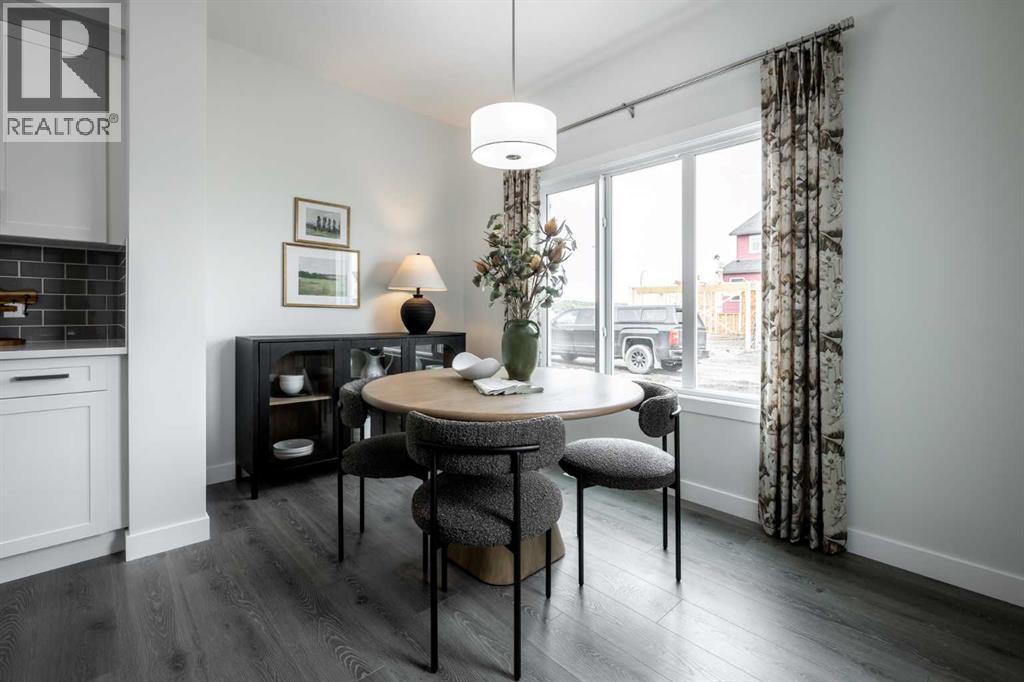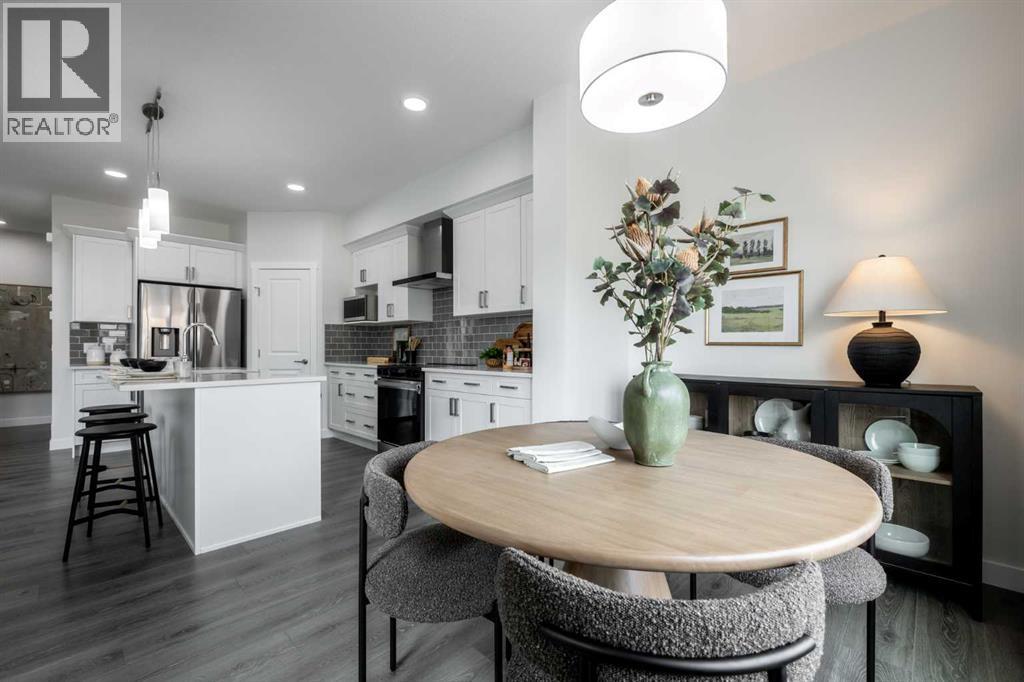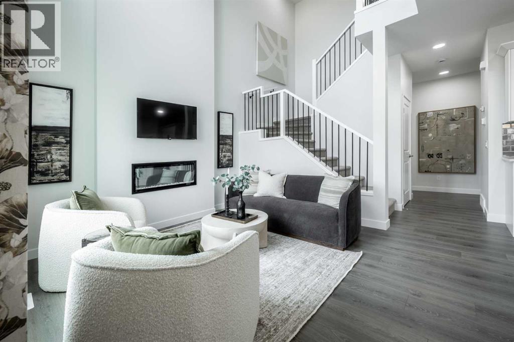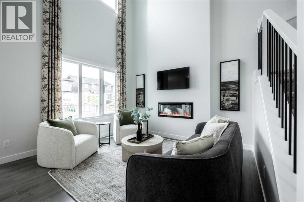 Welcome home to Heartland! A vibrant community with mountain views, scenic pathways, parks, and thoughtfully designed natural spaces. This is where lifestyle meets livability. The Otis 24 offers over 2,000 sq. ft. of well-planned living space, designed to support both everyday life and future growth. This impressive open-to-below layout is enhanced by elegant interior railings, creating a sense of openness and architectural interest from the moment you step inside.Designed with families in mind, the home features 3 bedrooms and 2.5 bathrooms, including a spacious primary retreat with a large walk-in closet and a spa-inspired 5-piece ensuite complete with double vanity, soaker tub, and separate shower. The main floor is bright and welcoming with 9’ ceilings, quartz countertops throughout, a dedicated den/home office, and a stylish electric fireplace that anchors the living space.Additional highlights include a separate side entrance and a rear deck with aluminum railings, offering flexibility for future development and an inviting outdoor space perfect for relaxing or entertaining. A thoughtfully designed home in a community that truly has it all. **PLEASE NOTE** PICTURES ARE OF SHOW HOME; ACTUAL HOME, PLANS, FIXTURES, AND FINISHES MAY VARY AND ARE SUBJECT TO AVAILABILITY/CHANGES WITHOUT NOTICE** (id:53676)