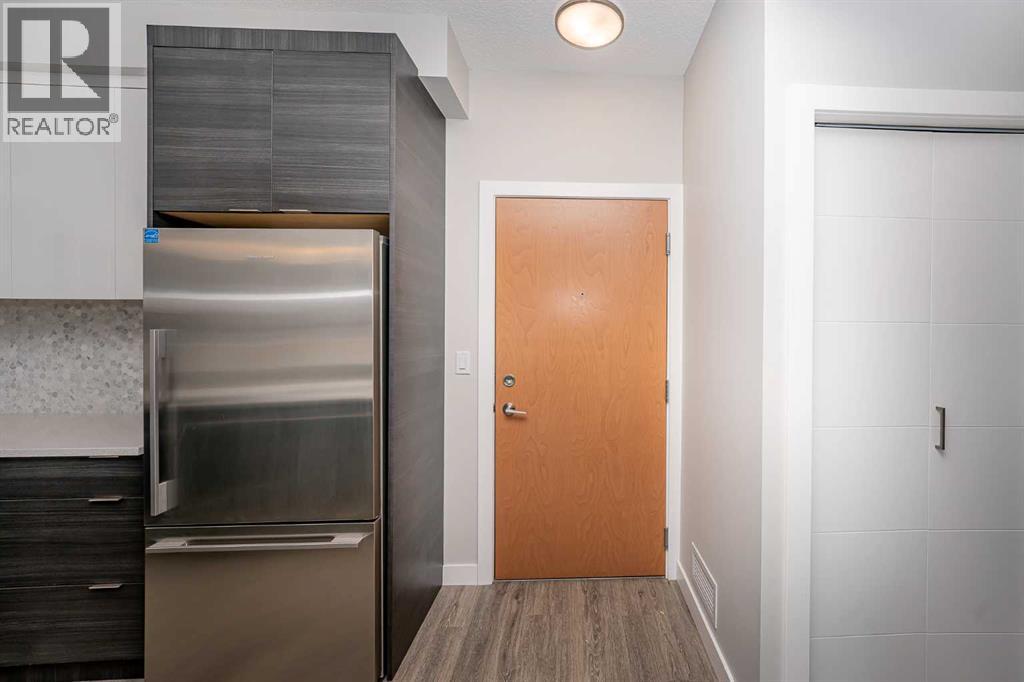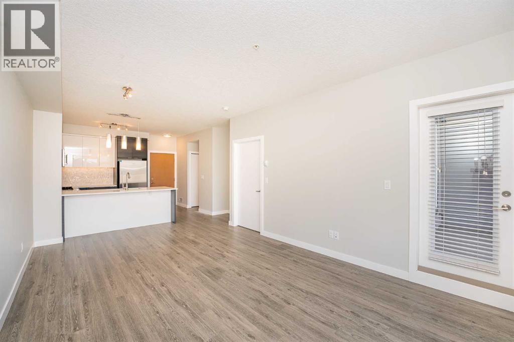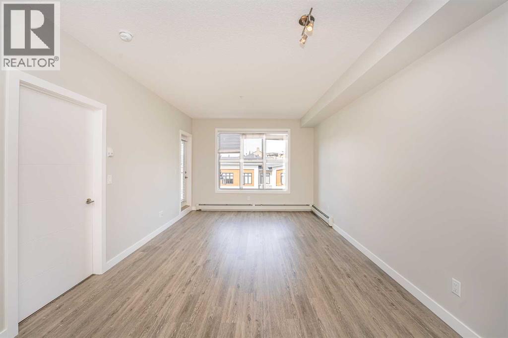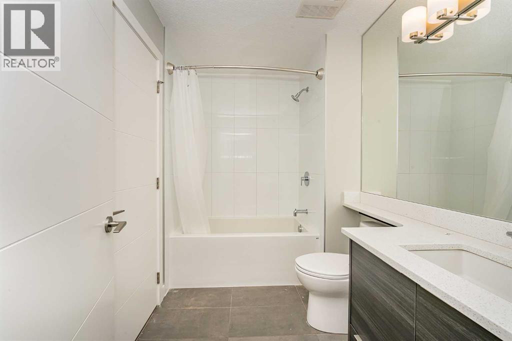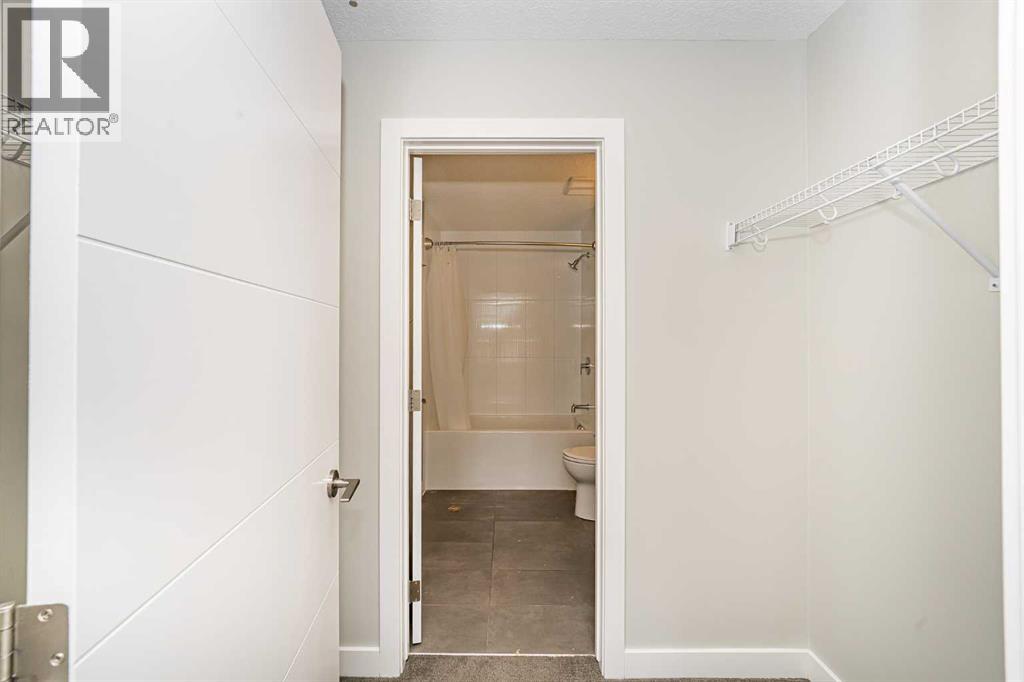Located in the desired community of Currie Barracks, directly across from Mount Royal University, this third-floor apartment offers a blend of comfort and convenience. The brick and stucco exteriors provide appealing curb appeal, complemented by a private balcony and a landscaped courtyard. Inside, you'll find high 9’ ceilings that make the living space feel open and airy. The master bedroom includes a walk-in closet and a bathroom with porcelain flooring tiles and ceramic wall tiles around the tub. The in-suite washer and dryer add to the convenience. The apartment features soundproof wood plank flooring in the living areas, a functional European-inspired kitchen with a gas stove, marble backsplash, quartz countertops, double bowl stainless steel sinks, and LED under-counter lighting. Additional amenities include 26 underground visitor parking stalls, a spacious bike storage room, and a cage-style storage locker for each parking stall in the heated underground parking area. The location is a mere 7-minute drive to downtown and the West Hills Shopping Center. This apartment offers a comfortable and convenient living experience. Schedule a viewing today to see it for yourself (id:53676)