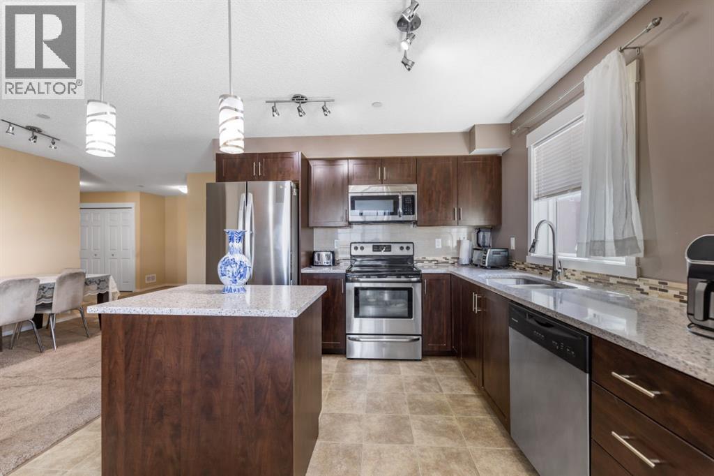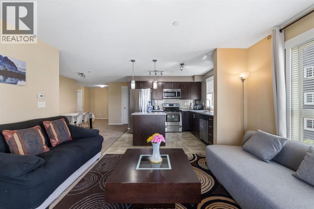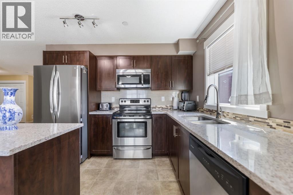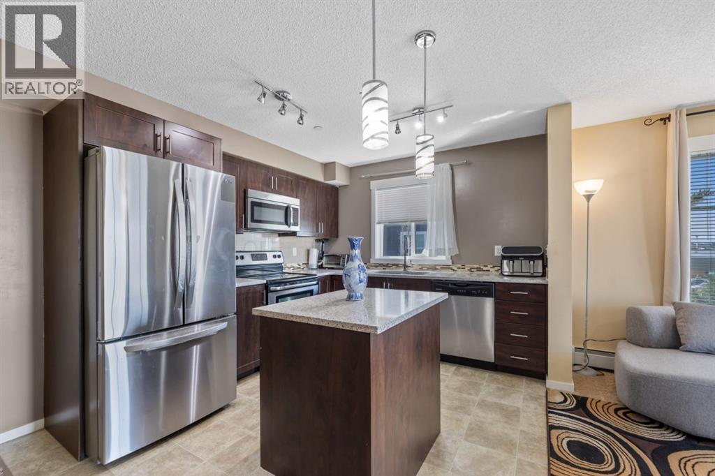 Maintenance-Free Living in Copperfield – 2 Bed, 2 Bath Condo with a Balcony Welcome to this beautifully maintained third floor unit located in the highly sought after and amenity rich community of Copperfield. This spacious 2-bedroom, 2-bathroom condo offers the perfect blend of comfort, style, and convenience, ideal for professionals, small families, or anyone looking to enjoy a low-maintenance lifestyle. Designed with an open concept layout and equipped with central air conditioning, this home features a modern kitchen with stainless steel appliances, ample cabinetry, elegant countertops, a central island with breakfast bar seating, and contemporary lighting. The bright and inviting living room opens to a balcony, offering natural light throughout the day and a gas BBQ hookup perfect for entertaining or relaxing outdoors. The well designed floor plan ensures privacy, with the two bedrooms located on opposite sides of the unit. The primary bedroom includes a spacious walk through closet leading to a 4-piece ensuite bathroom complete with a soaker tub. A second generously sized bedroom, an additional 4-piece bathroom, and in-suite laundry round out the unit’s practical features. Additional highlights include a titled parking stall and condo fees that cover nearly all utilities, making this a stress free and cost effective living option. The building itself is exceptionally well maintained and professionally cleaned three times a week, contributing to a consistently clean, quiet, and welcoming atmosphere for residents. Copperfield is a vibrant and family friendly community known for its extensive green spaces, scenic walking paths, ponds, and playgrounds. Residents enjoy access to a variety of recreational amenities including a community center, skating rinks, tennis courts, and an active homeowners association that hosts events year round. With close proximity to schools, shopping, dining, and major roadways, Copperfield offers the perfect balance of suburban tranqu ility and urban convenience. Don’t miss this opportunity to be part of a thriving community while enjoying modern, maintenance free living! (id:53676)