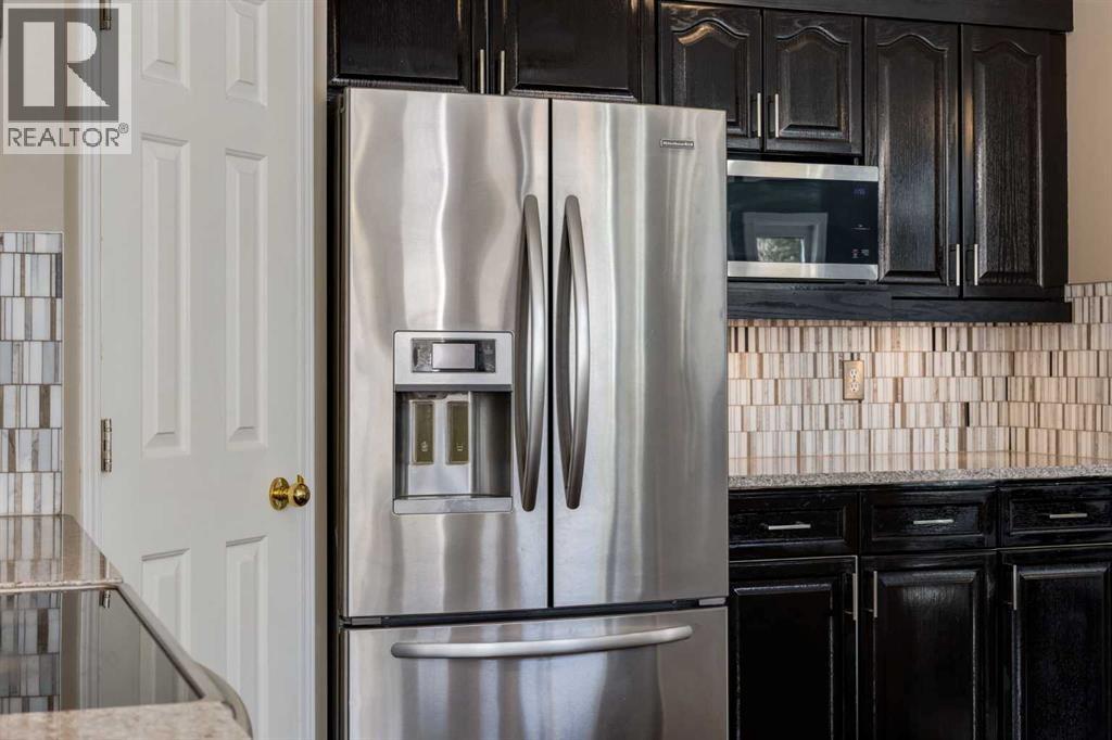 Open House 1-3PM, Saturday, April 18, 2026. Prime Location in Signal Hill – Backing onto Green Space! Tucked away at the end of a quiet cul-de-sac, this well-maintained and upgraded 2-storey home offers over 2,900 sq. ft. of developed living space, exceptional privacy, and direct backing onto green space. Ideally located close to Westhills Towne Centre, schools, the recreation centre, downtown, and with easy access to major routes, this home combines convenience with a peaceful setting. The functional main floor, spanning over 1,100 sq. ft., features a fully upgraded kitchen with quartz countertops and stainless steel appliances, along with a formal dining room, den, breakfast nook, and a bright living room with vaulted ceilings and a cozy gas fireplace. An external solar screen blind enhances comfort and efficiency by covering the large windows. A laundry room and powder room complete this level. Step outside to a newly built deck overlooking a large, well-maintained pie-shaped lot—perfect for outdoor activities and entertaining. The charming front porch offers the ideal spot to relax and enjoy evening sunsets. Upstairs, the spacious primary suite includes a large ensuite with a corner soaker jetted tub, separate shower, and double vanity. Two additional generously sized bedrooms and a full bathroom complete the upper level. The fully finished basement provides even more living space with a massive recreation area featuring built-in desk and shelving, a fourth bedroom with an egress window, and a full bathroom. Recent updates such as fresh paint throughout, triple-pane windows, quartz countertops, and stainless steel appliances further showcase the pride of ownership in this exceptional home. Please click the Virtual Tours for more details! (id:53676)